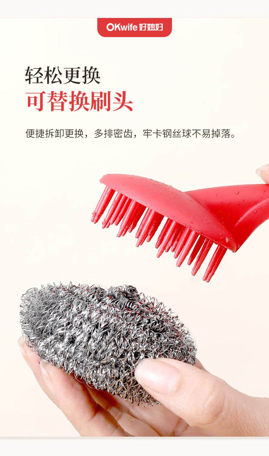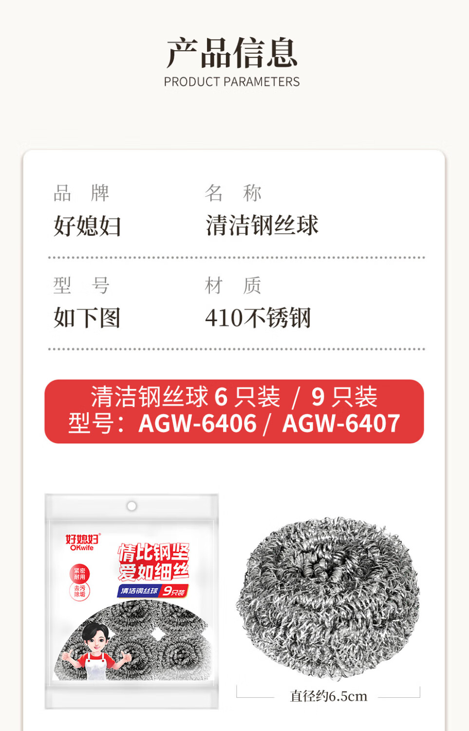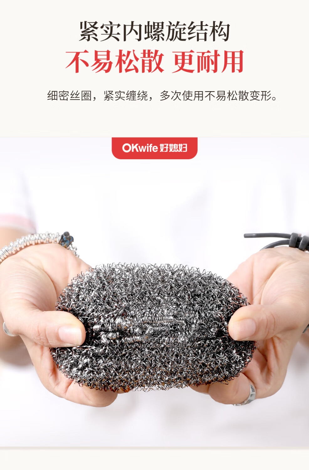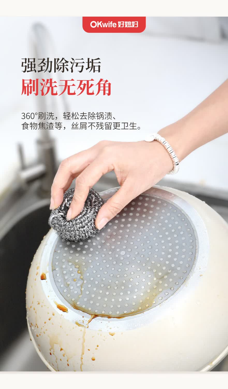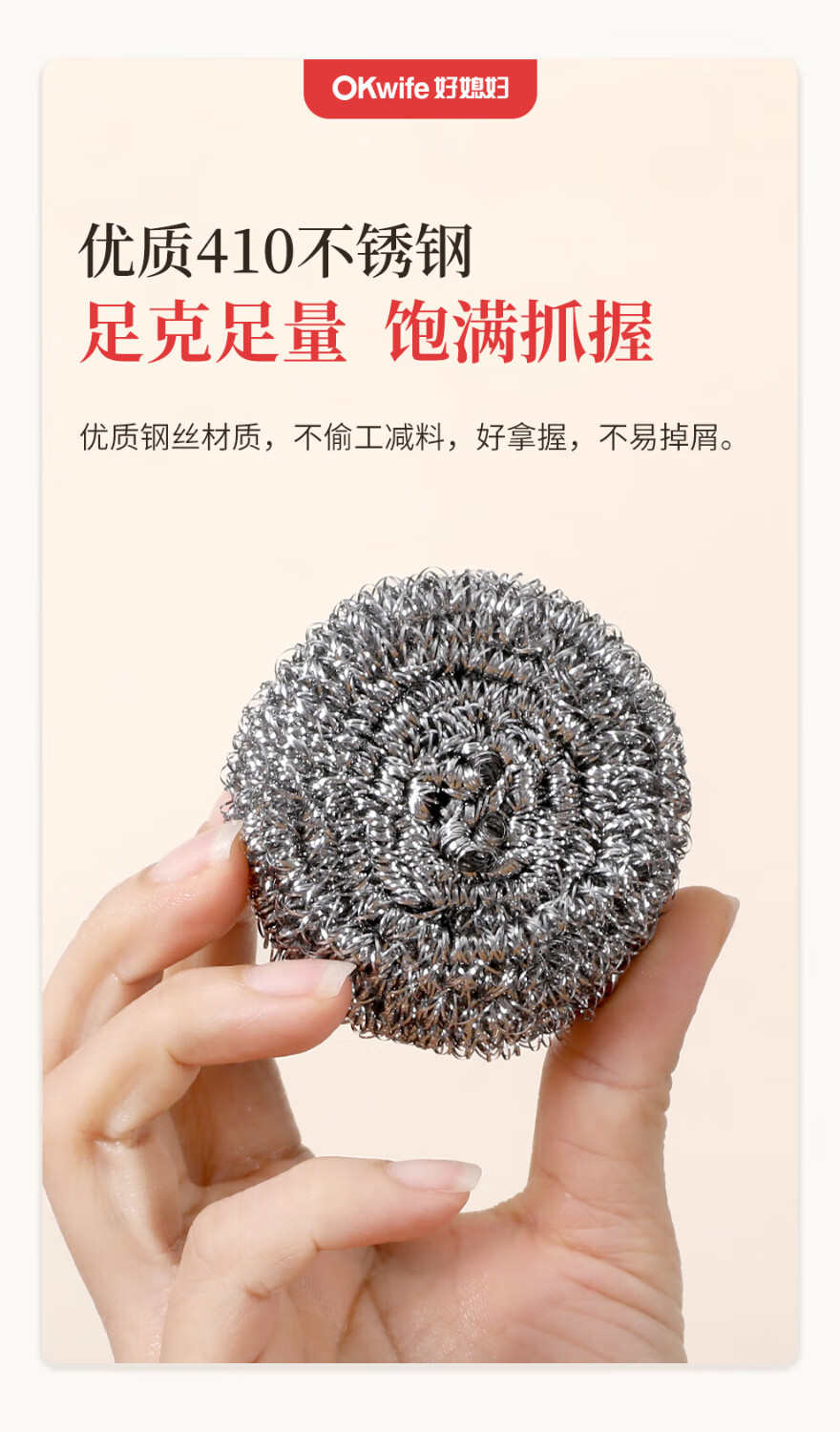 好媳妇410不锈钢钢丝球带柄清洁球去油污去渍家用厨房多功能刷碗洗锅刷 410不锈钢带手柄钢丝球【9个装】