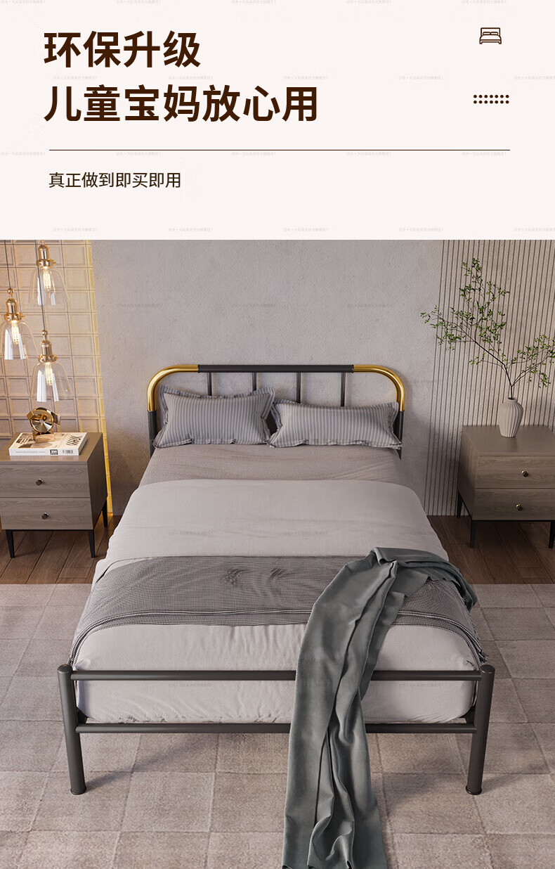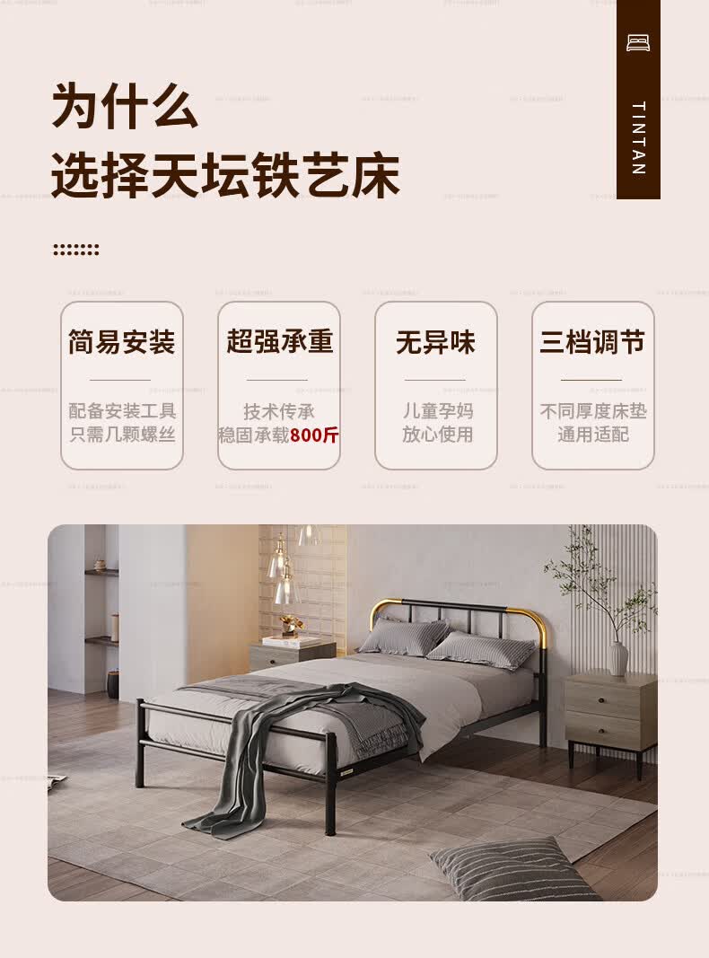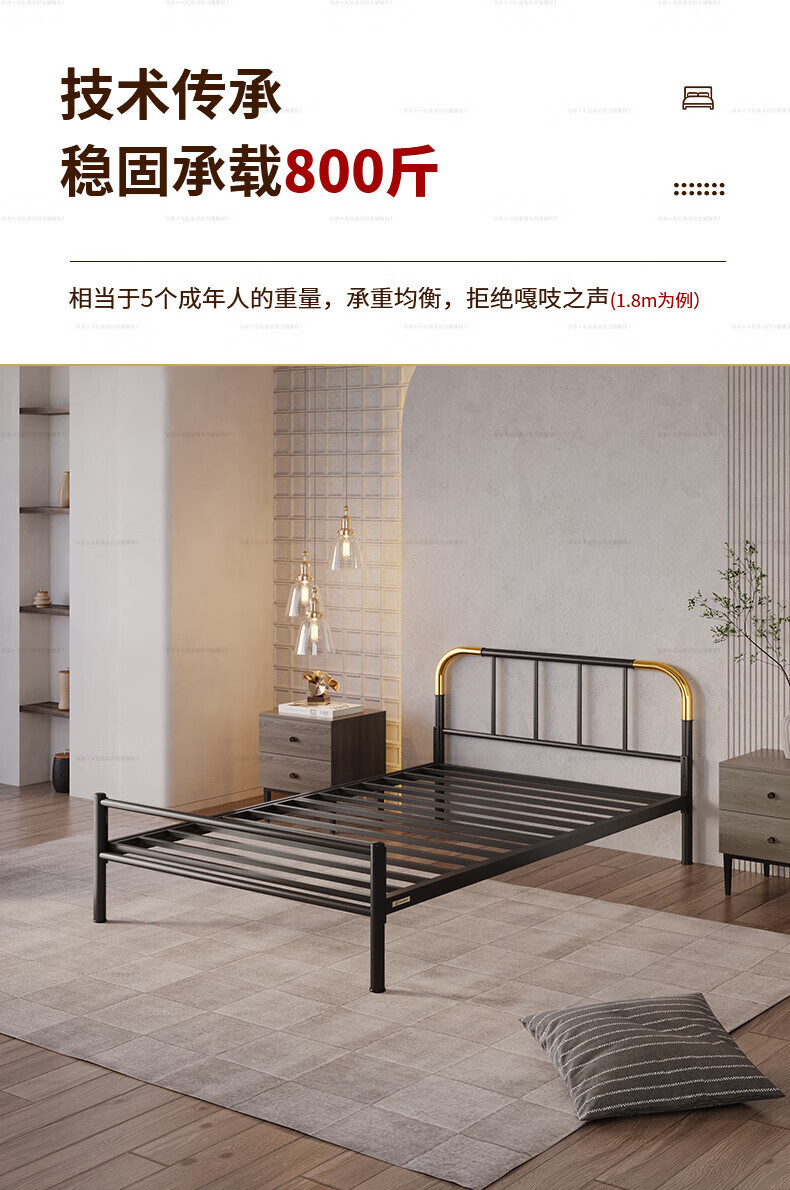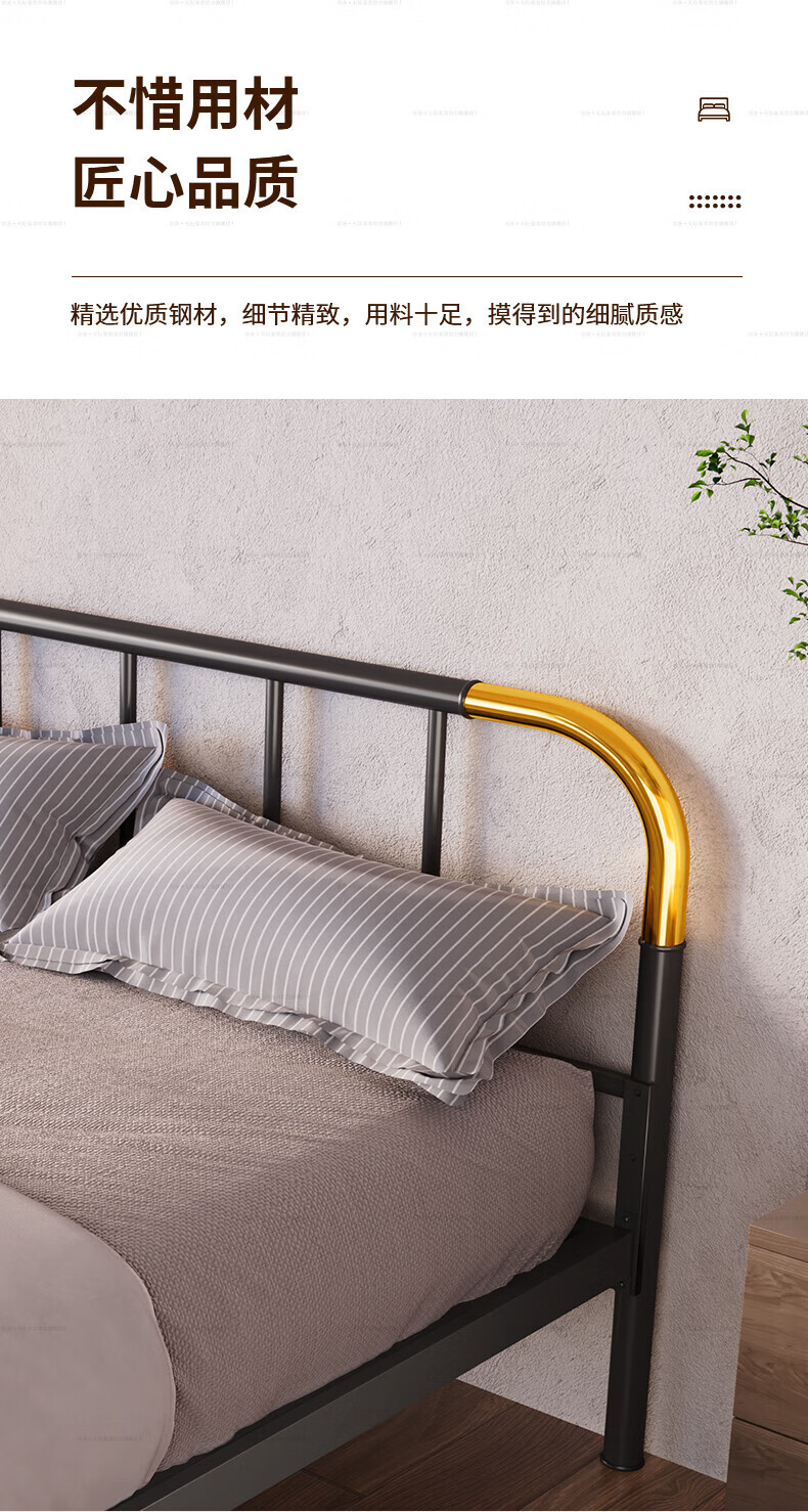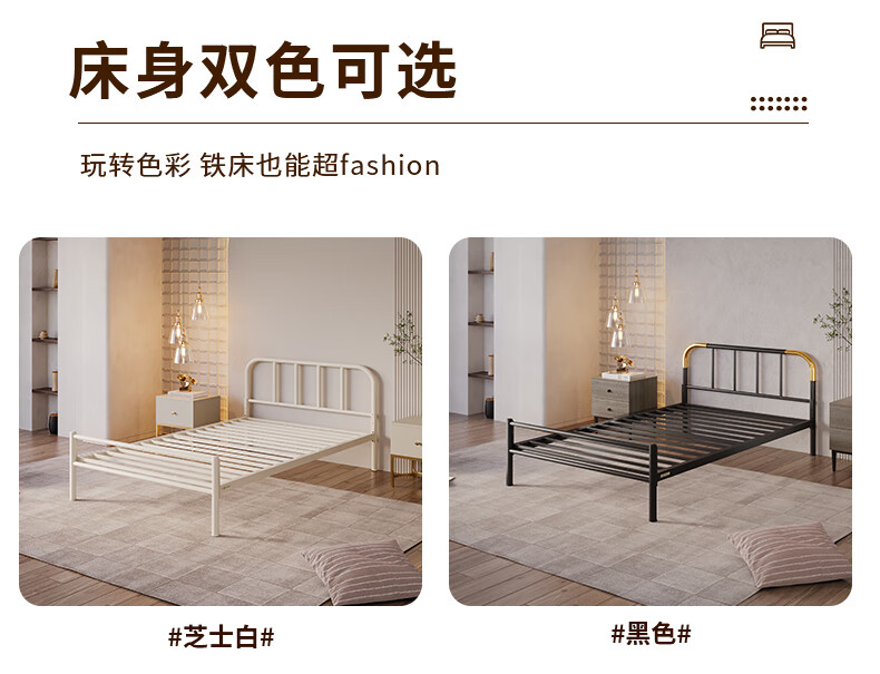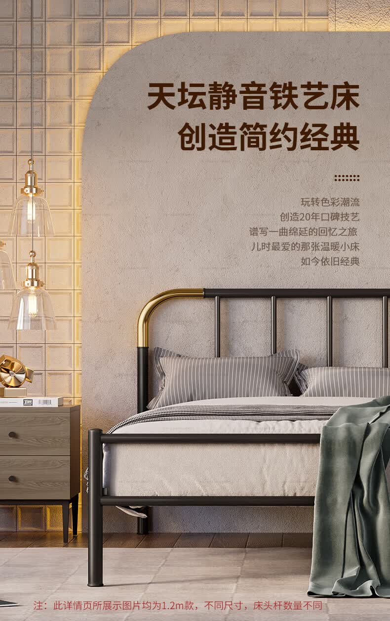 天坛家具铁艺床经典单双人钢木铁床现代环保简约小户型黑白色铁艺婚床 铁艺床(黑色)(不含床垫) 1.5*2.0m