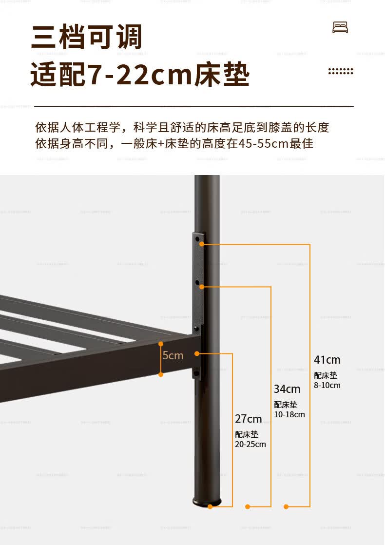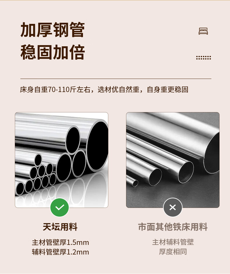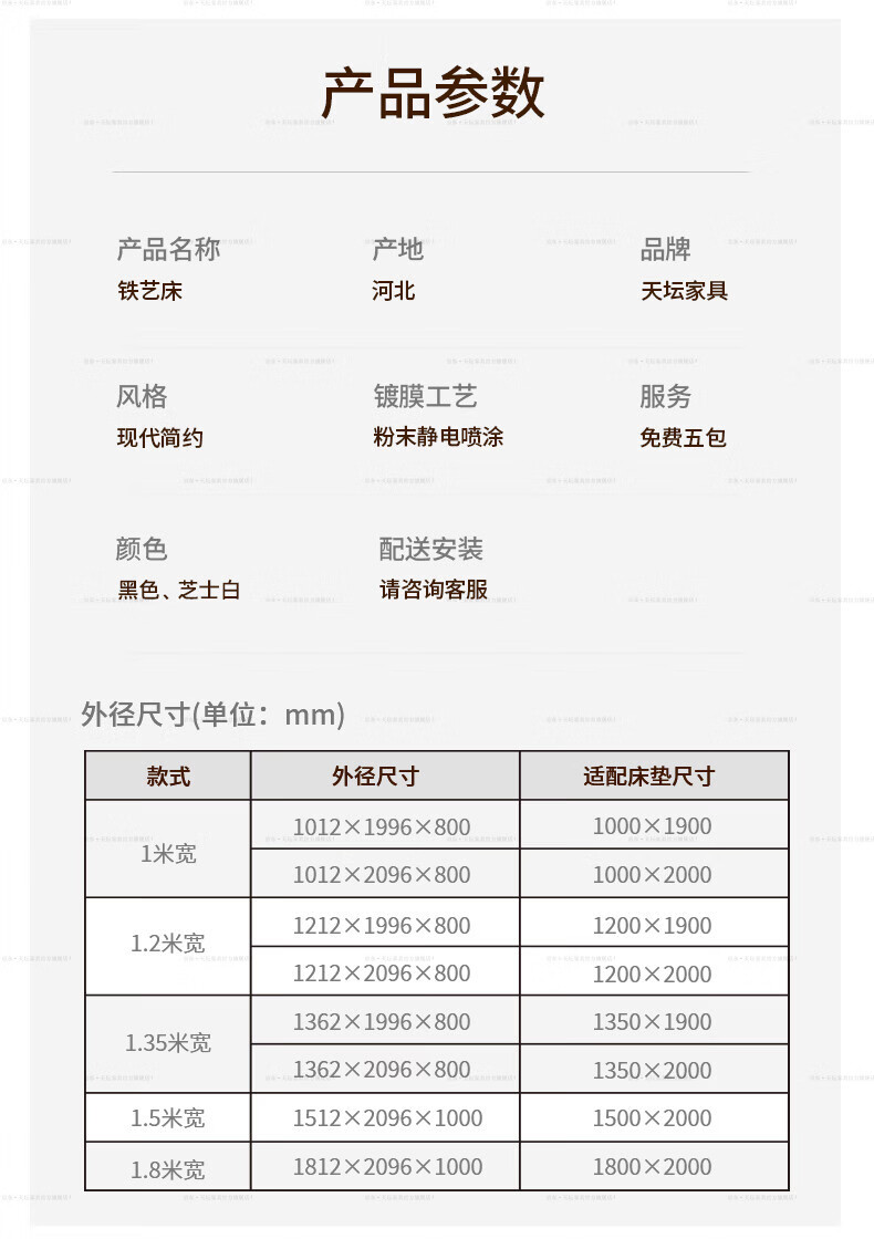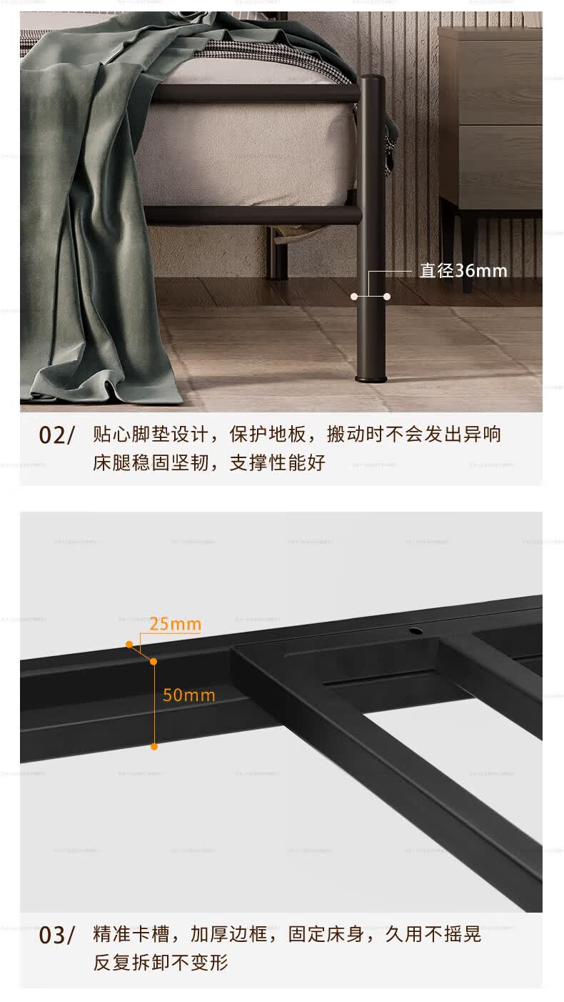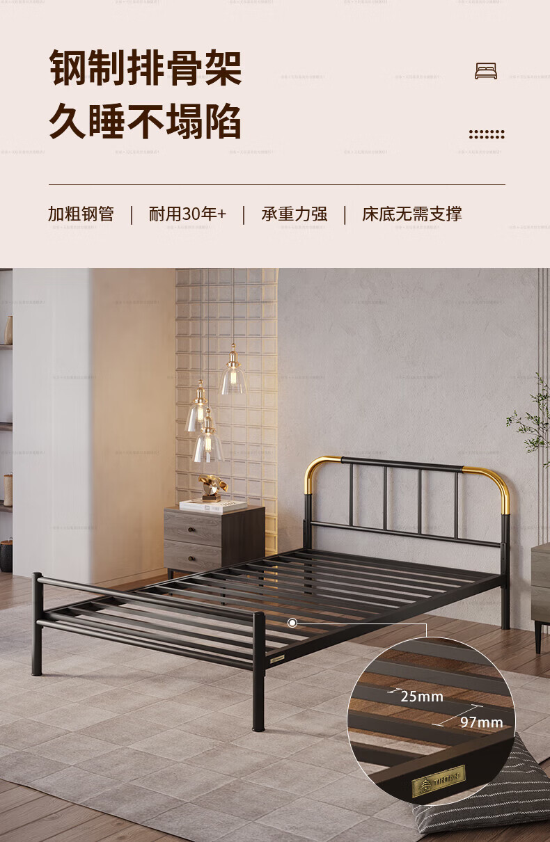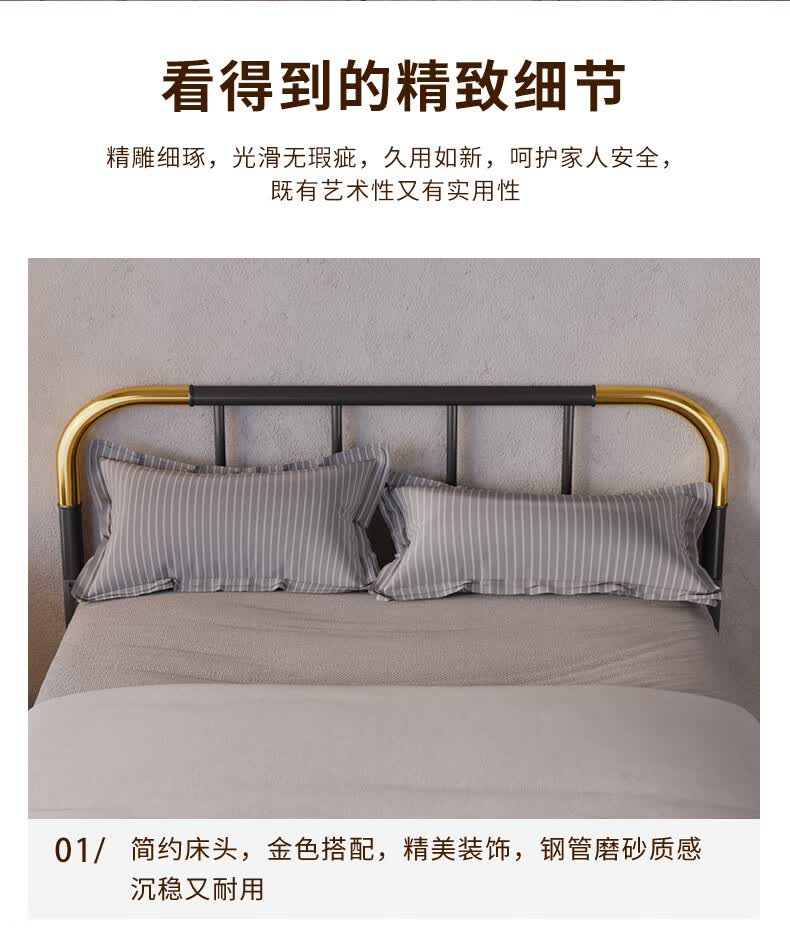 天坛家具铁艺床经典单双人钢木铁床现代环保简约小户型黑白色铁艺婚床 铁艺床(黑色)(不含床垫) 1.5*2.0m