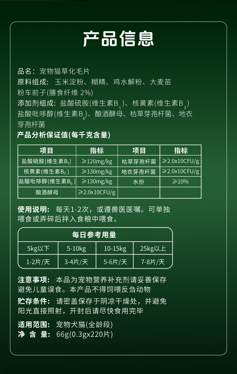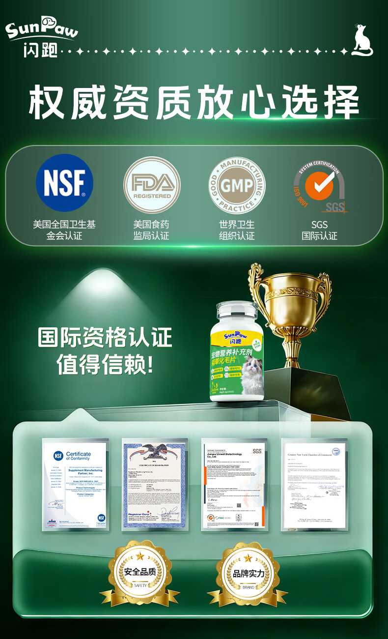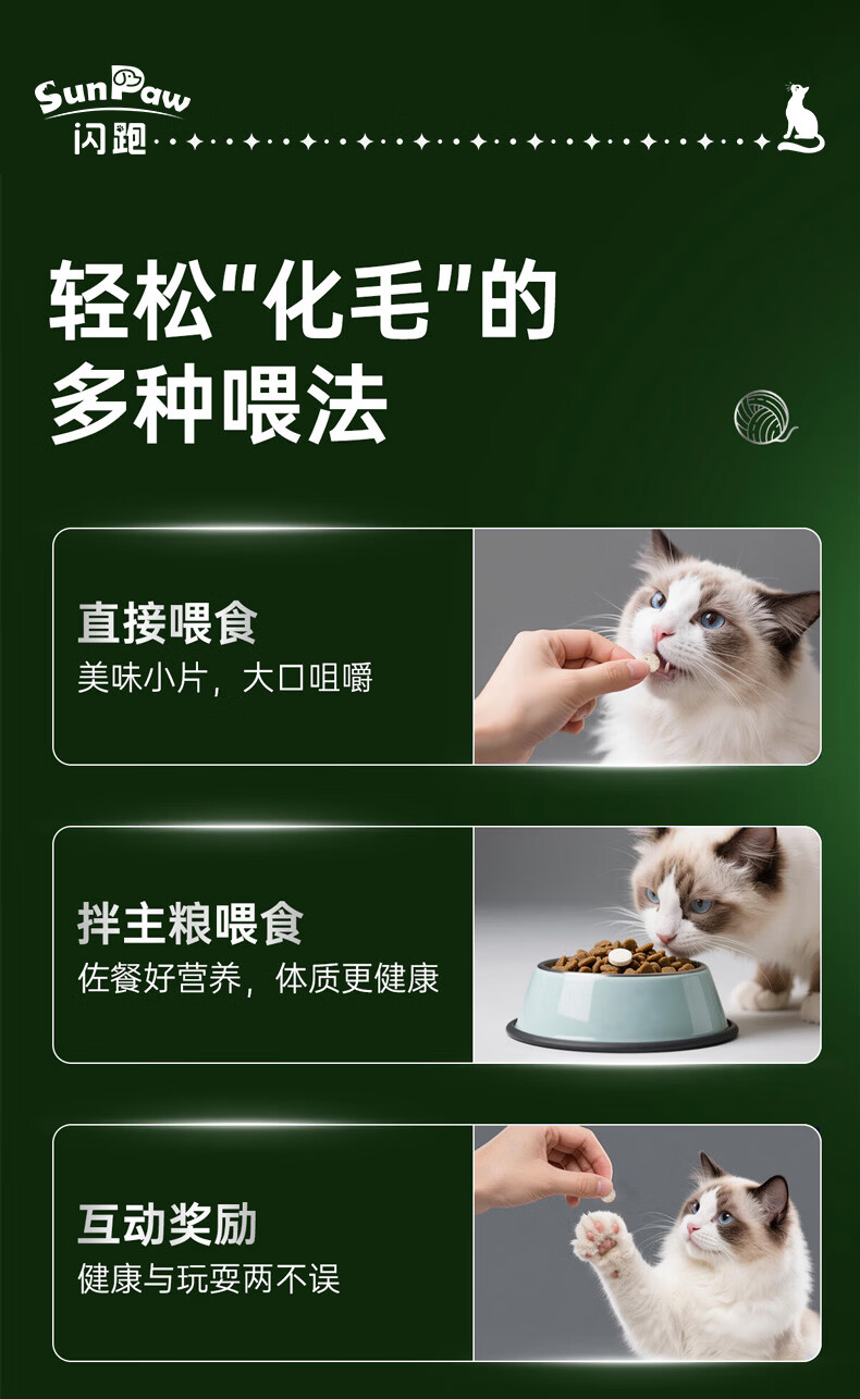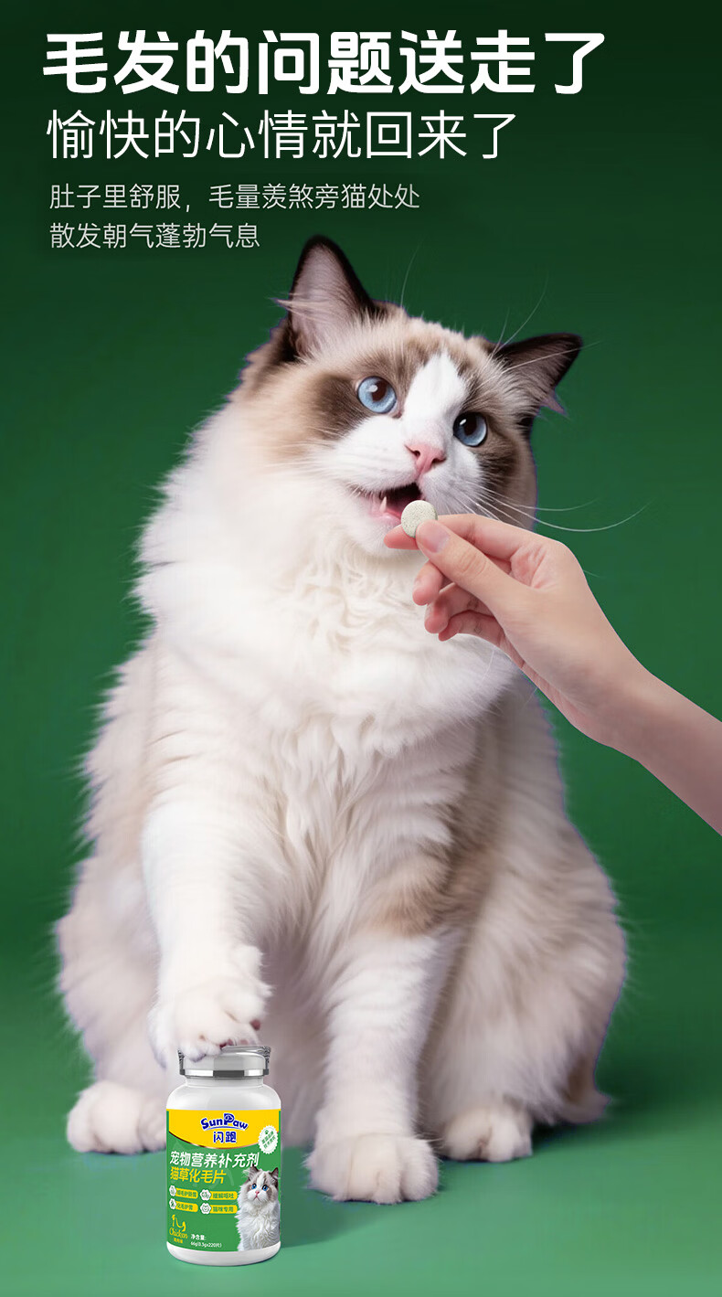 SunPaw闪跑美国猫草片化毛球片猫咪专用排除毛球调理肠胃防吐毛化毛膏 【温和排毛】化毛球片 220片*1瓶