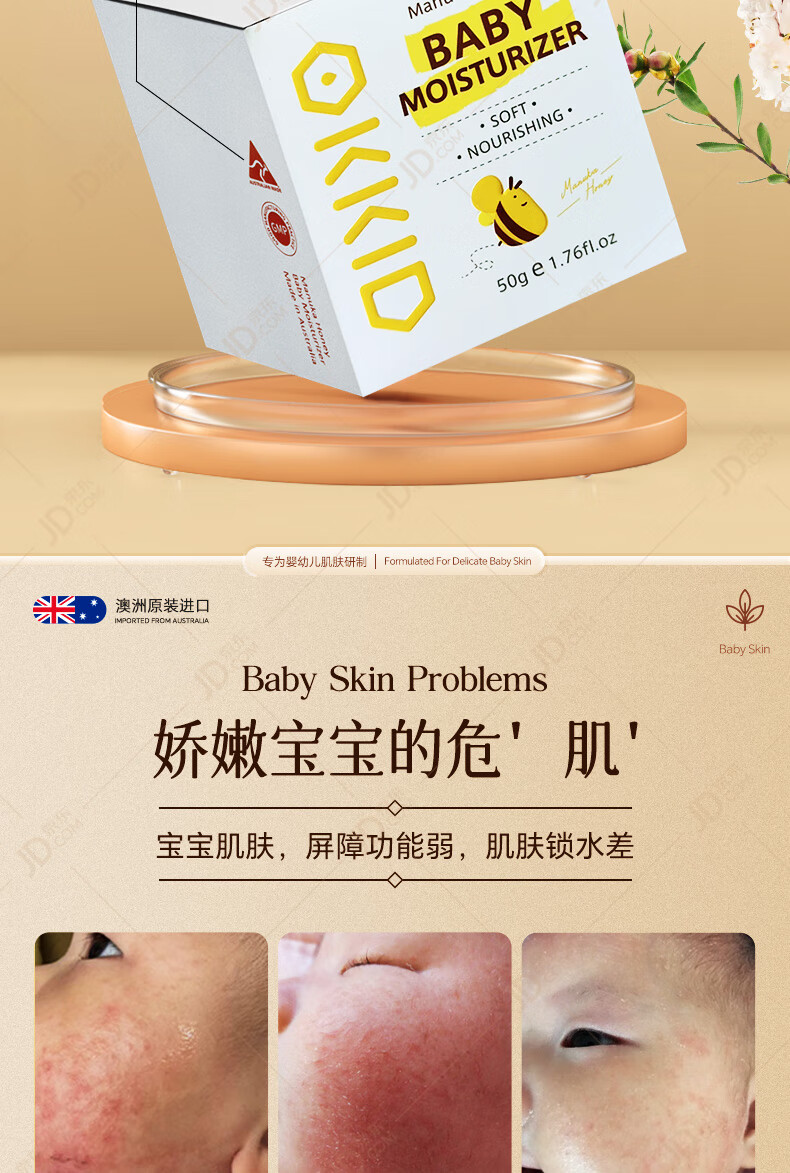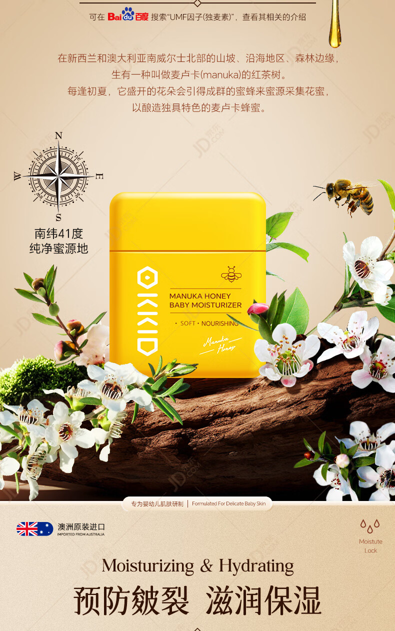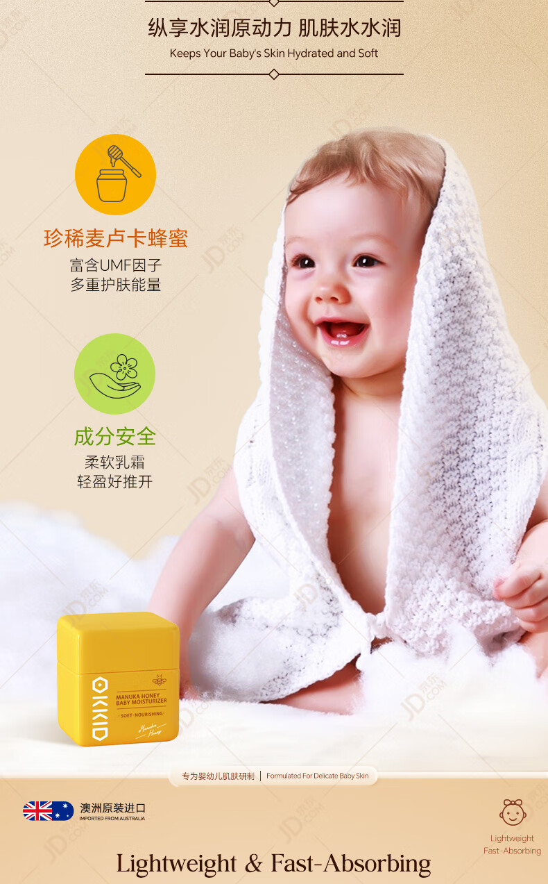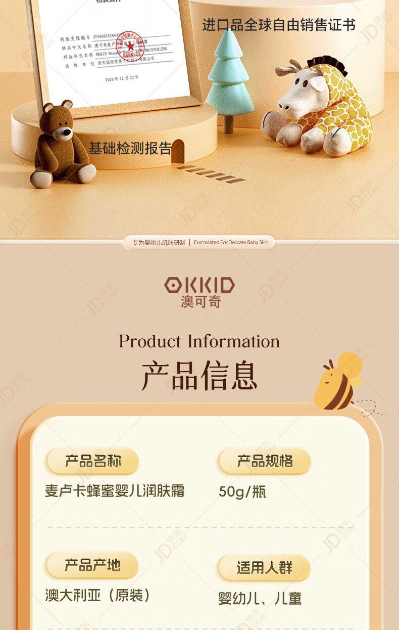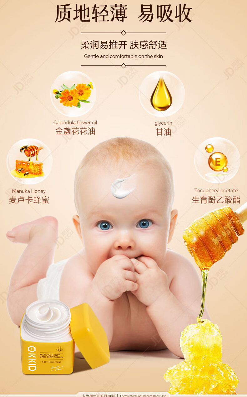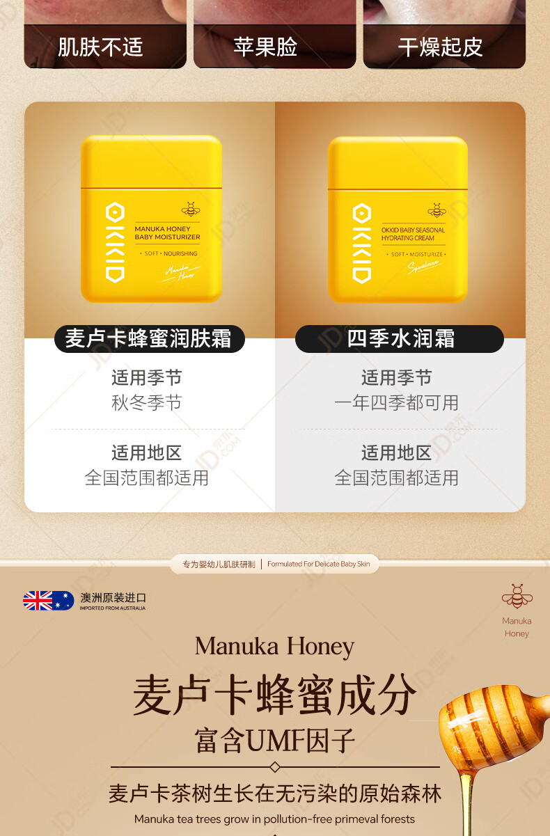 澳可奇OKKID麦卢卡蜂蜜婴儿润肤面霜儿童霜保湿滋润宝宝霜婴幼儿擦脸油 【秋冬护肤/干痒红皴】麦卢卡蜂蜜婴儿润肤霜50g