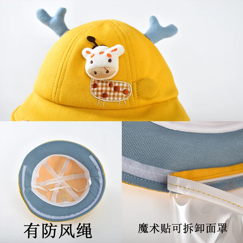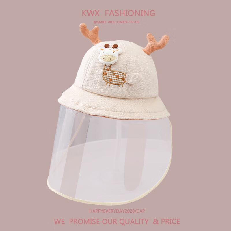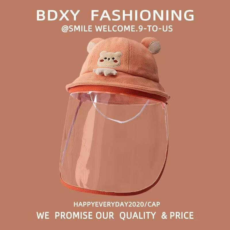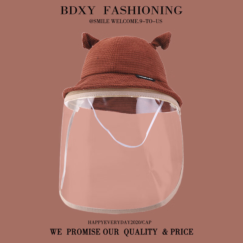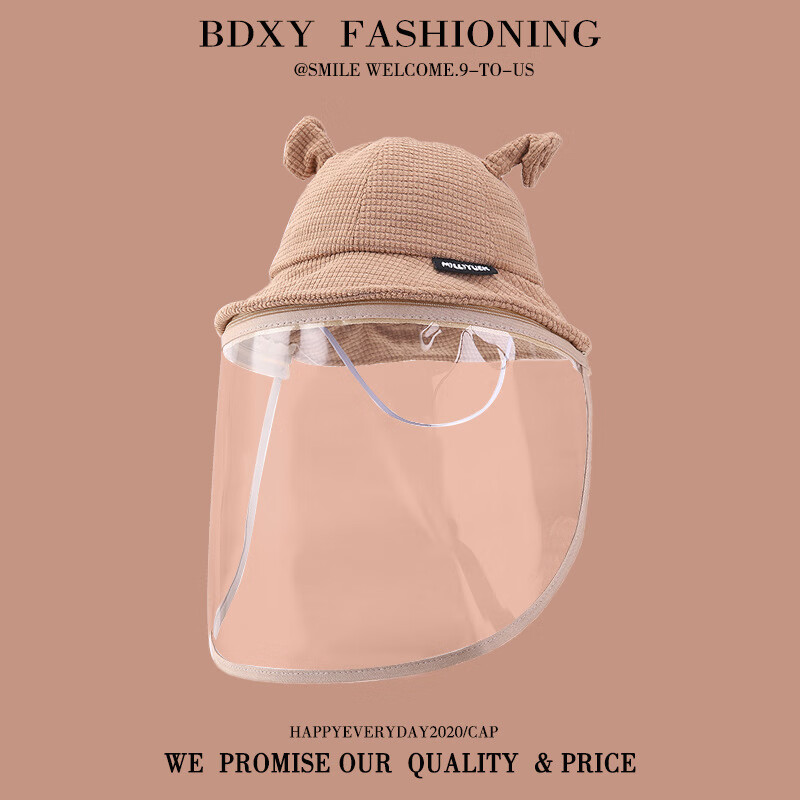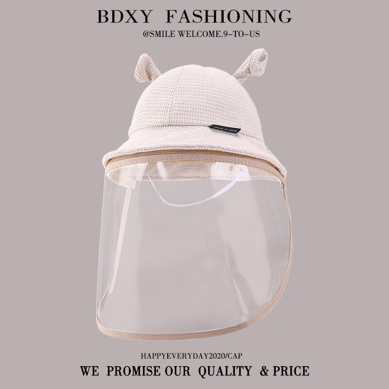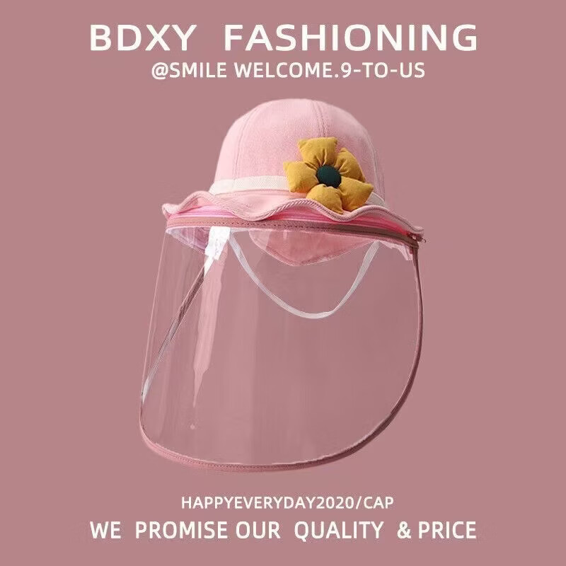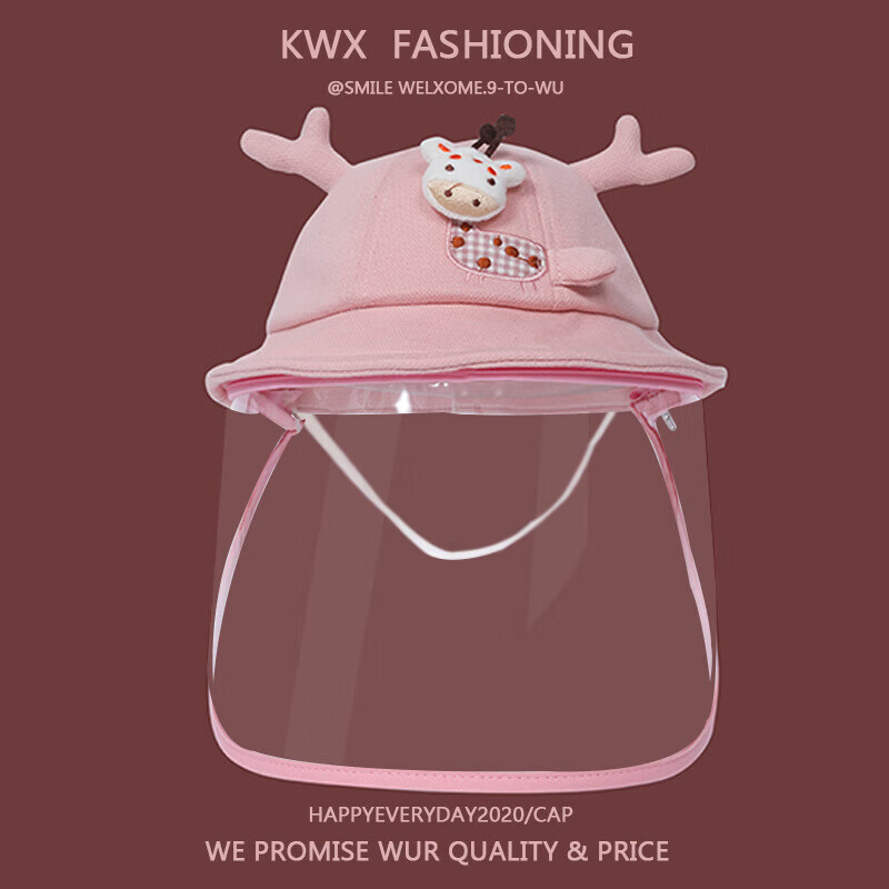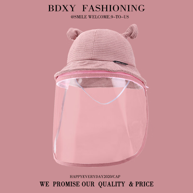 爱莉安娜婴儿秋冬面部防护罩帽儿童防风渔夫帽宝宝防飞沫帽子 8-24个月-均码-粉色花朵+面罩(升级拉链可拆卸
