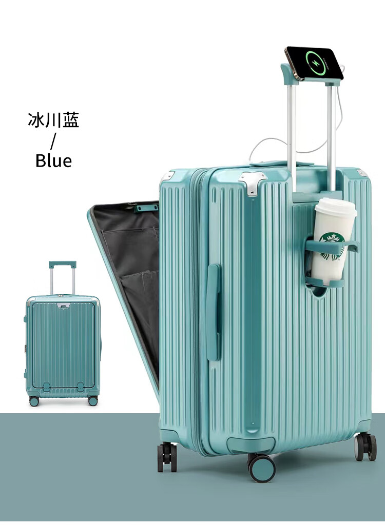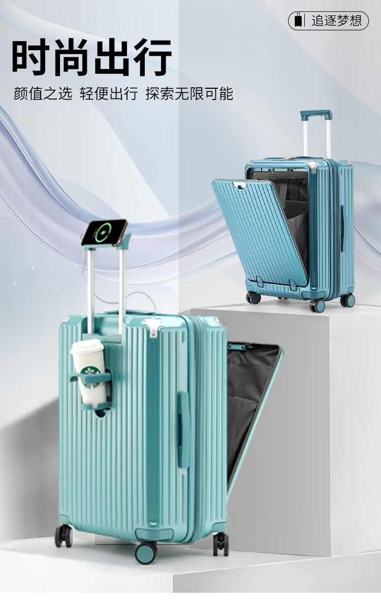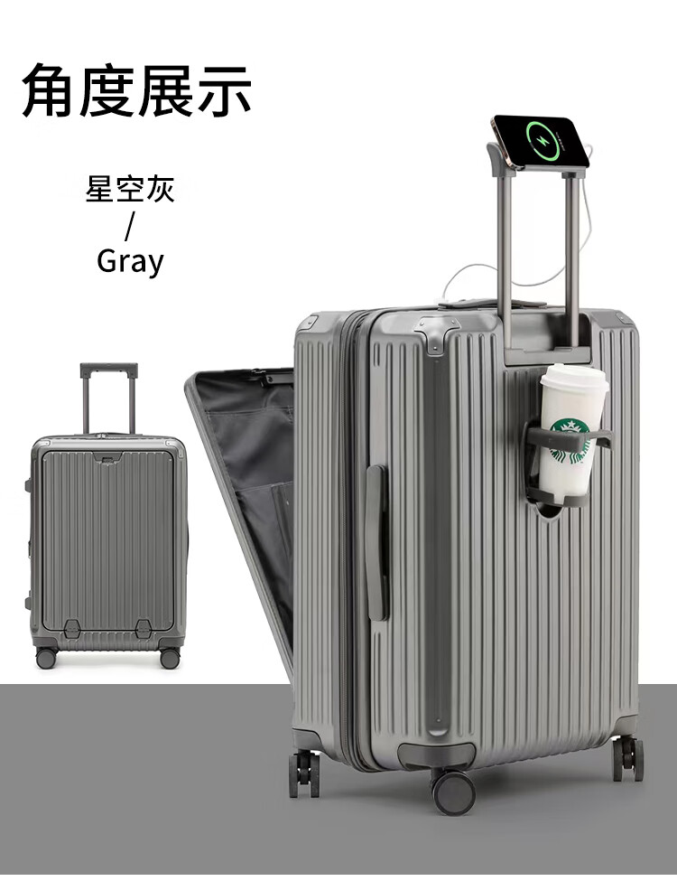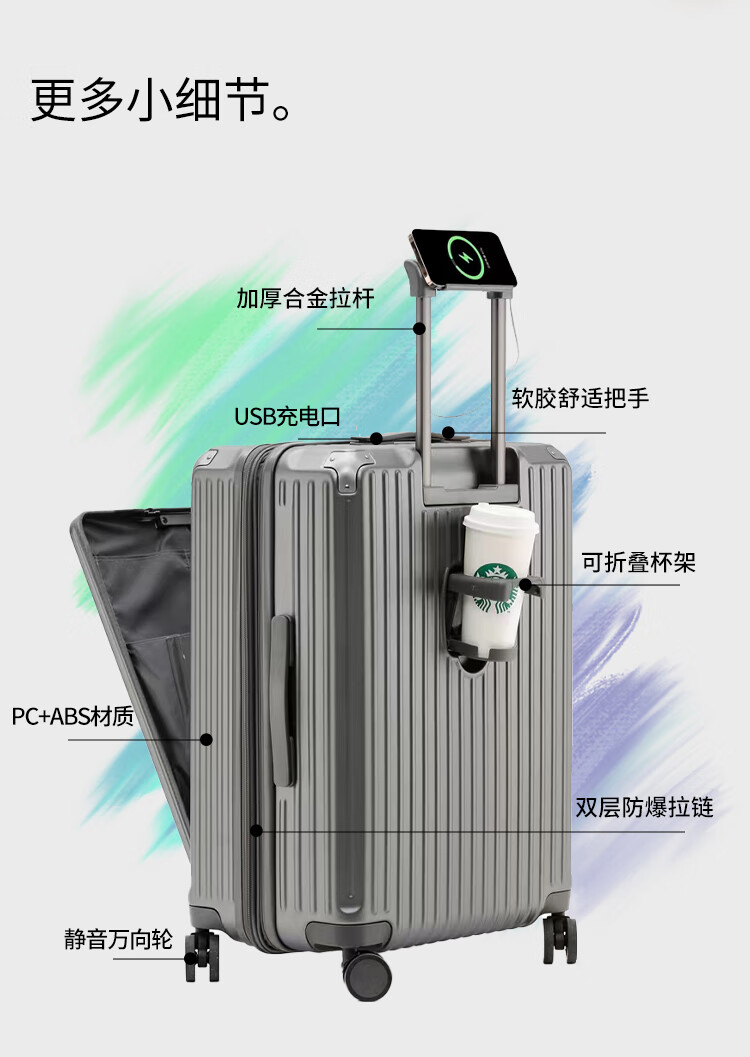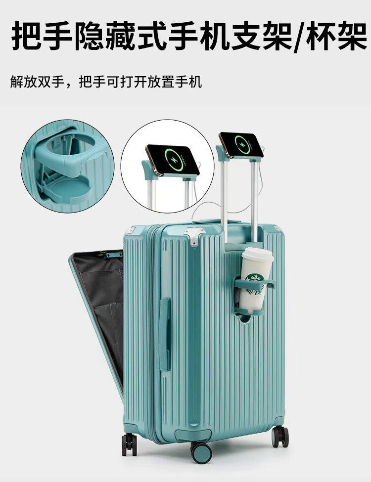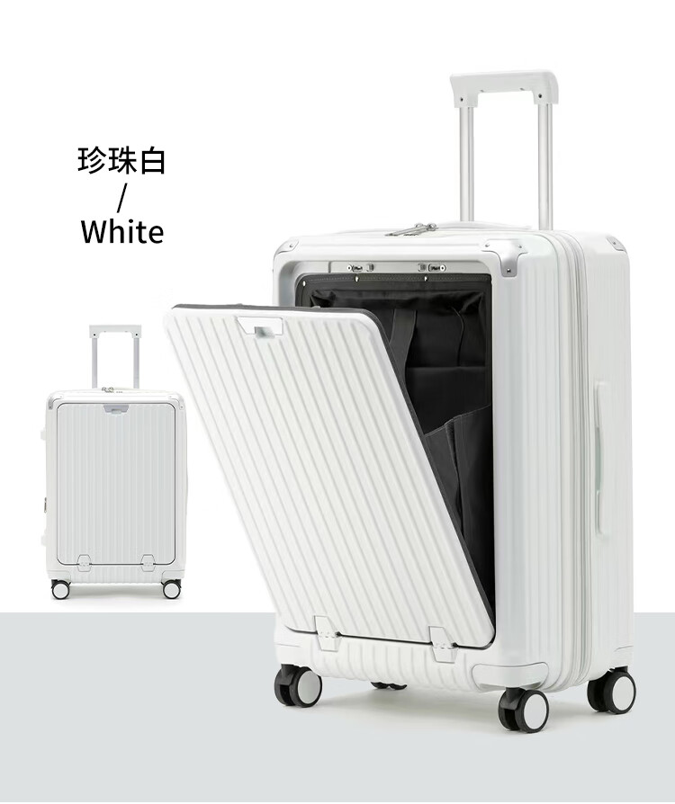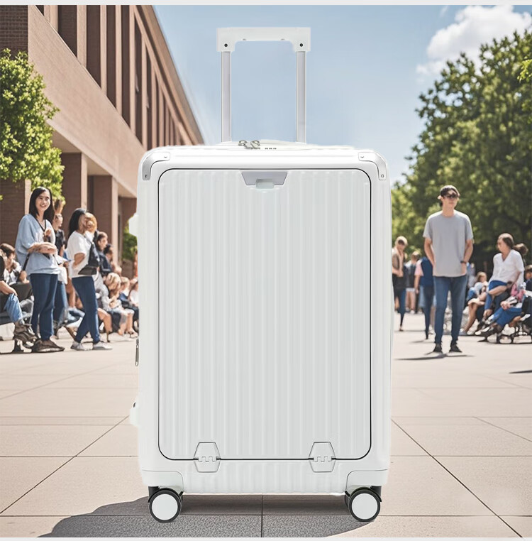 ROYAL ARMY多功能行李箱大容量旅行箱男女学生时尚潮流拉杆箱登机密码锁箱包 白色升级款-手机支架+杯架+挂钩 25英寸 -【需托运】