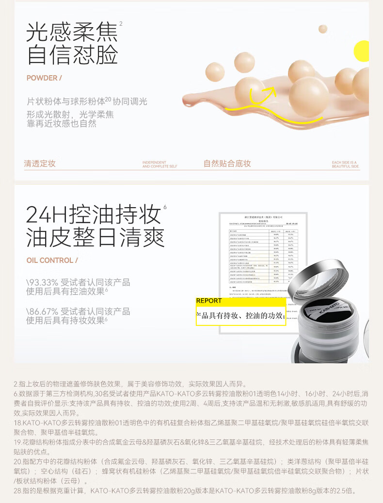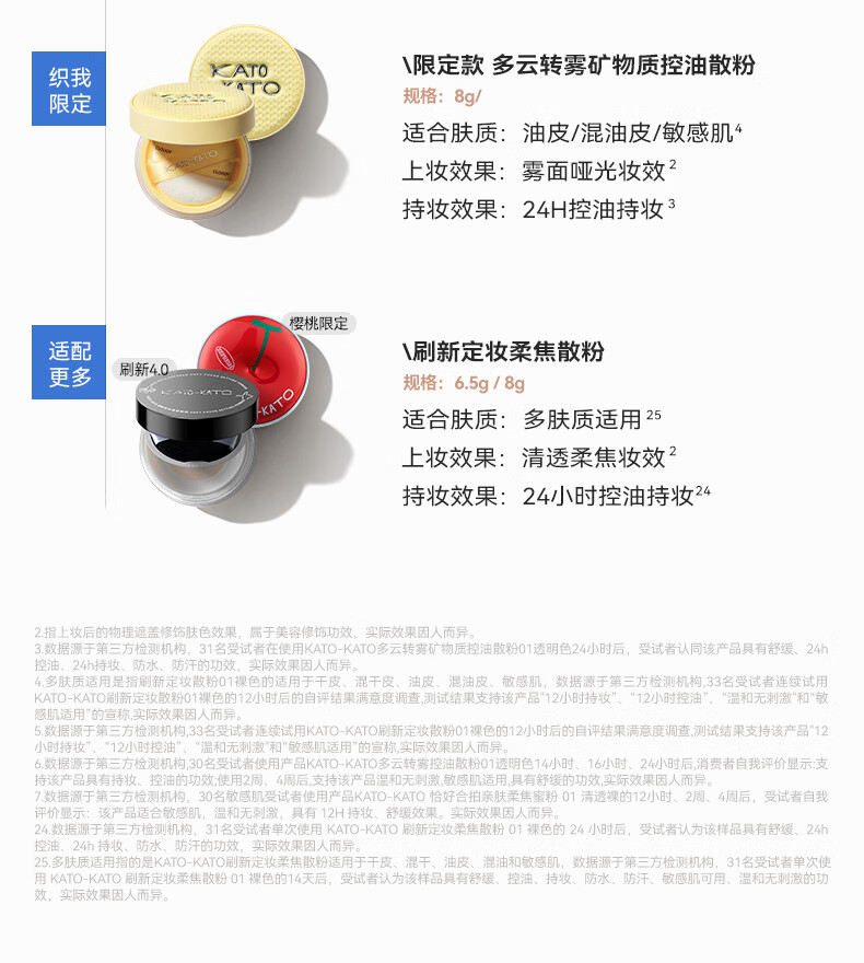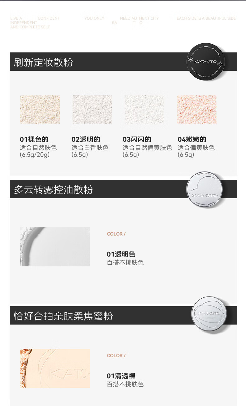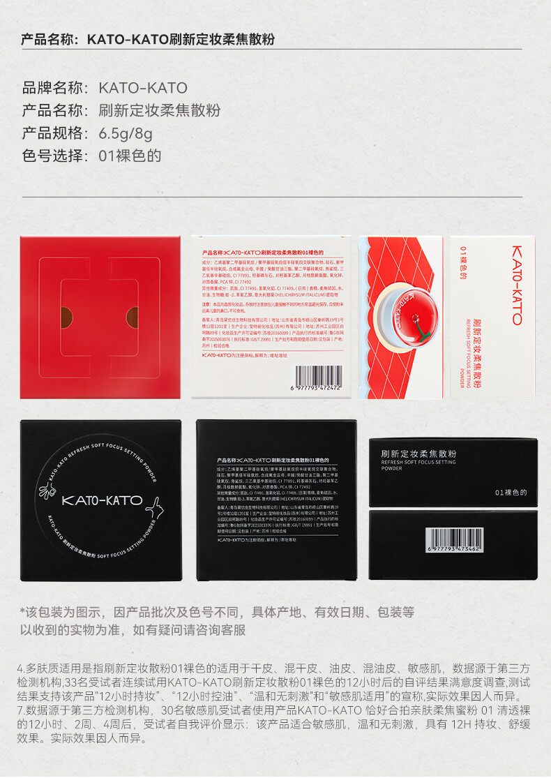 KATO-KATO刷新定妆散粉持妆控油持久补妆柔焦蜜粉不易脱妆生日礼物送女友 3.0雾面柔焦-01裸色的6.5g多肤质