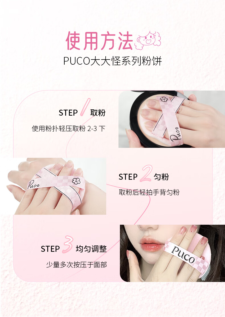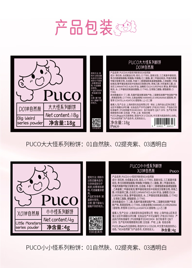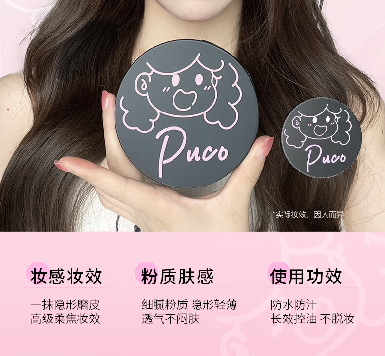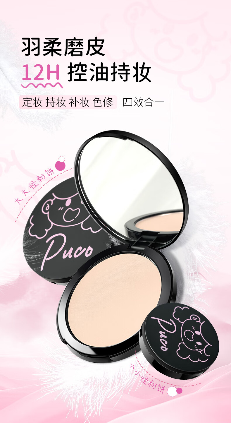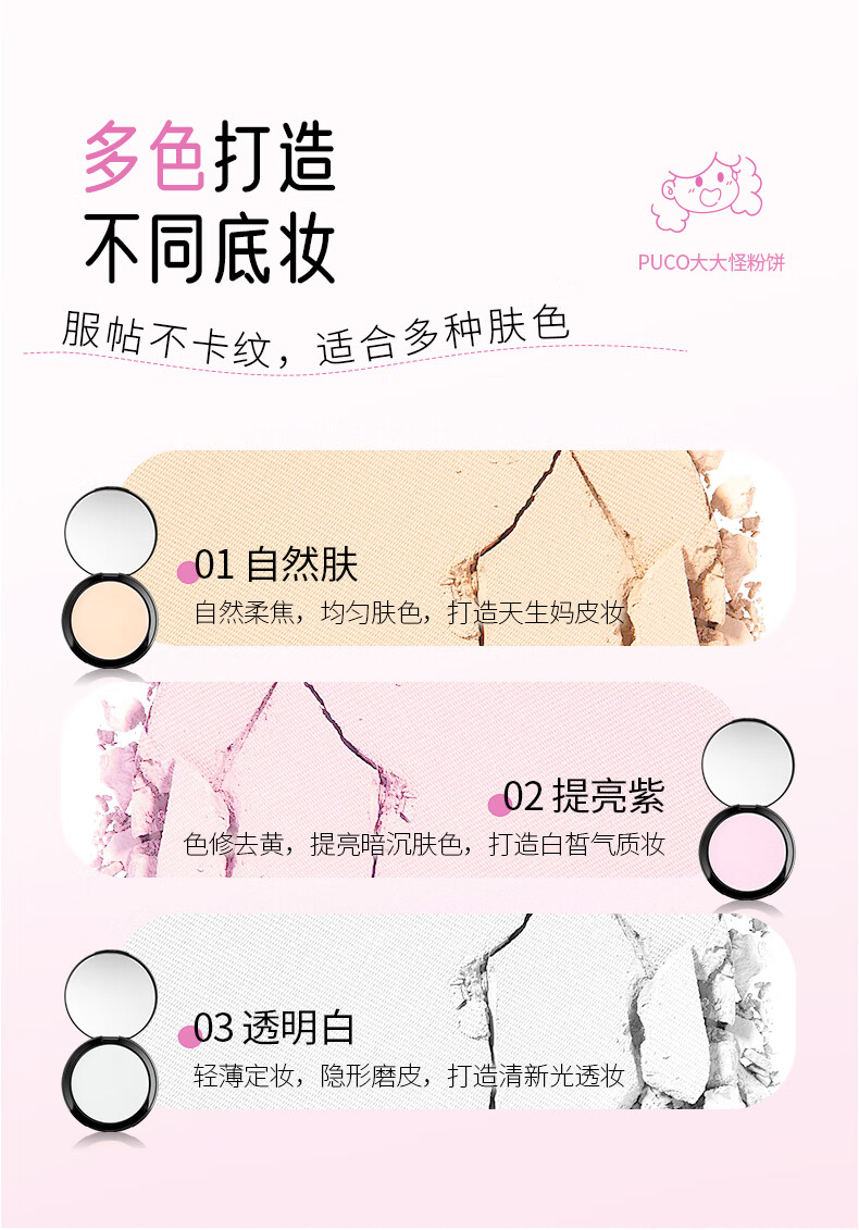 PUCO【买1送1共22g】大小怪系列柔焦蜜粉饼定妆控油防水防汗 D02 | 提亮紫(适合白皮、冷白皮)