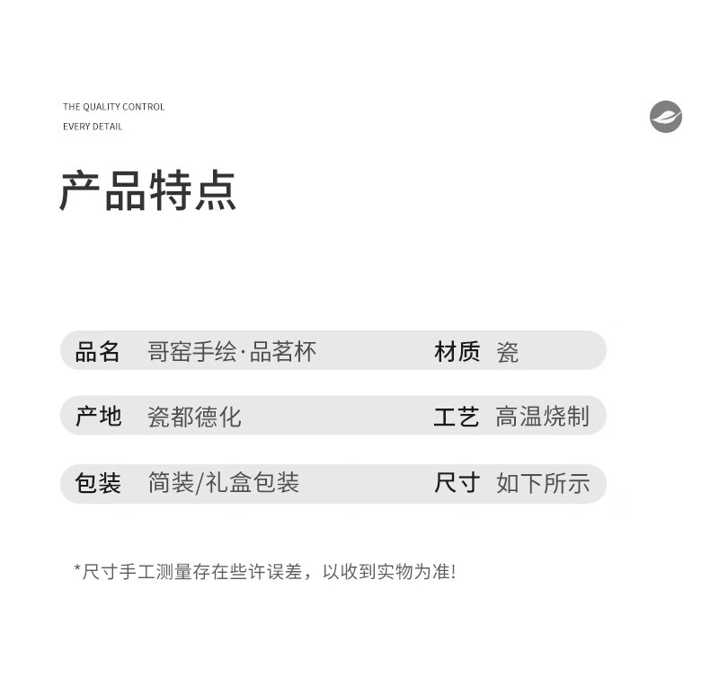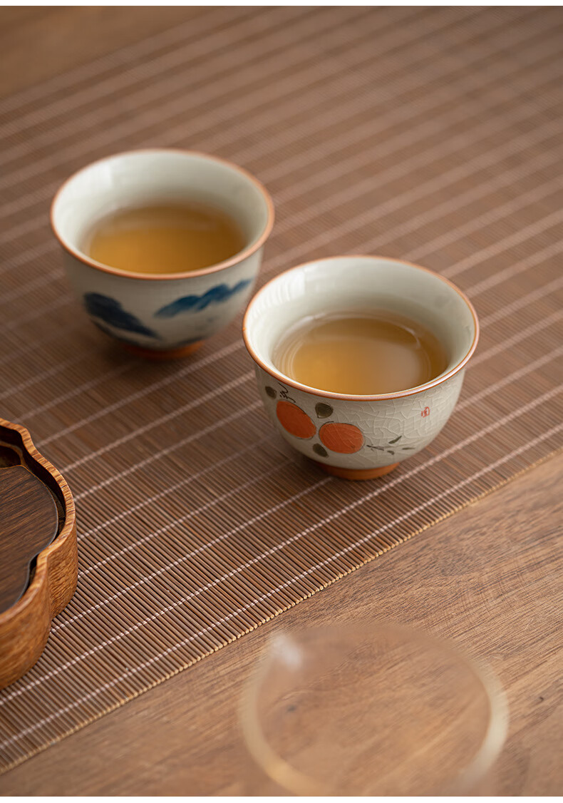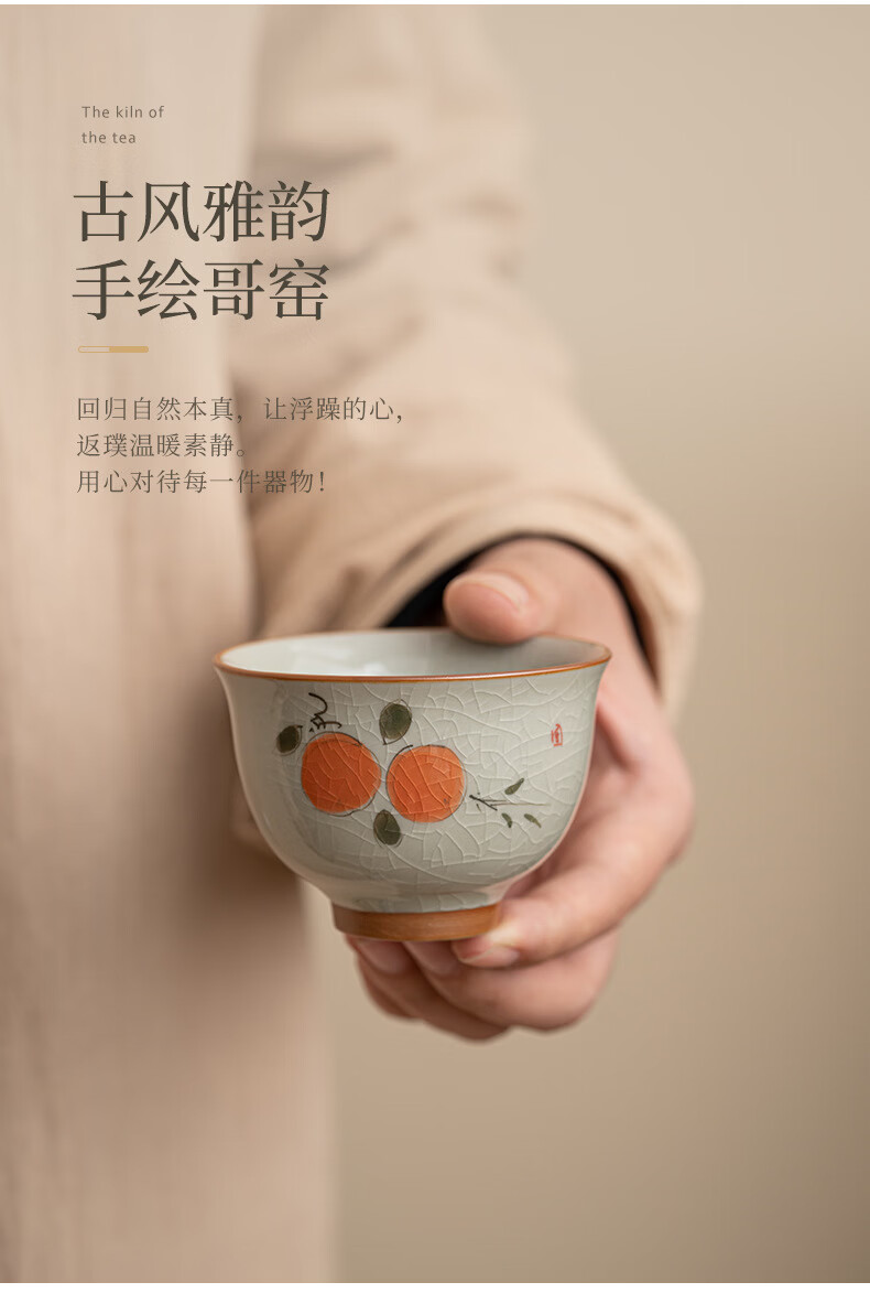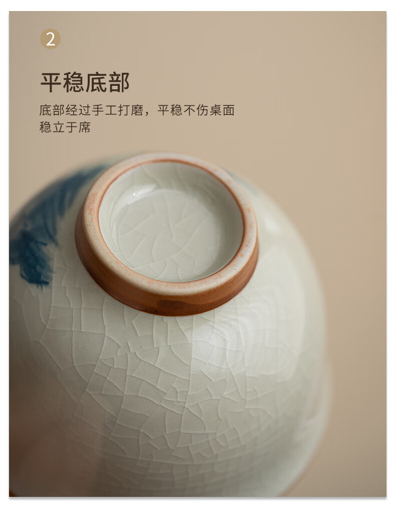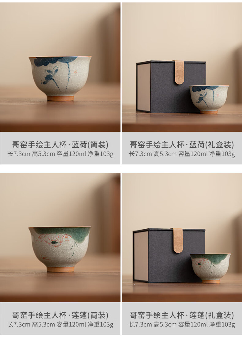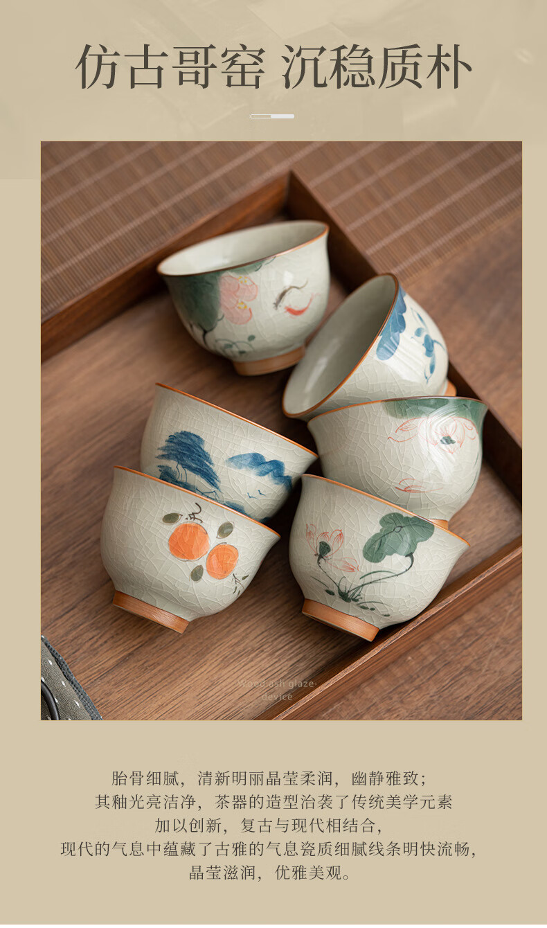 陶思想手绘哥窑茶杯功夫茶具陶瓷品茗杯家用开片釉主人杯礼盒装 哥窑手绘--碗杯【山水】礼盒装