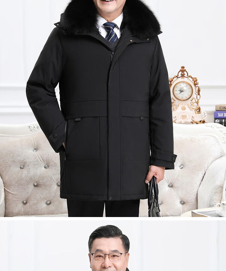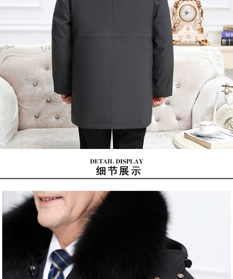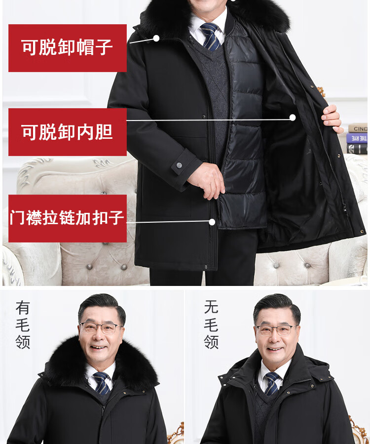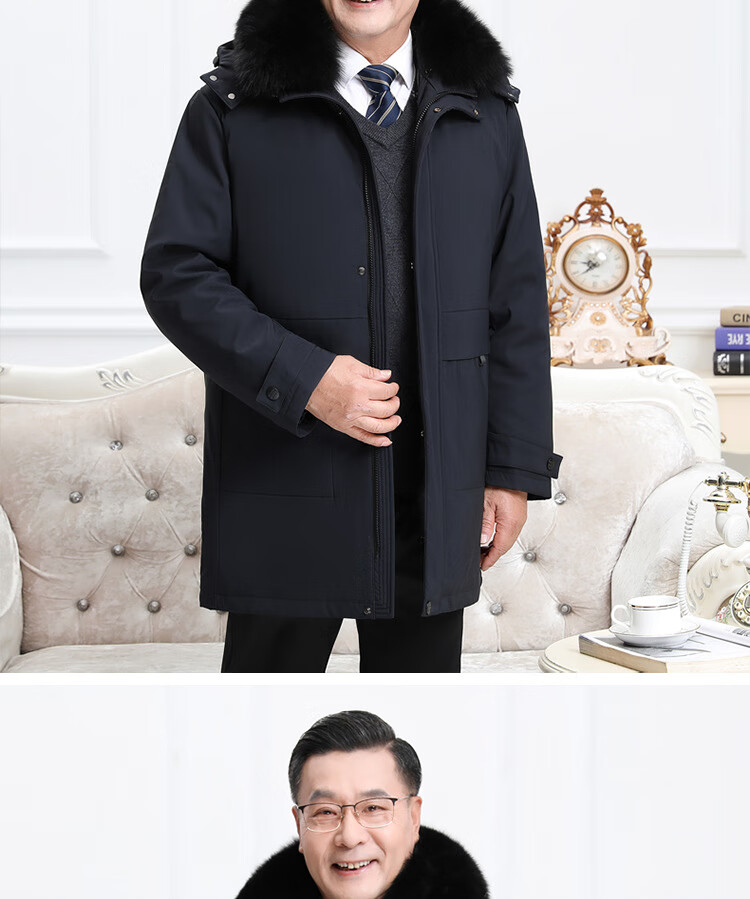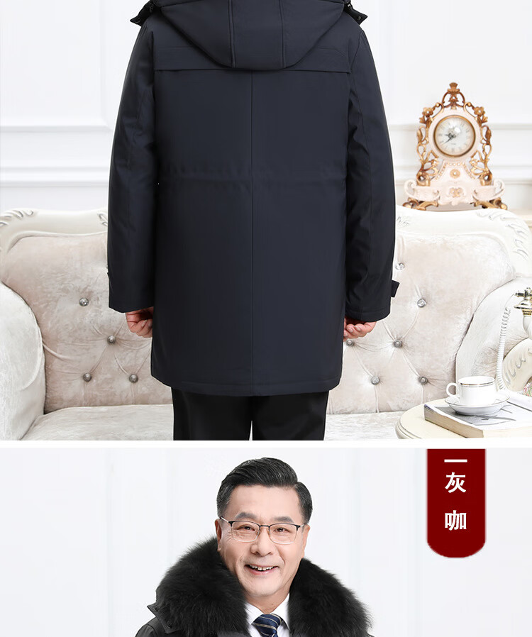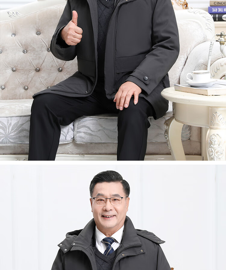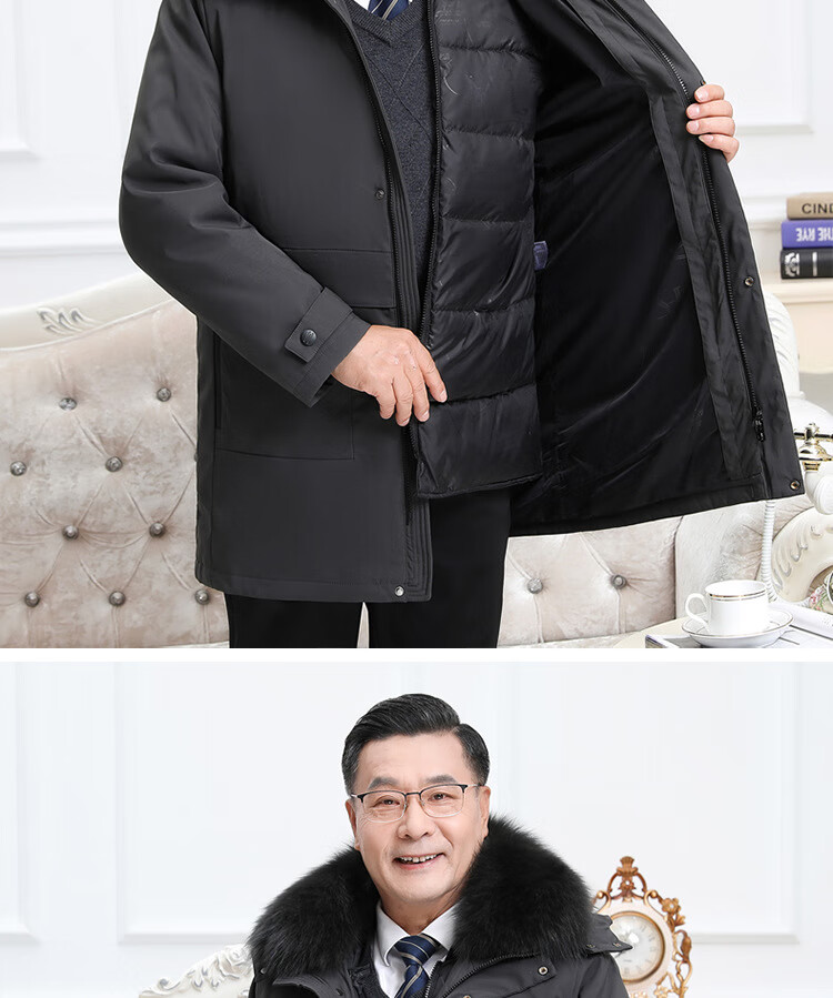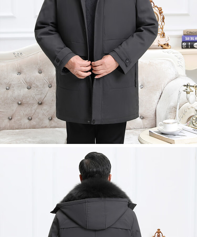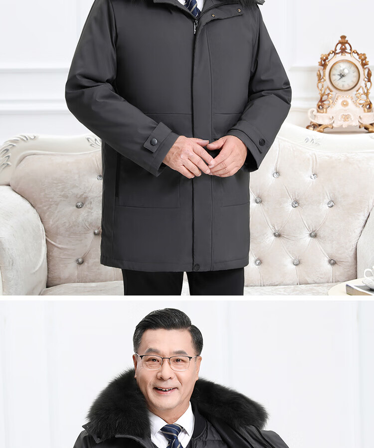 加厚活里活面爸爸羽绒服男士中长款大码毛领中老年可拆卸爷爷冬装 灰咖(带毛领) 2XL