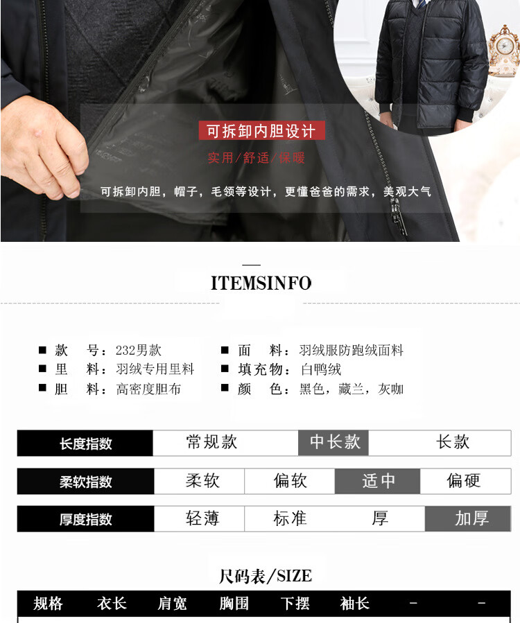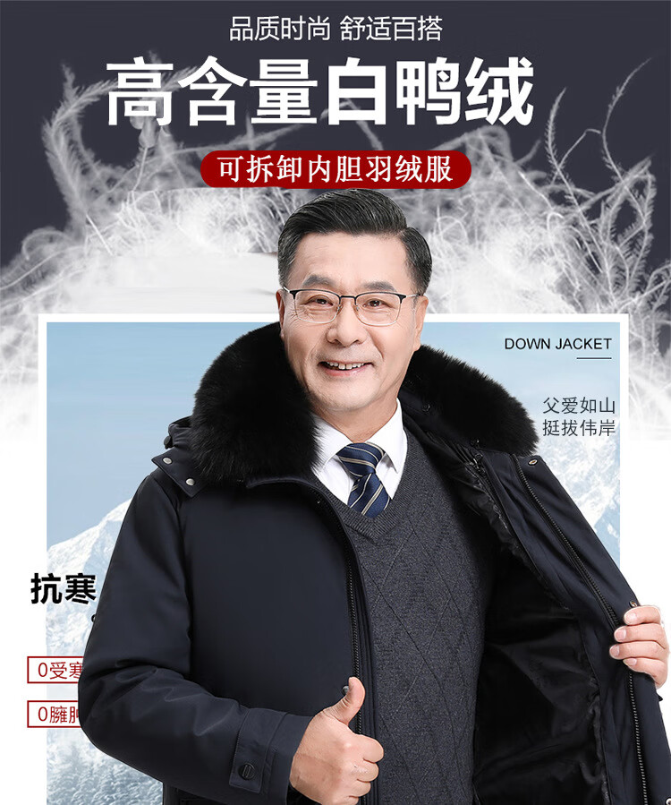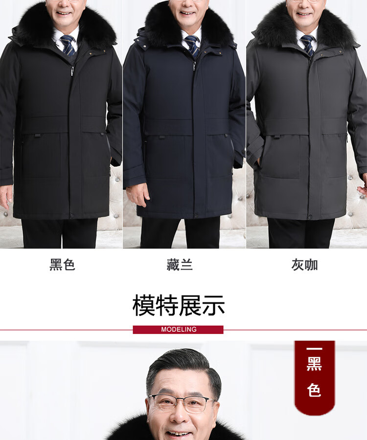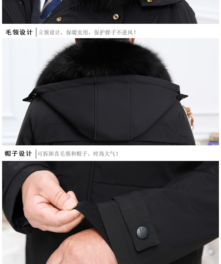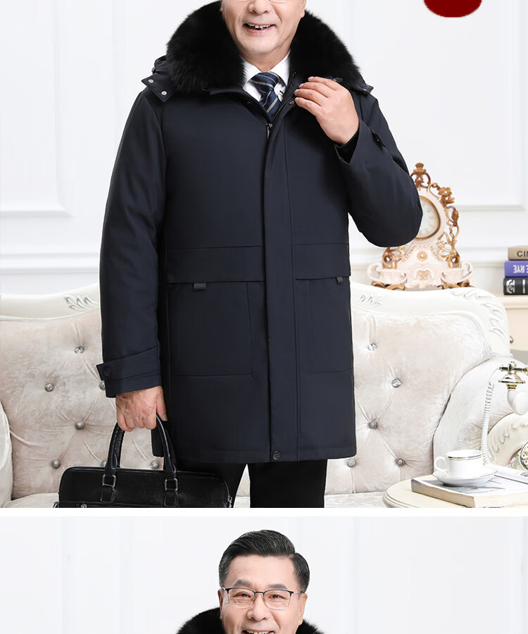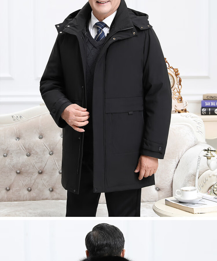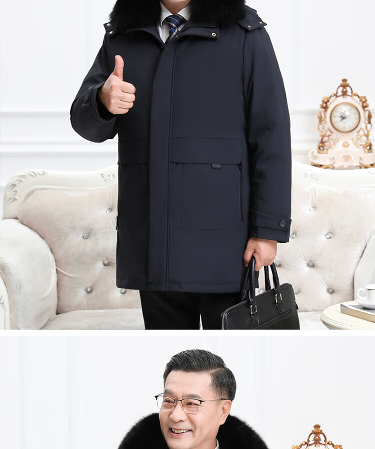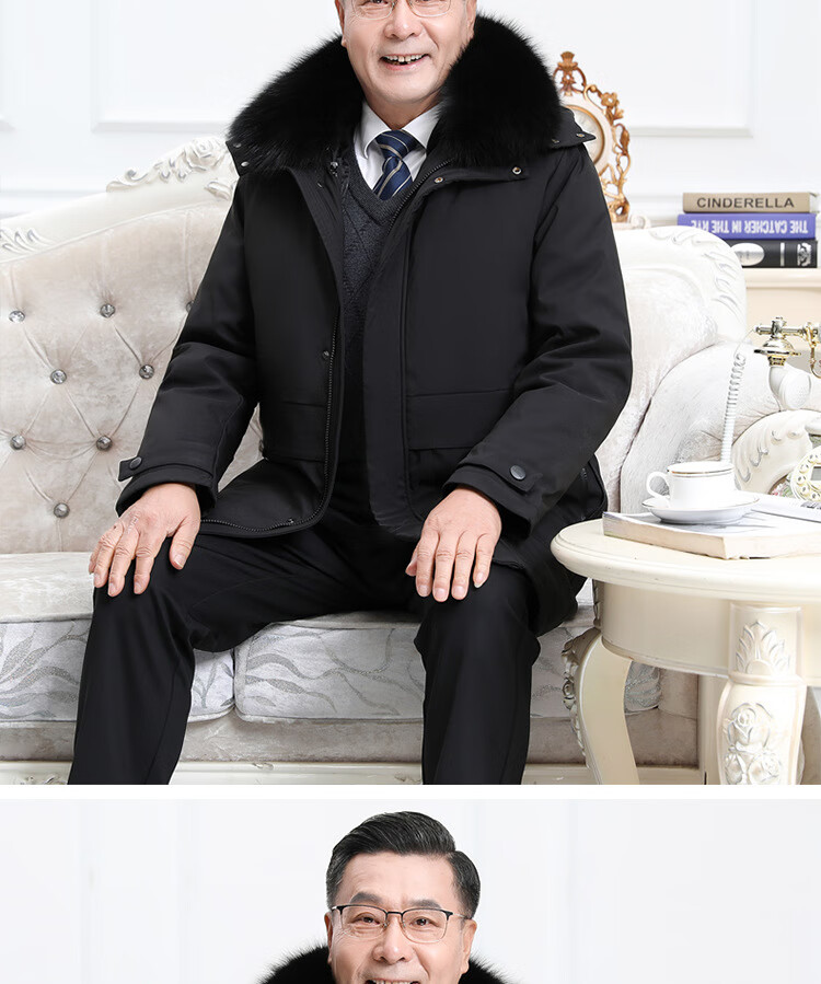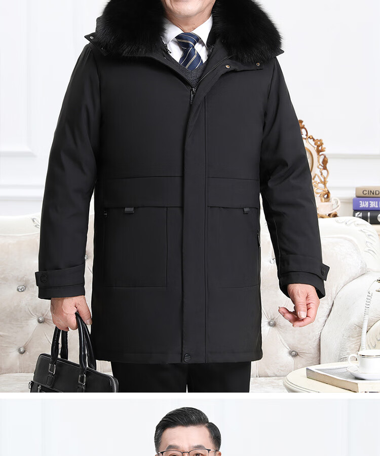 加厚活里活面爸爸羽绒服男士中长款大码毛领中老年可拆卸爷爷冬装 灰咖(带毛领) 2XL
