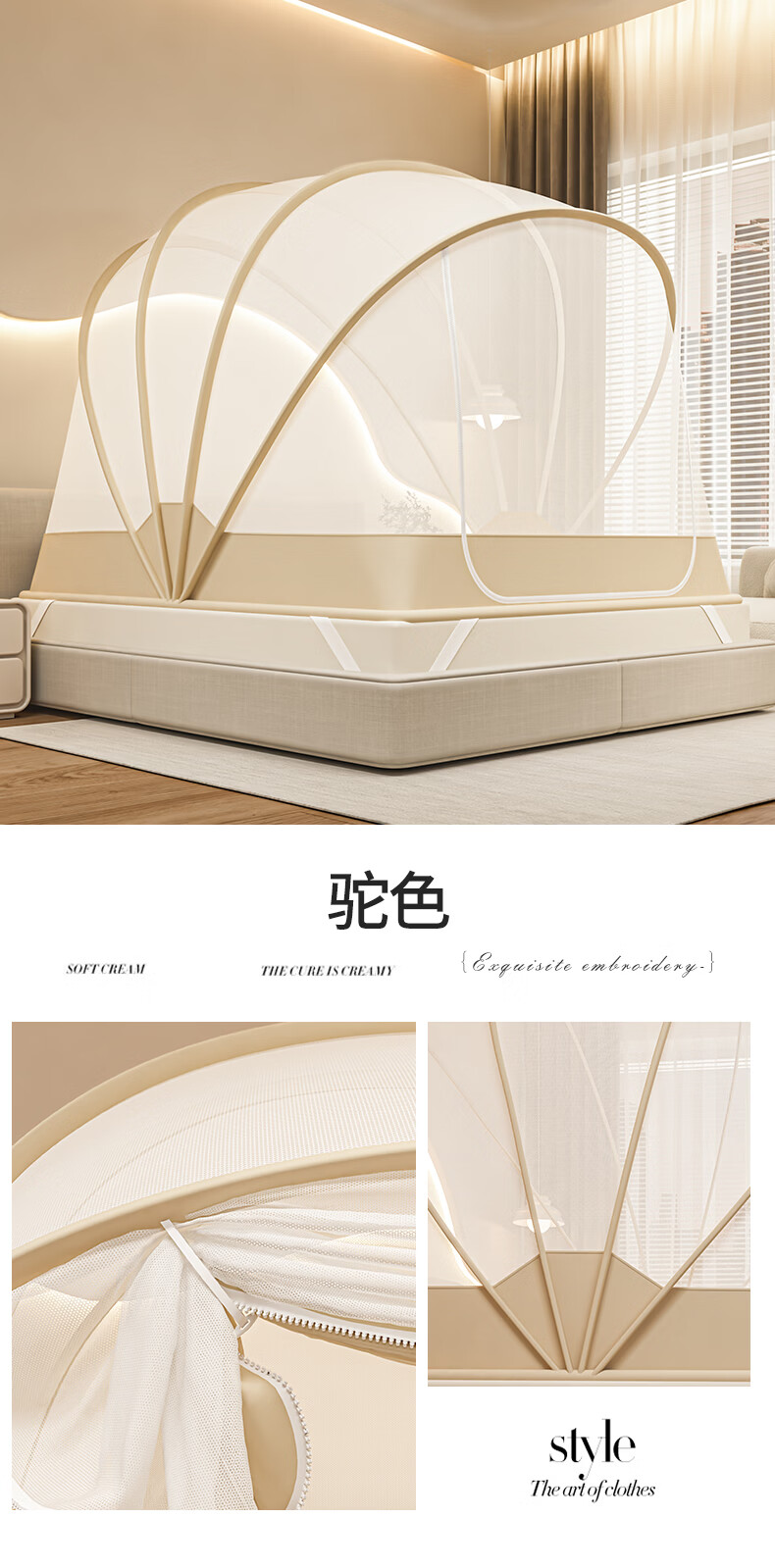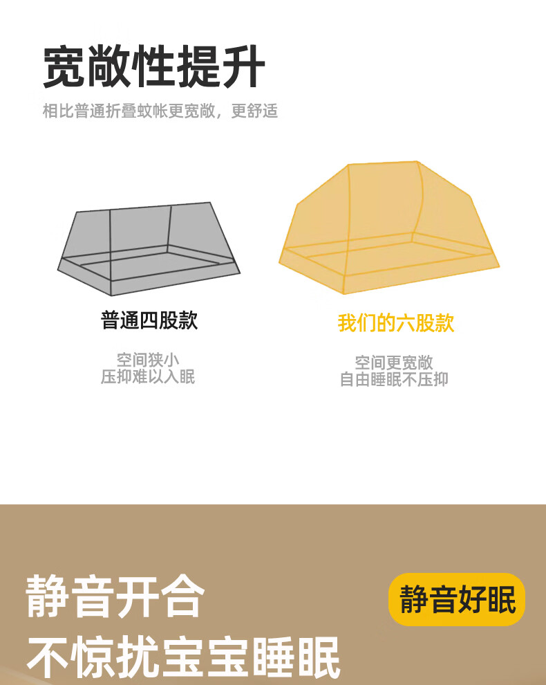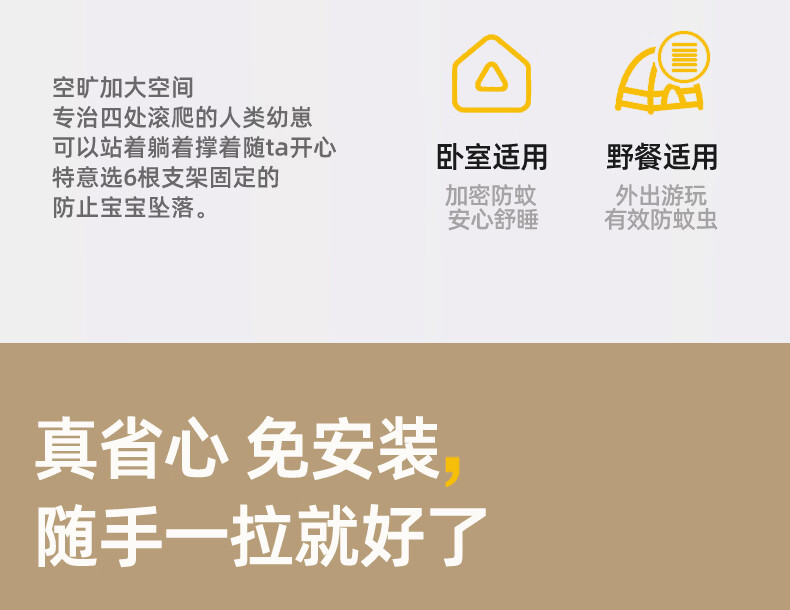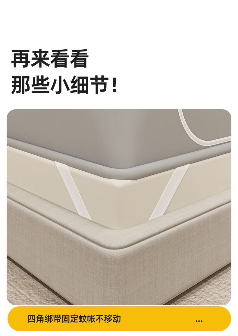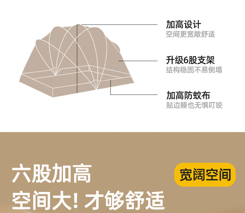 无印良品防摔蚊帐1.8x2米家用一体式免安装防蚊儿童防掉卧室全包底三开门 米色【防蚊防摔 一体式免安装】 200cm*180cm*170cm 适用于1.8米床【一体式免安装支架】