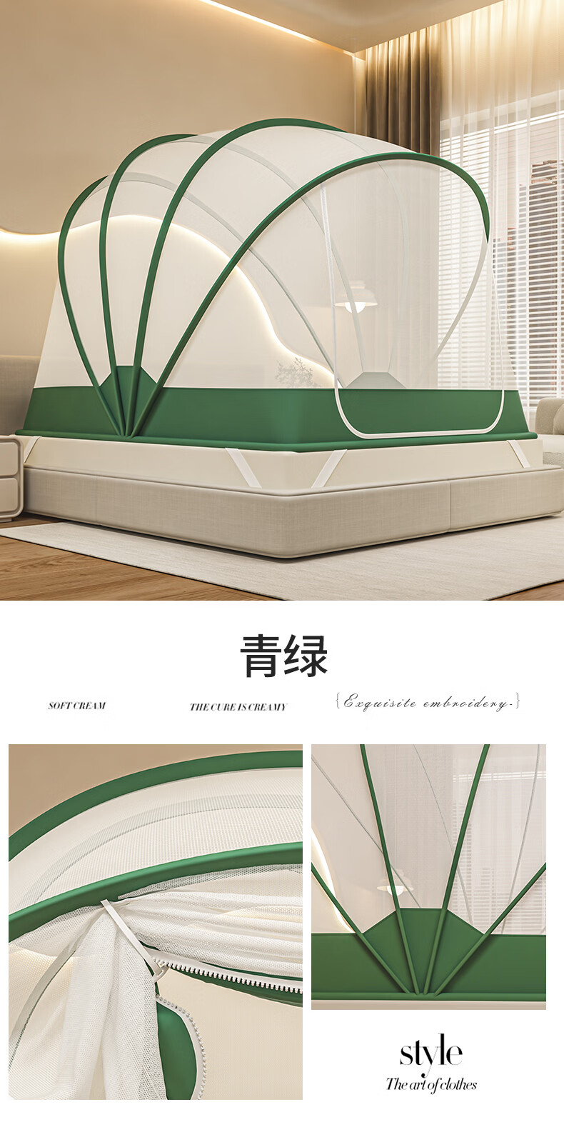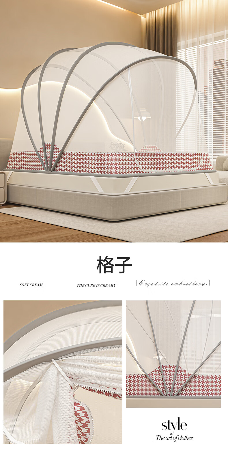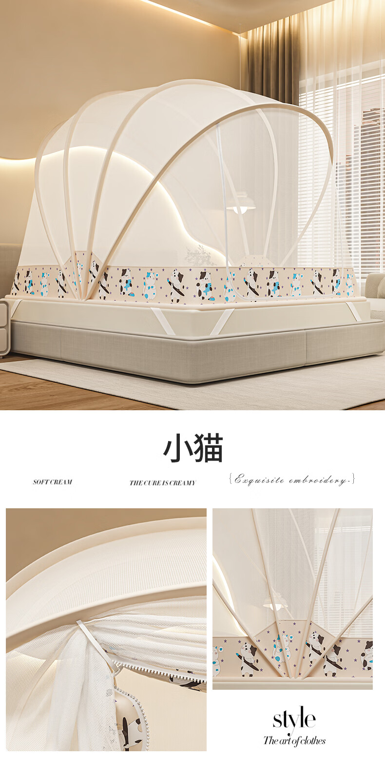 无印良品防摔蚊帐1.8x2米家用一体式免安装防蚊儿童防掉卧室全包底三开门 米色【防蚊防摔 一体式免安装】 200cm*180cm*170cm 适用于1.8米床【一体式免安装支架】