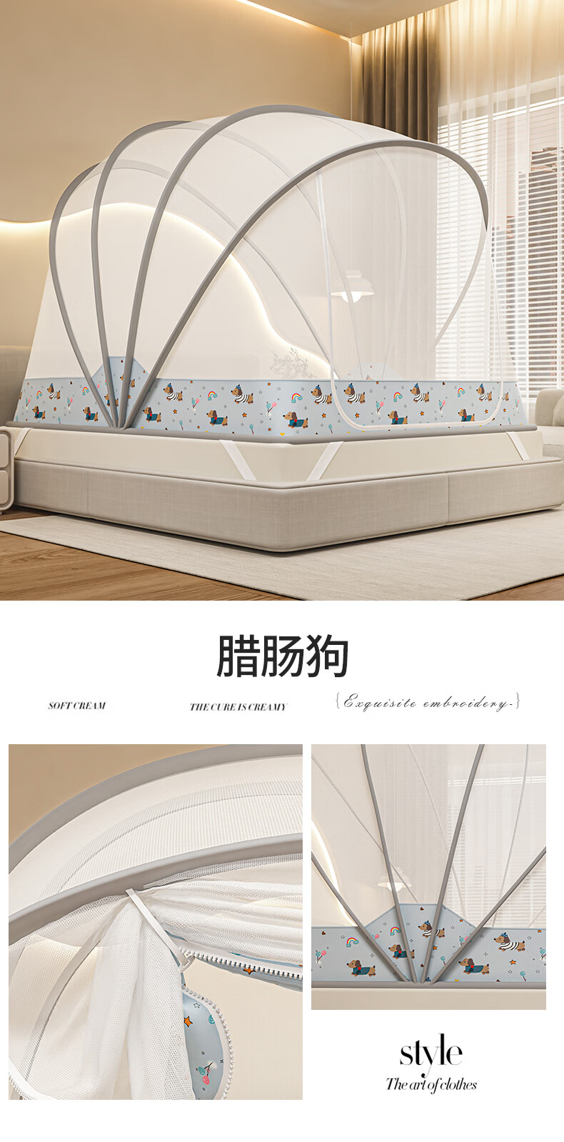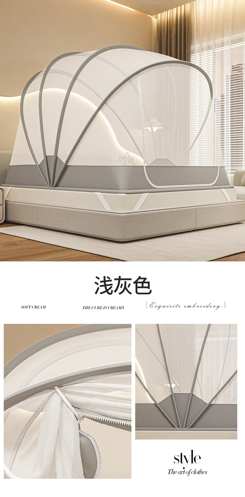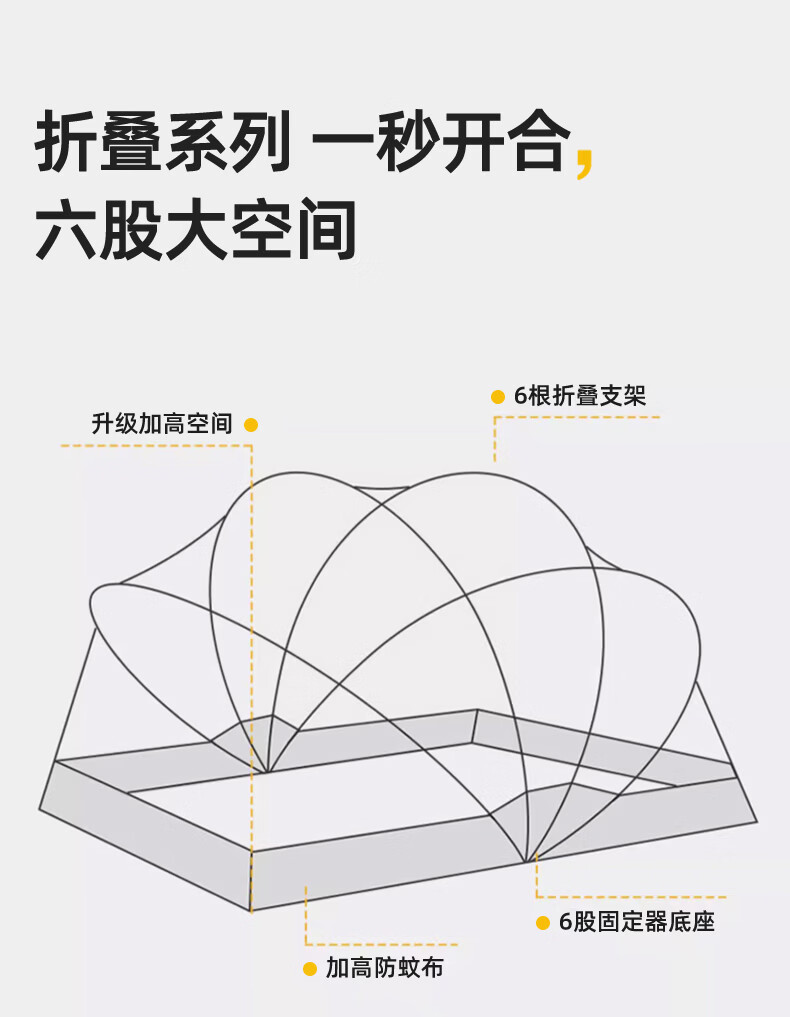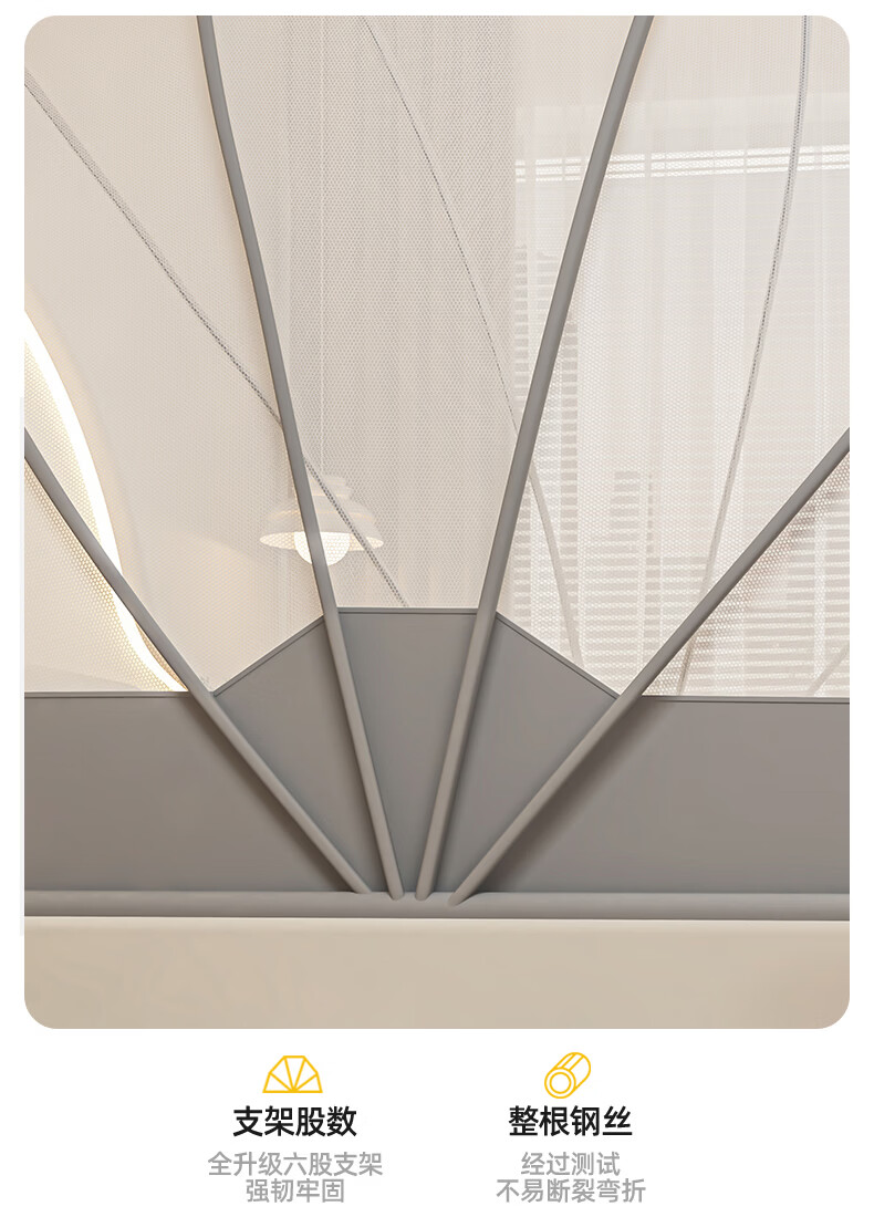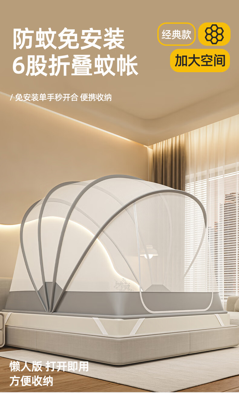 无印良品蒙古包蚊帐免安装可折叠1.5米x2米家用全包围婴儿童防摔防蚊蚊帐 浅灰色【2026升级免安装款】 135cm*190cm*150cm 适用1.5m床