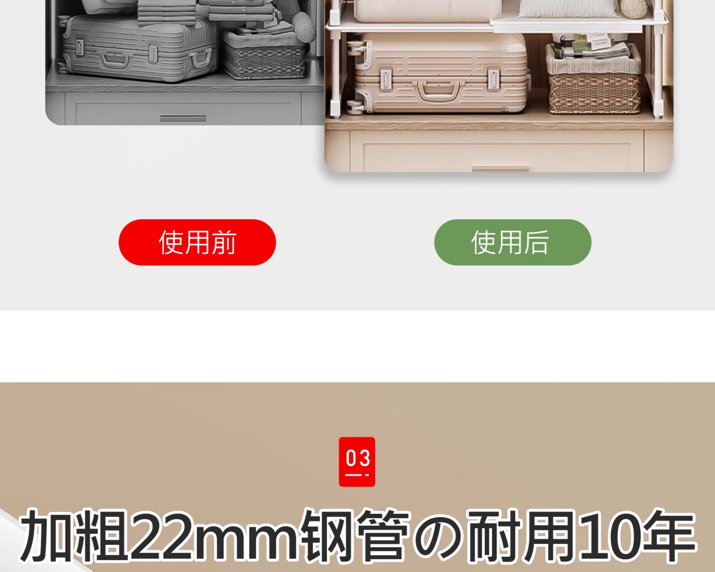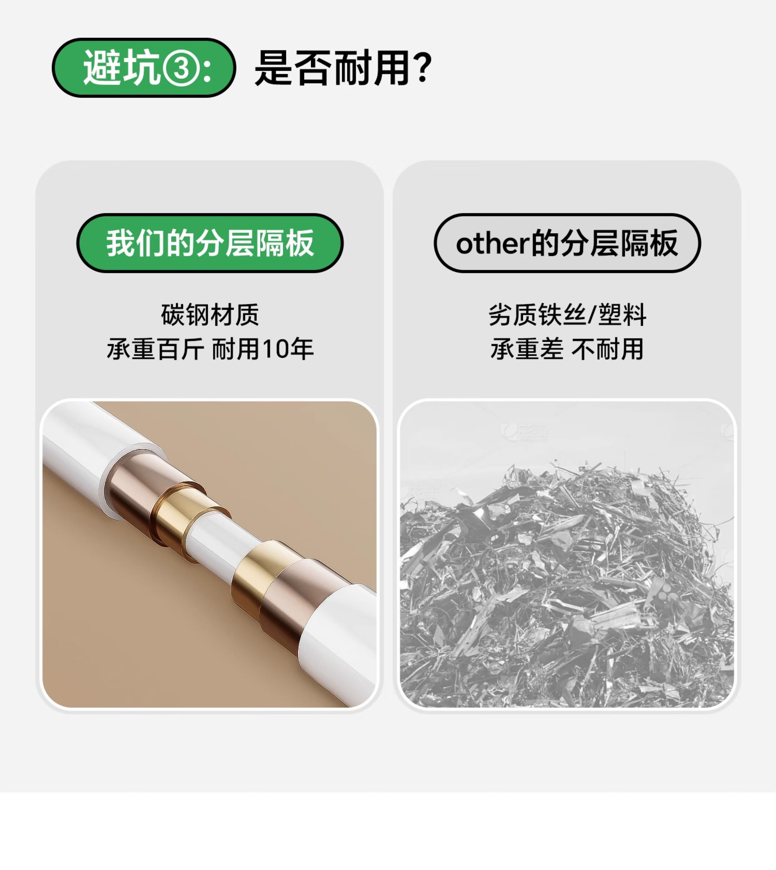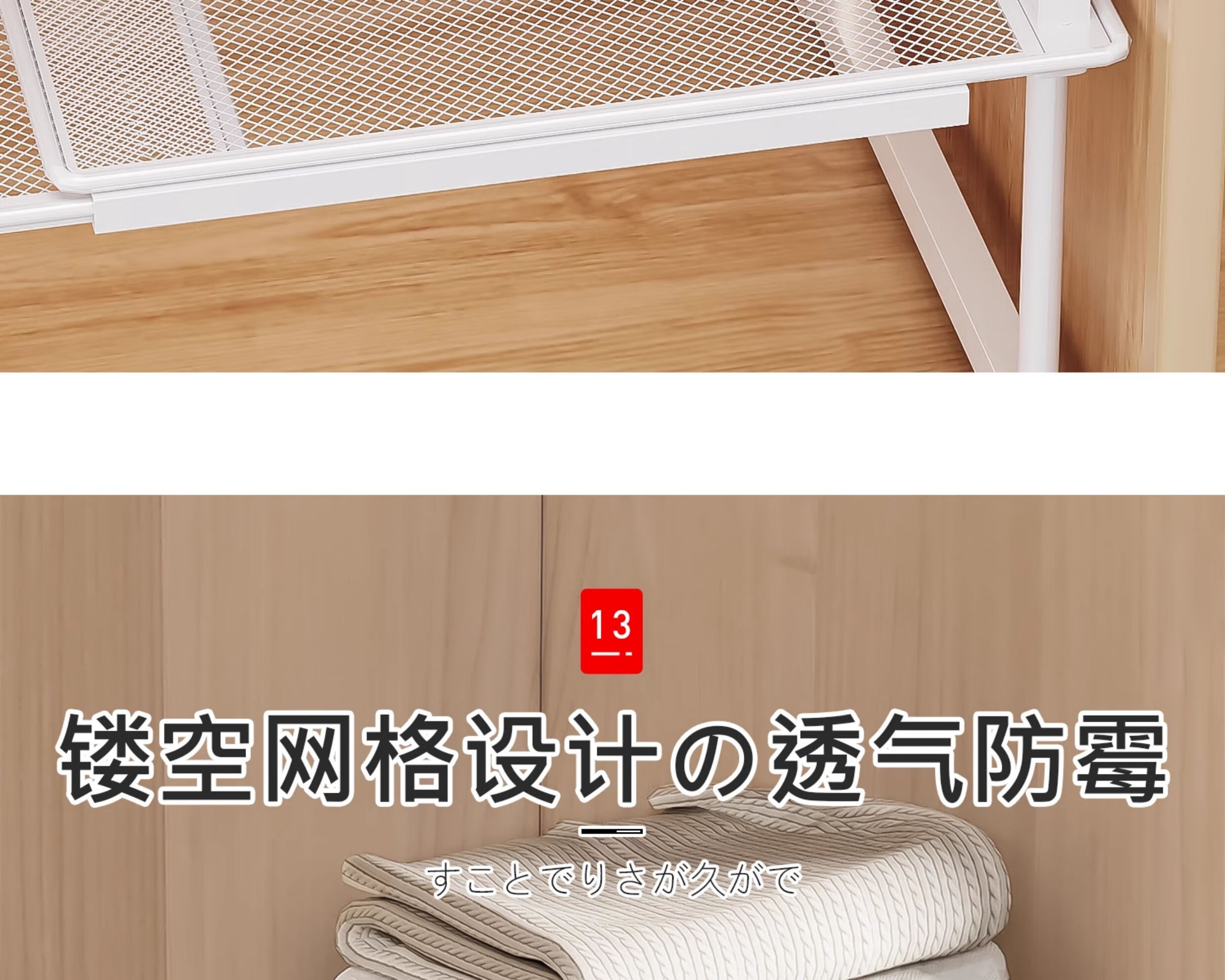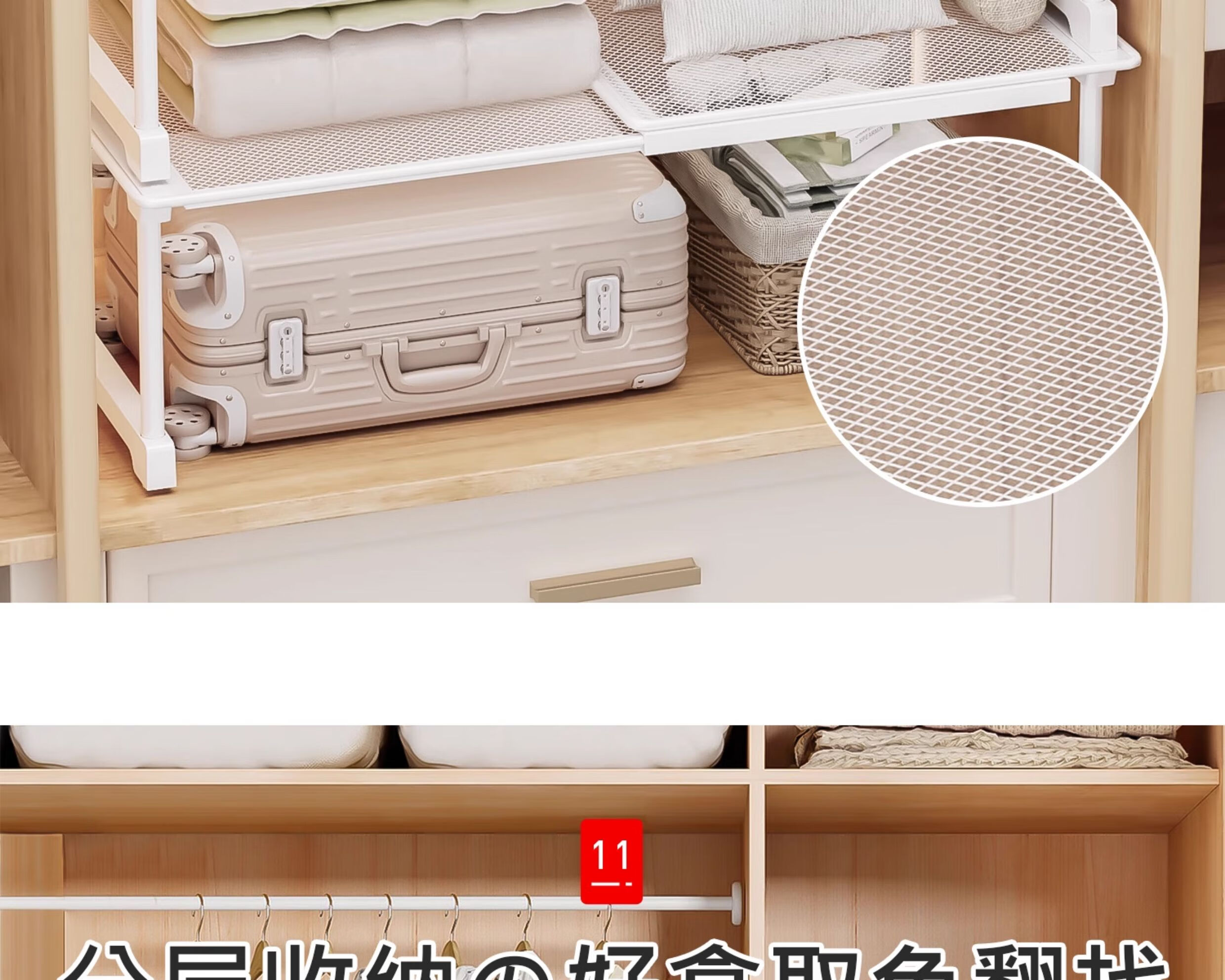 尔思家衣柜分层隔板家用收纳神器柜子里置物架橱柜内隔断铁艺原木架子 白架原木40*45*30cm