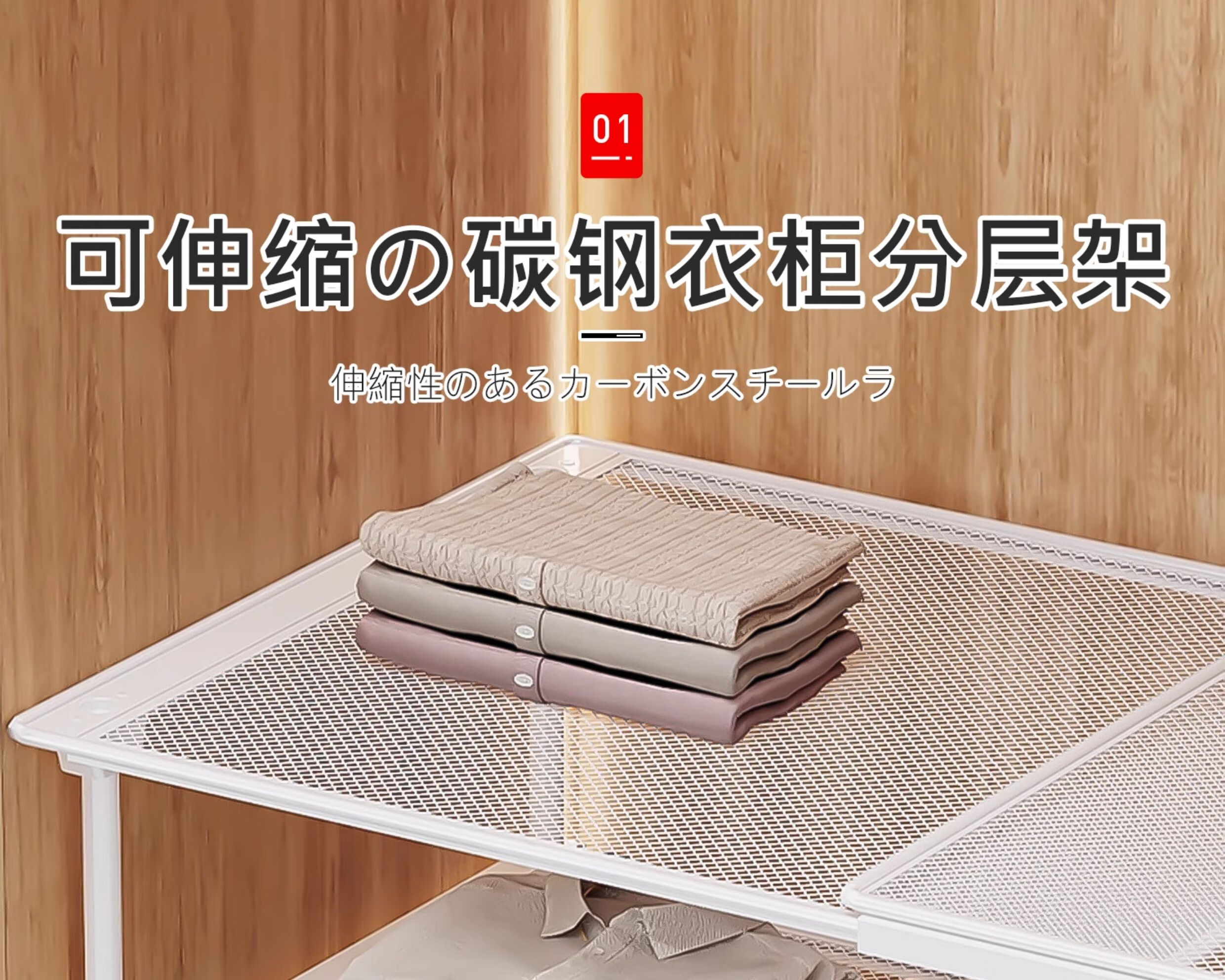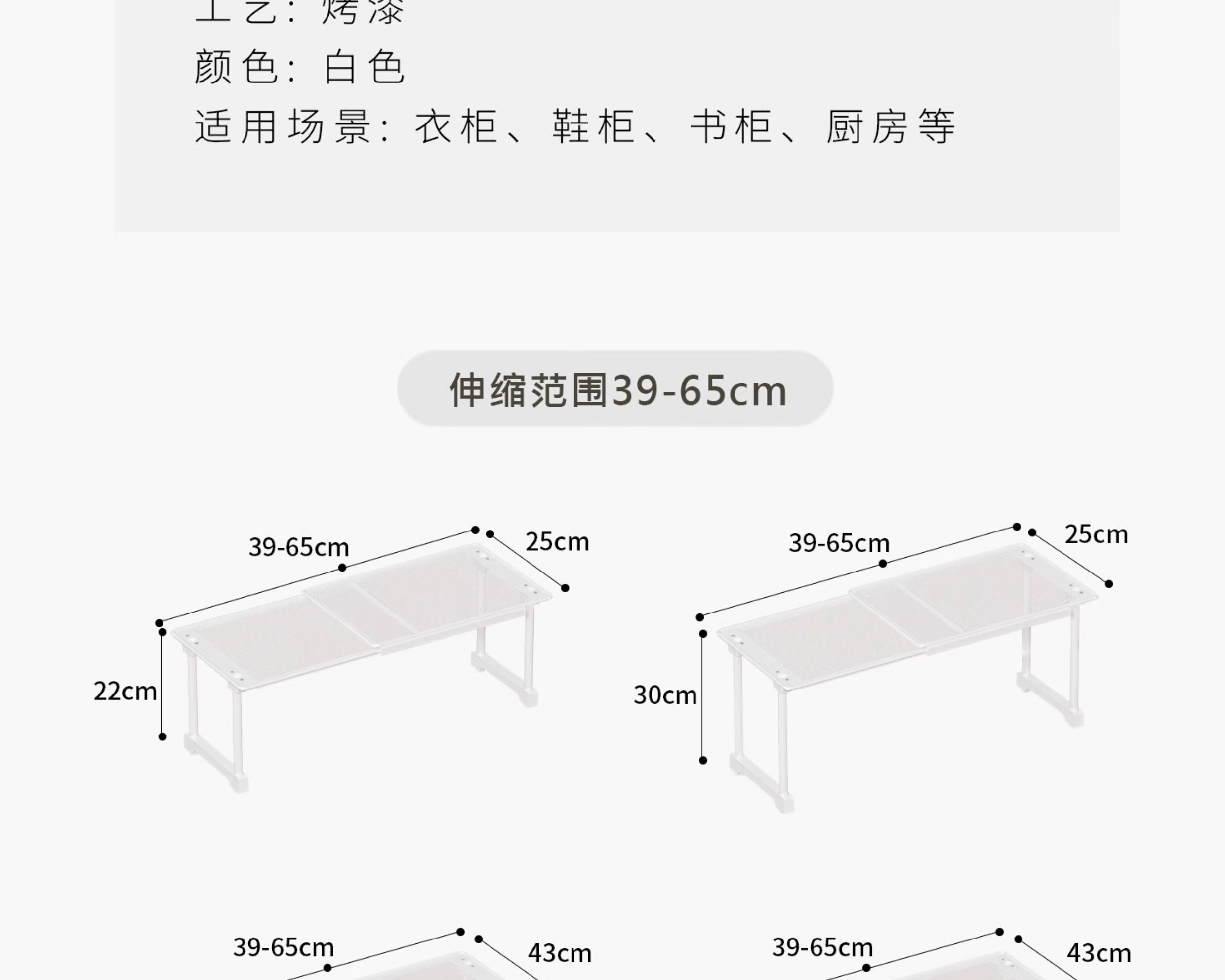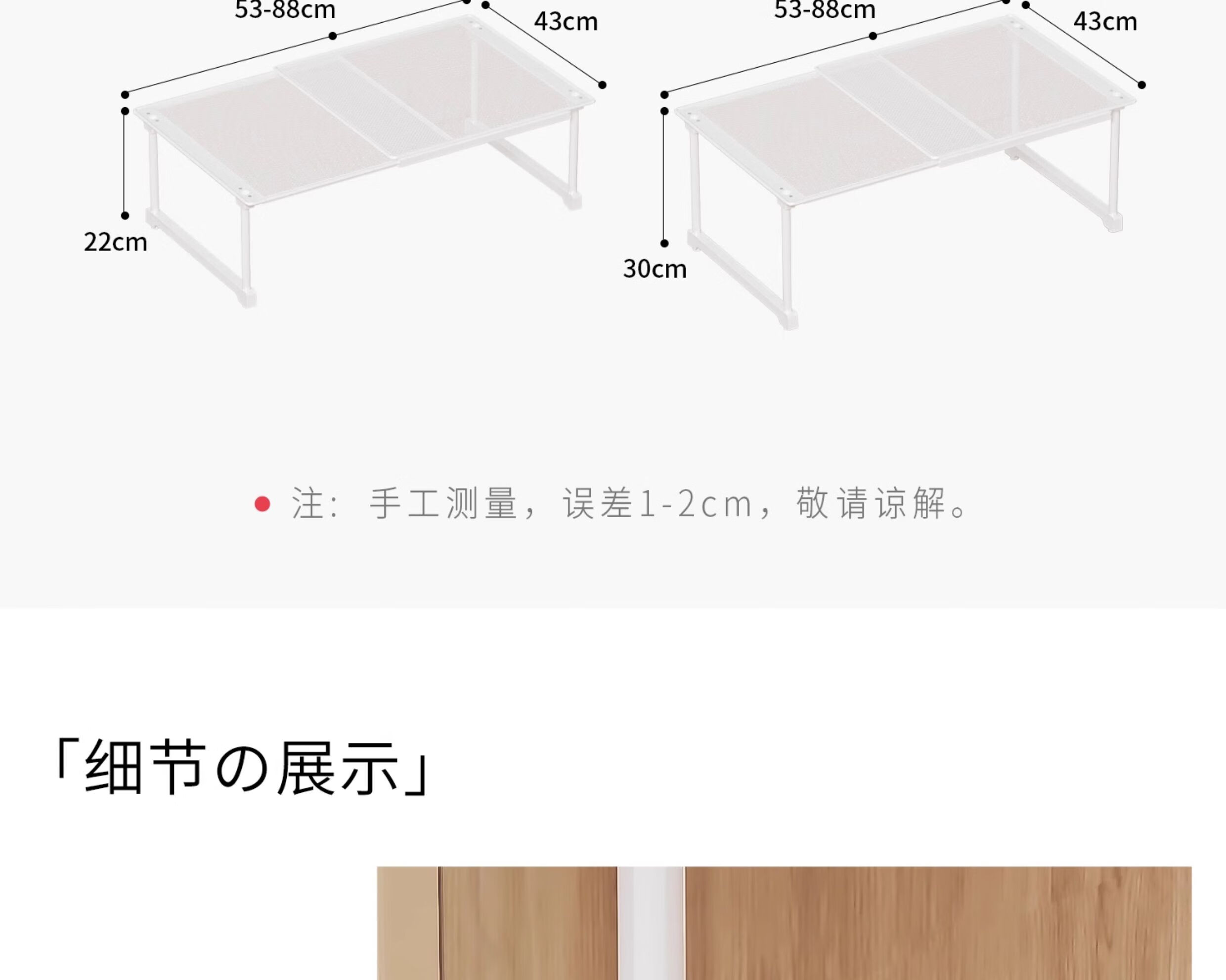 吱凡日本衣柜分层隔板柜子分层架可伸缩收纳神器橱柜鞋柜分格置物架子 【可伸缩53-88】宽43*高22 1层