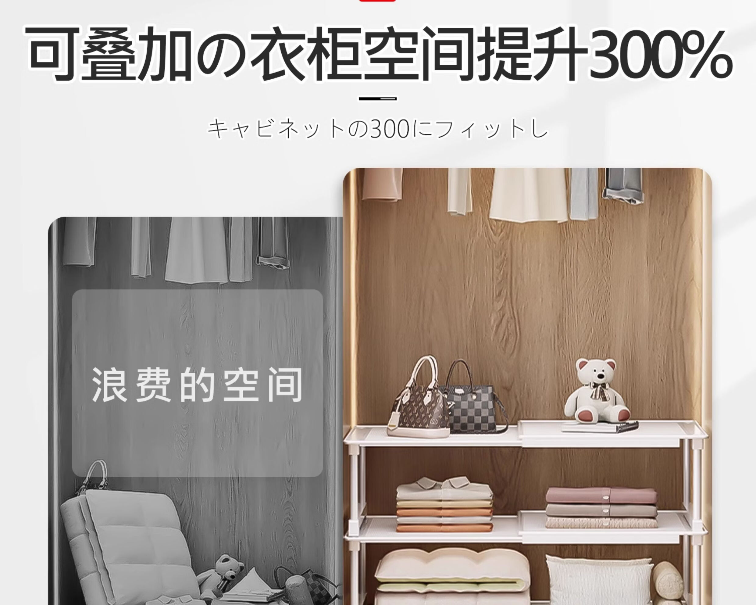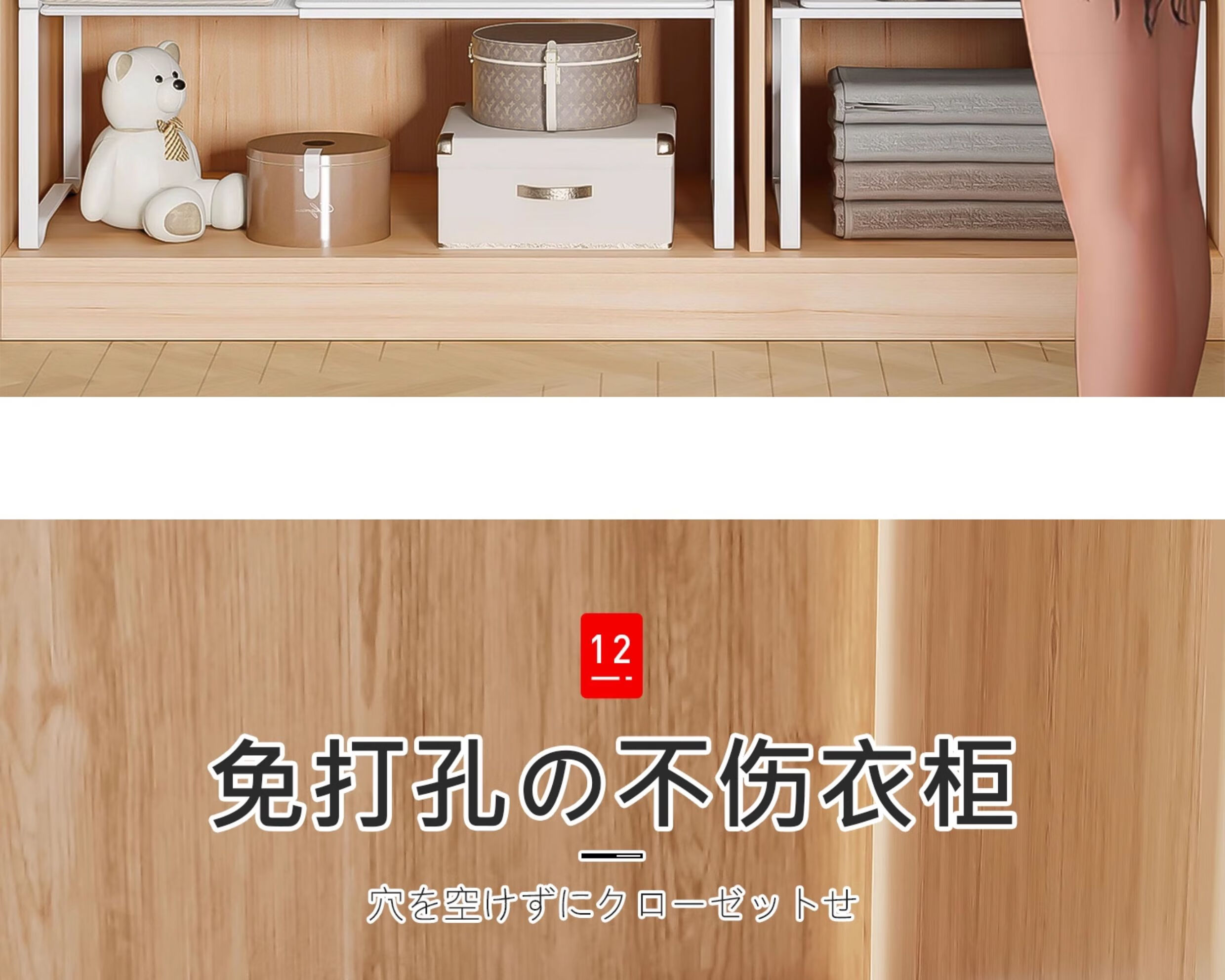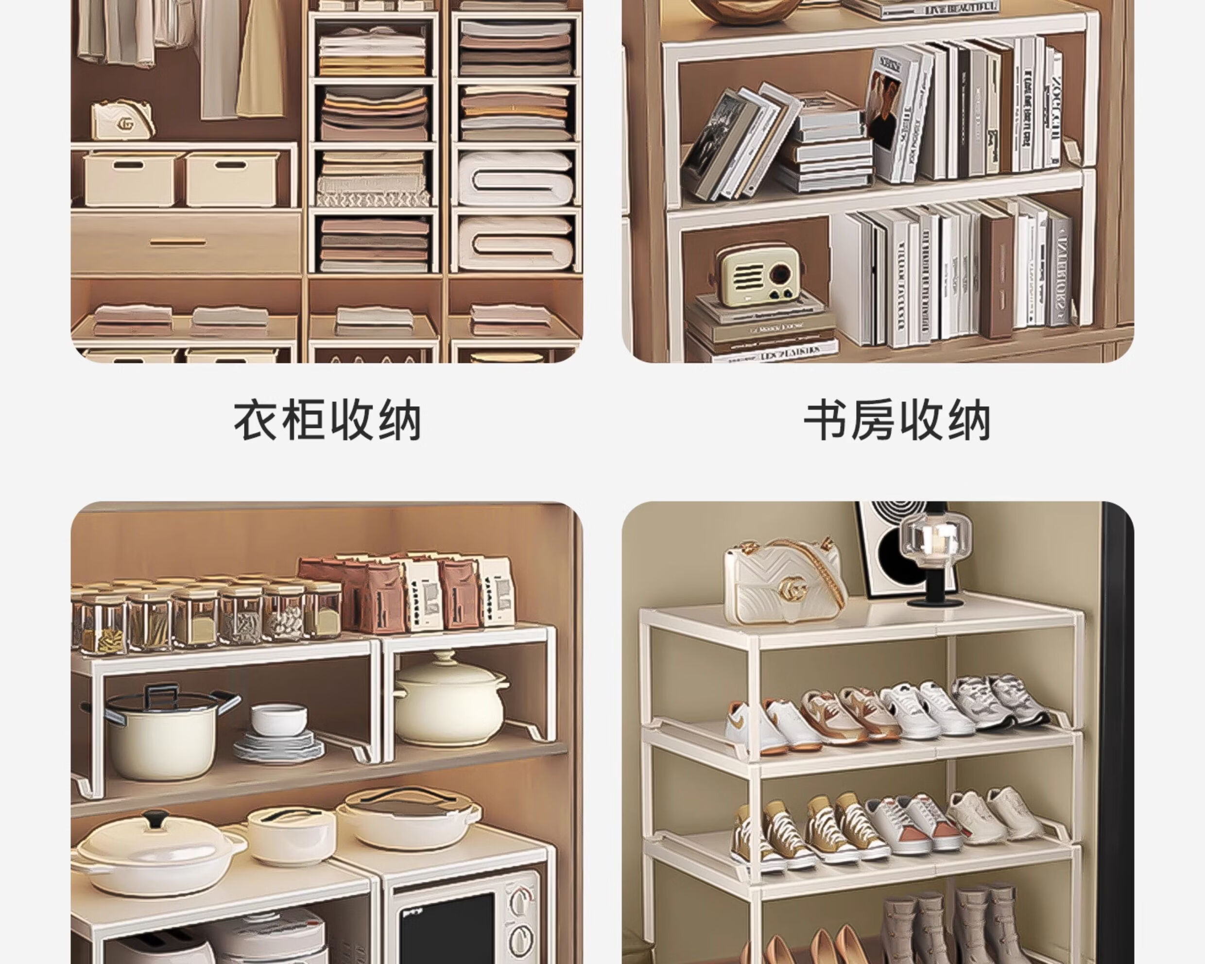吱凡日本衣柜分层隔板柜子分层架可伸缩收纳神器橱柜鞋柜分格置物架子 【可伸缩53-88】宽43*高22 1层