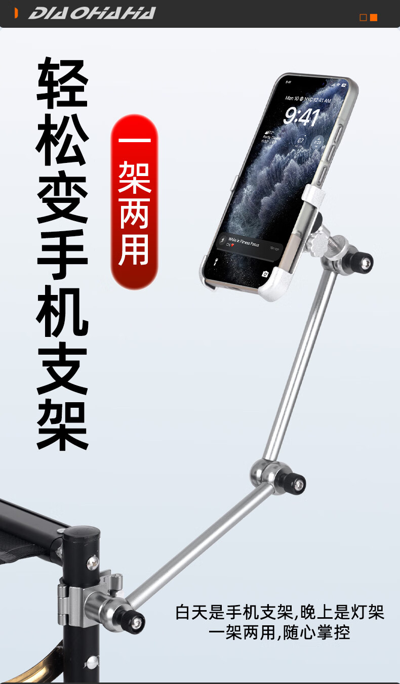 钓哈哈(Diaohaha)钓椅灯架手机支架钓箱手机支架户外垂钓装备一架多用方便收纳携带 【钓箱款】灯架手机支架