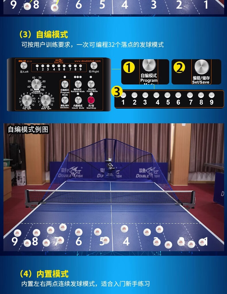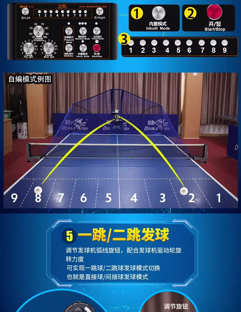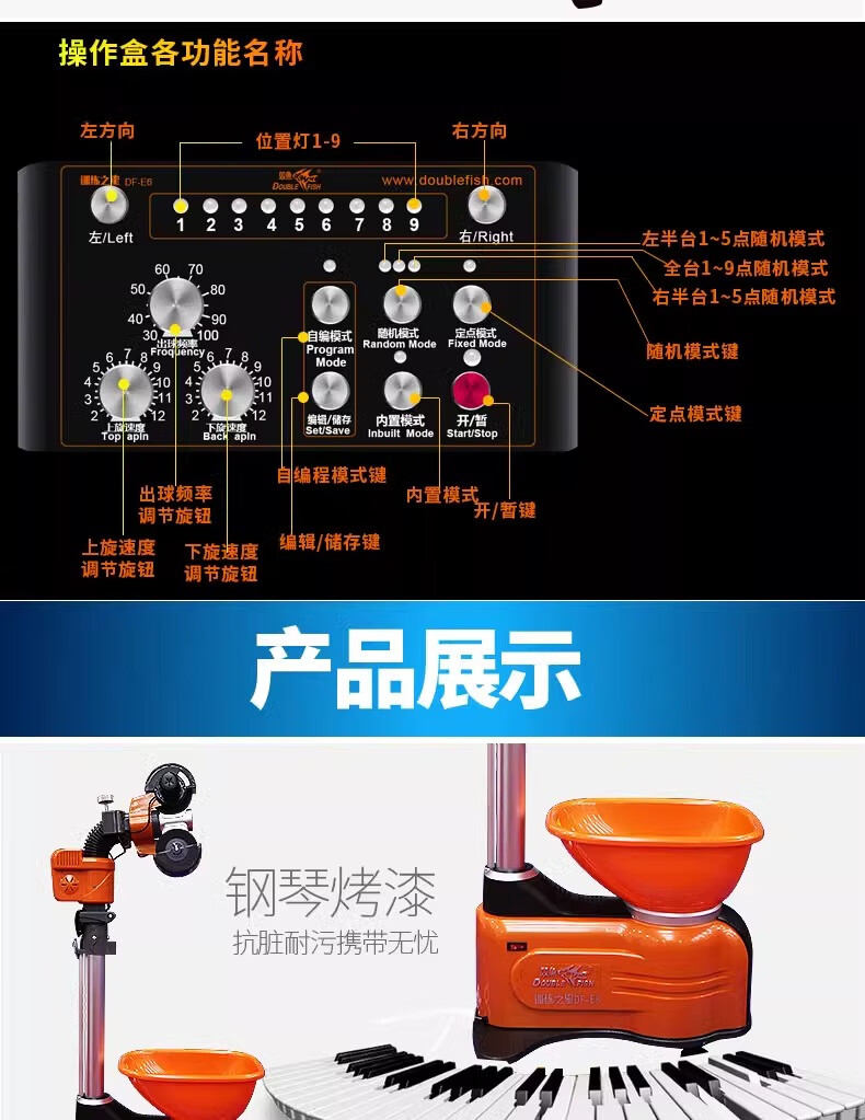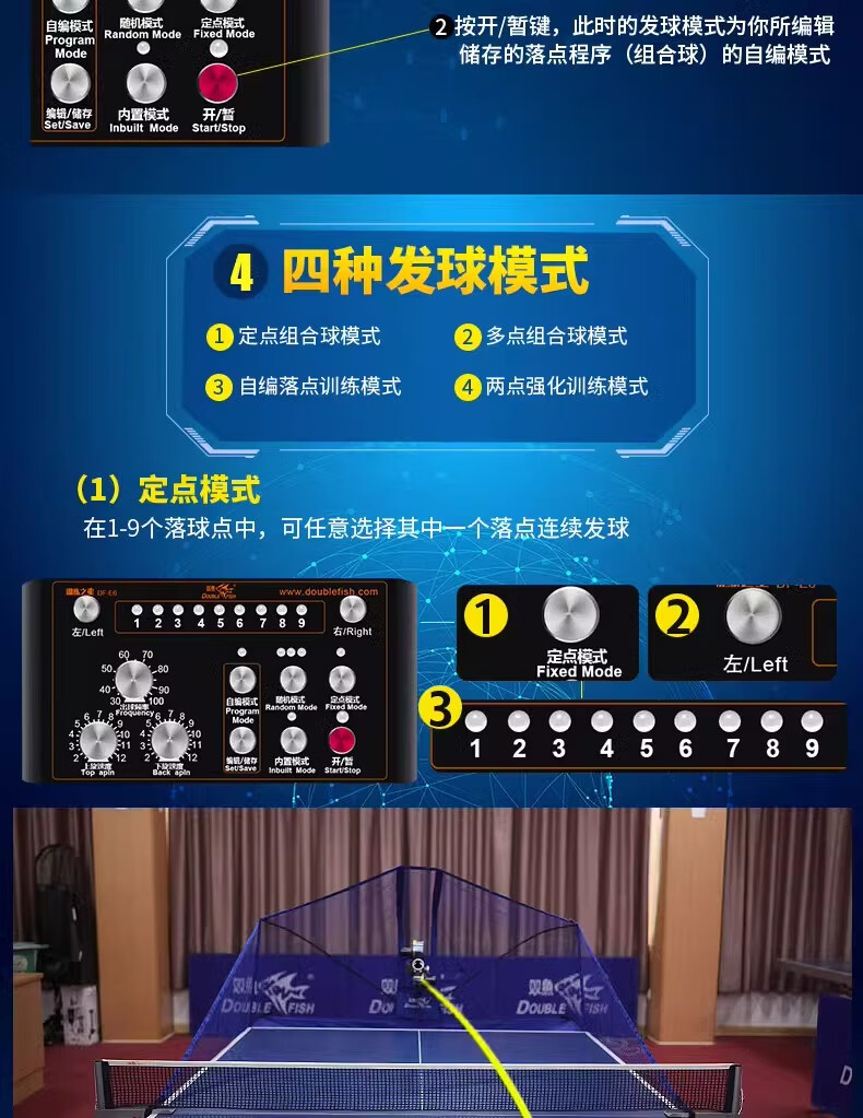 双鱼(DOUBLE FISH)E6乒乓球发球机家用自动落地式智能初学级发球器乒乓球训练器 双鱼发球机【E6训练之星落地式】送100个球+集球网
