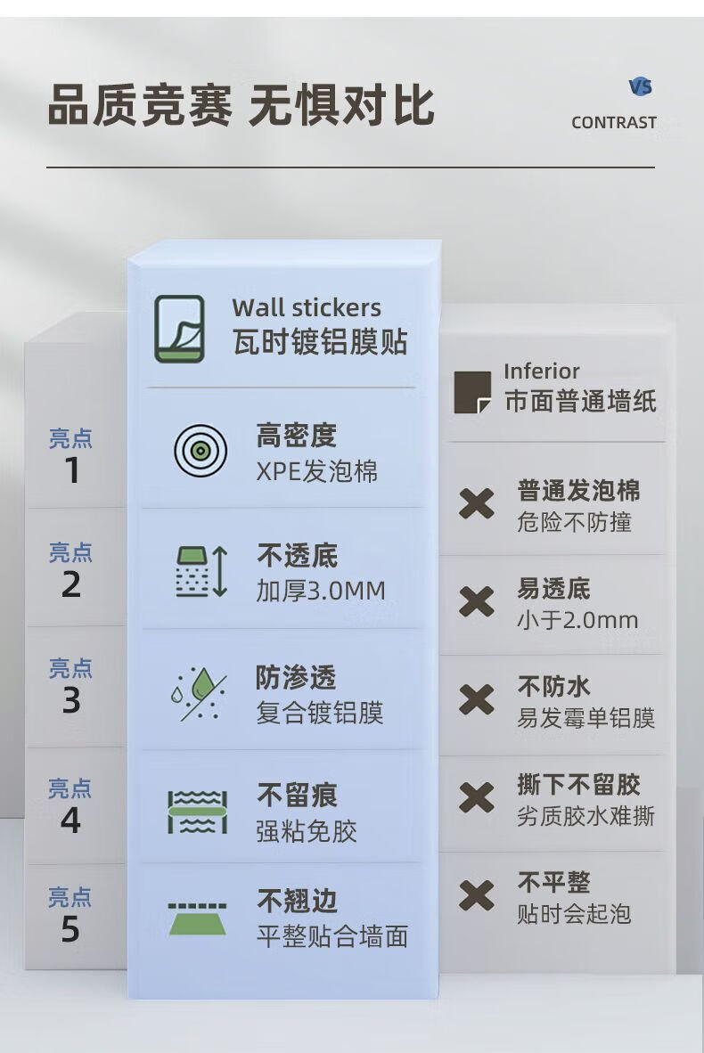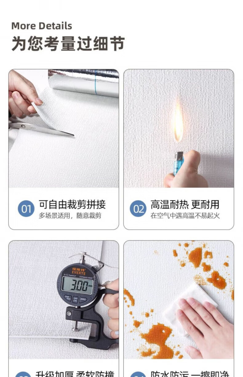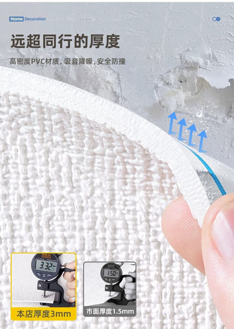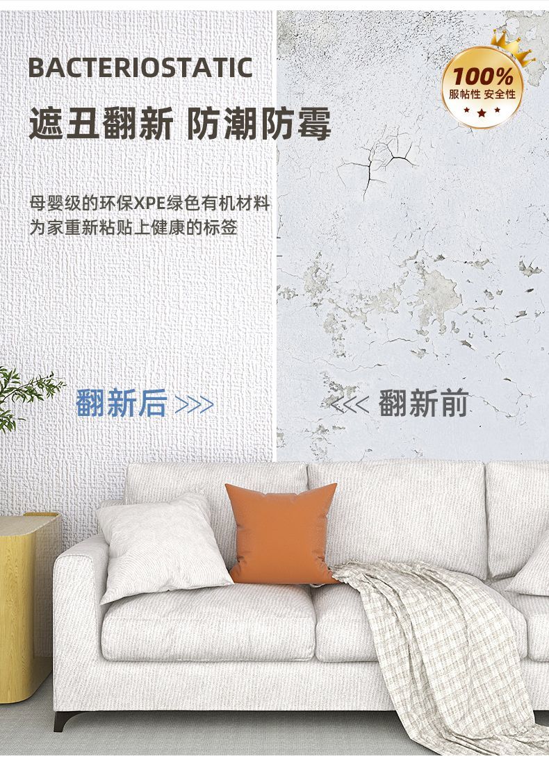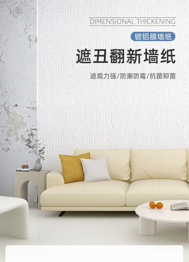 DEATKN德国高端掉灰墙专用遮丑装饰墙纸自粘防水防潮墙壁贴纸宿舍家 白色[50cm宽*长5米]厚3MM母婴专