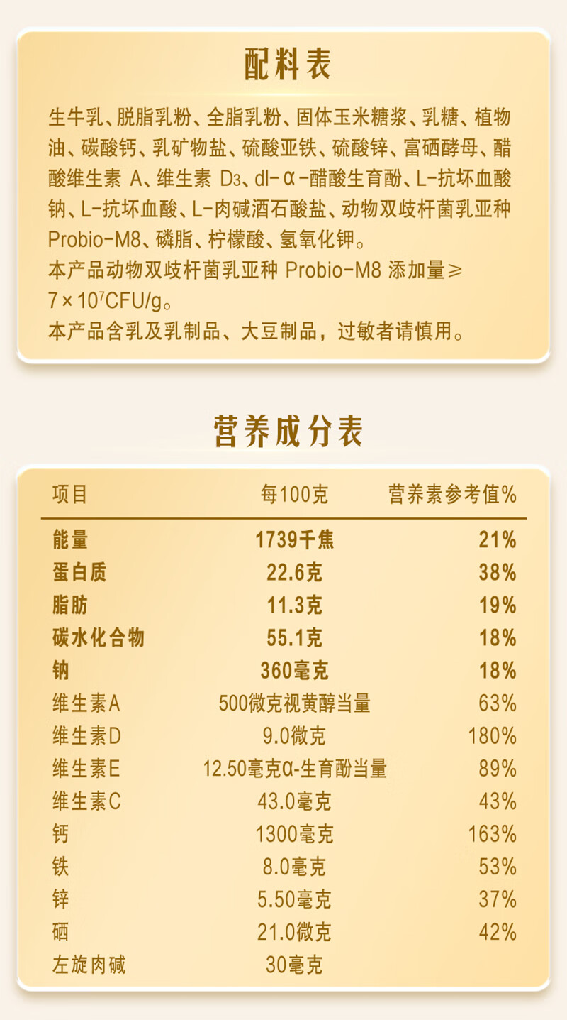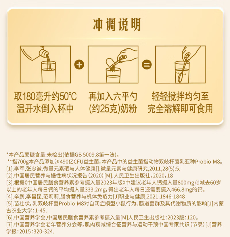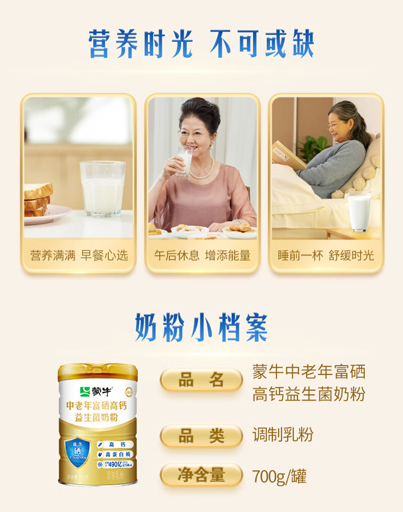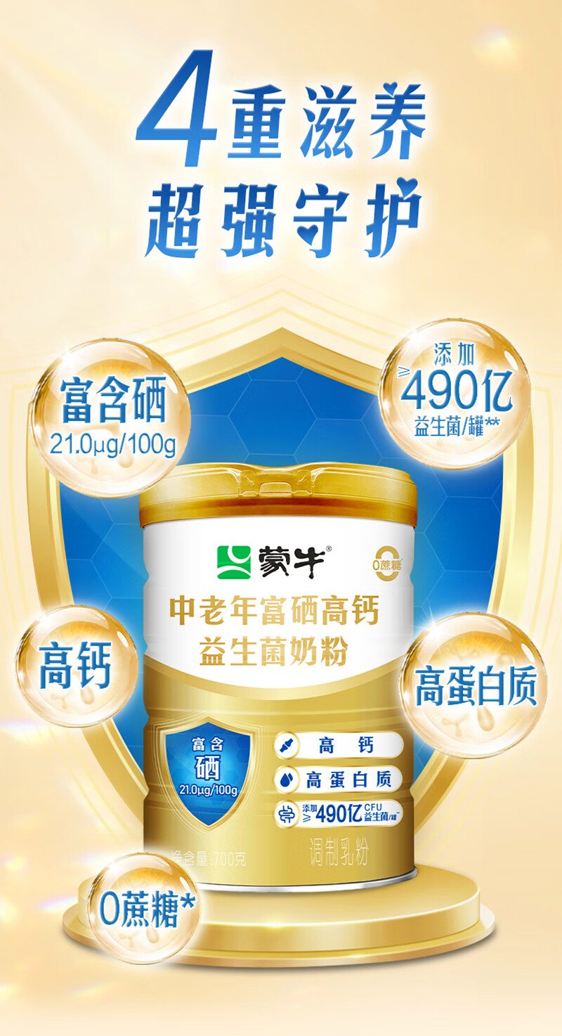 蒙牛中老年富硒高钙益生菌奶粉700g增强营养 老人老年人奶粉免疫0蔗糖