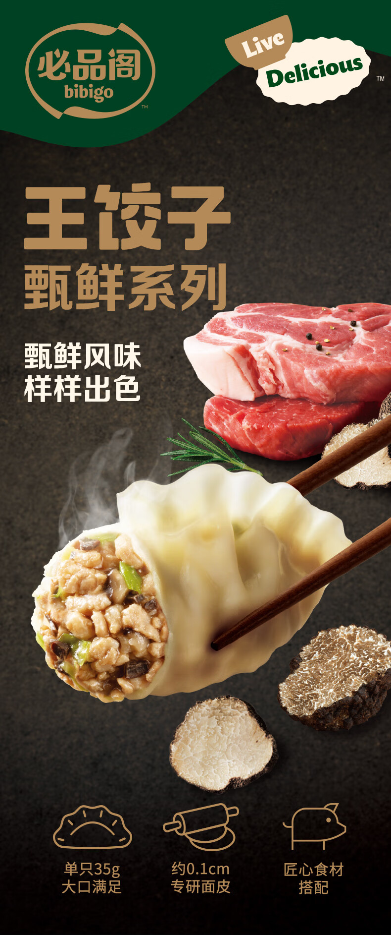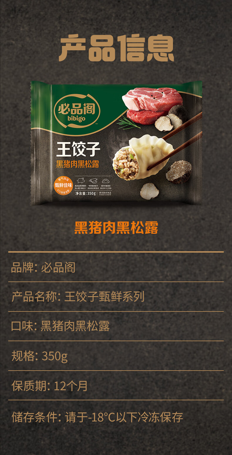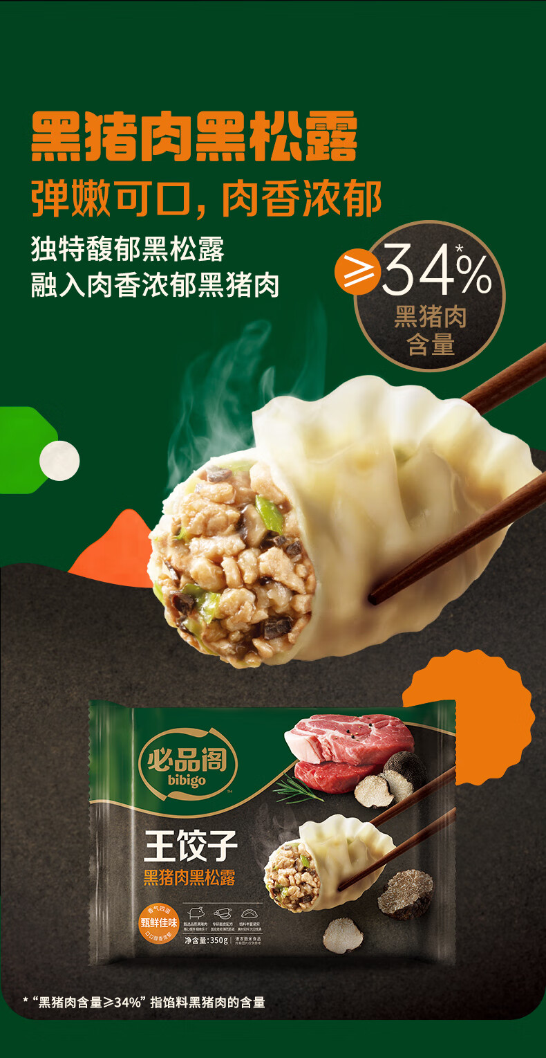 必品阁王饺子 黑猪肉黑松露350g/袋 10只装 早餐夜宵 生鲜速食 煎饺锅贴