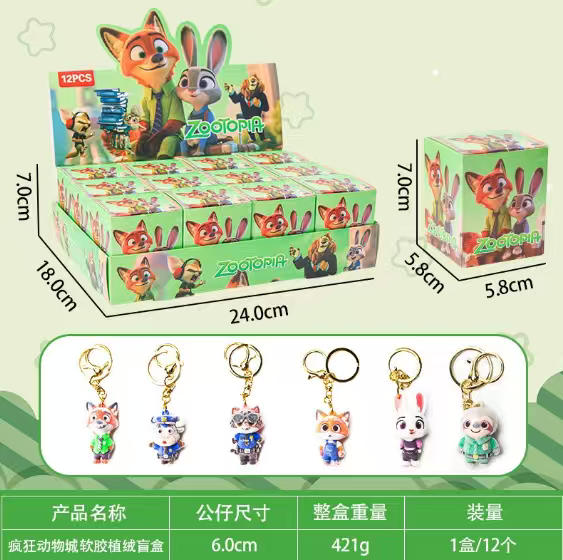 公仔挂件疯狂动物城钥匙扣摩托车电瓶车装饰新款挂件 软胶款小公仔 2个
