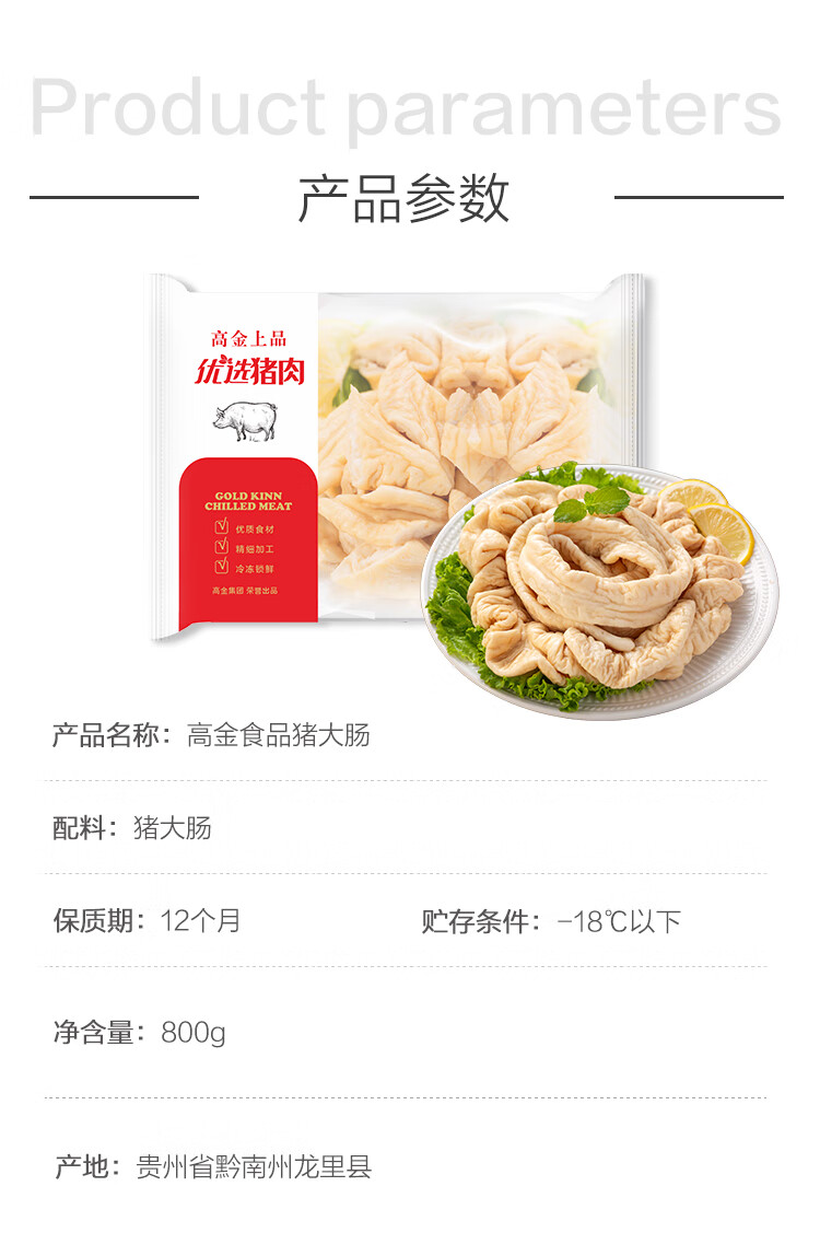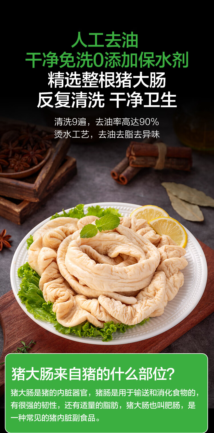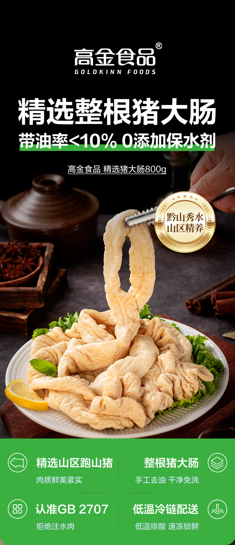 高金食品猪大肠净重1.6斤贵州跑山猪肥肠酱卤火锅食材0添加保水剂原切肥肠