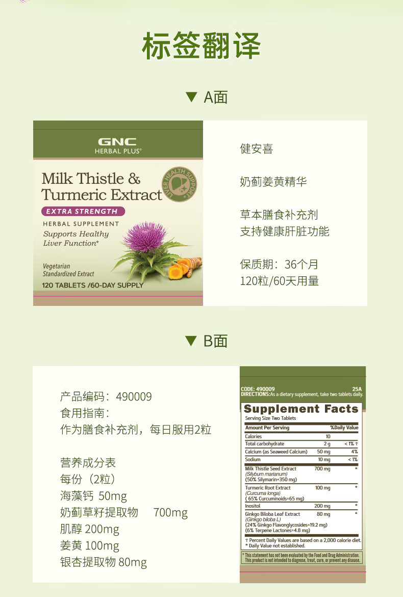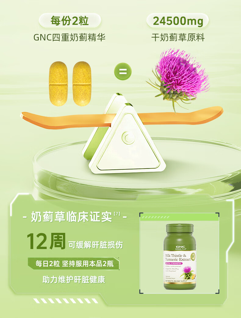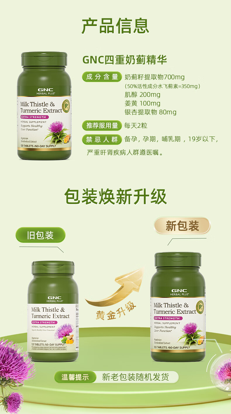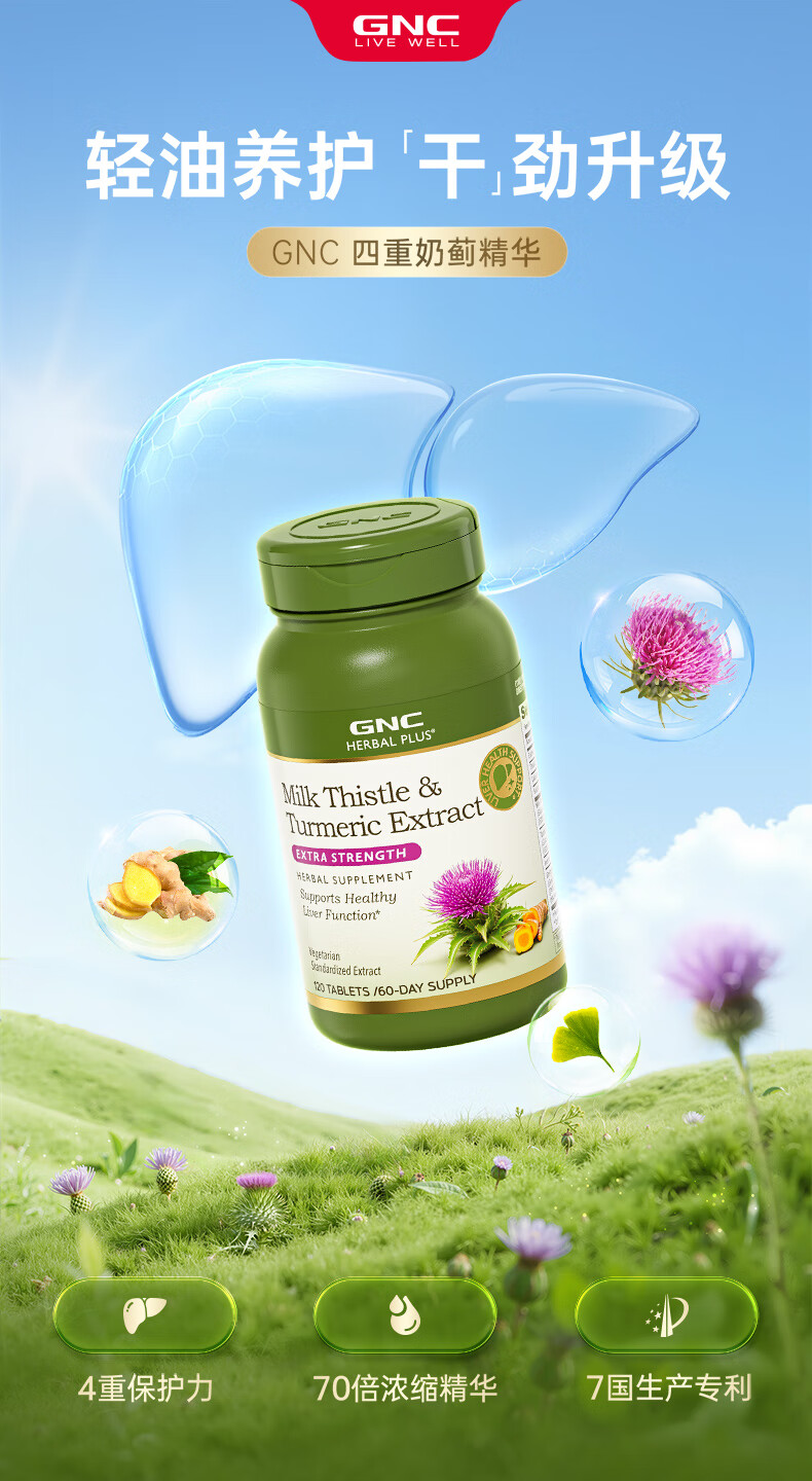 GNC健安喜 奶蓟精华片 护肝片肝肾养护改善脂肪肝加班烟酒熬夜常备 【基础款】护肝片650mg*120粒
