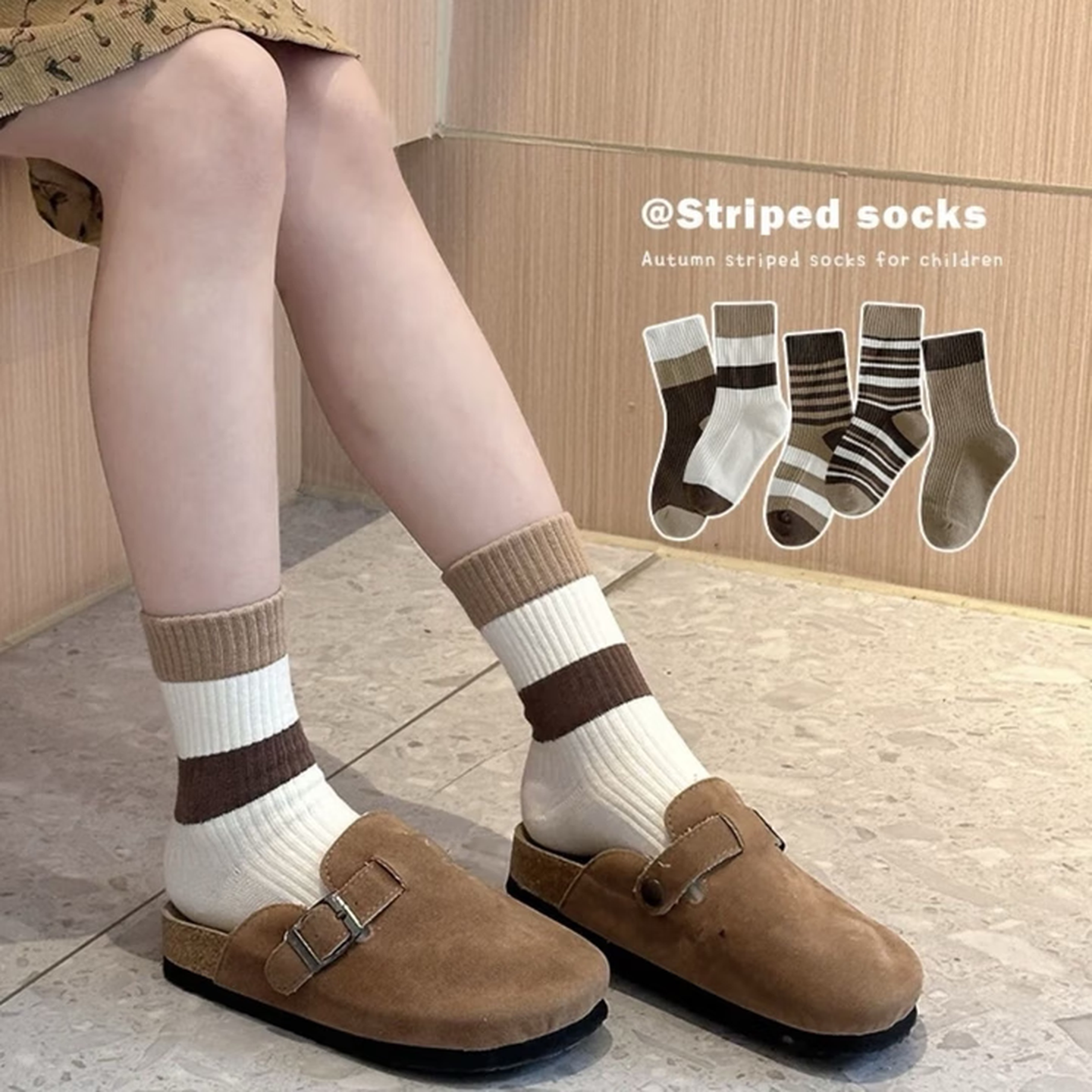 袜子女中筒袜秋冬款日系复古条纹堆堆袜美拉德风长筒袜 5双