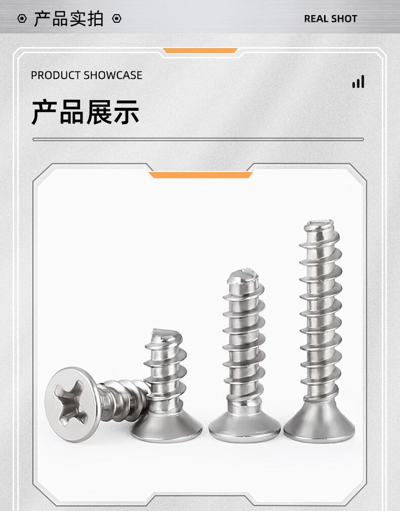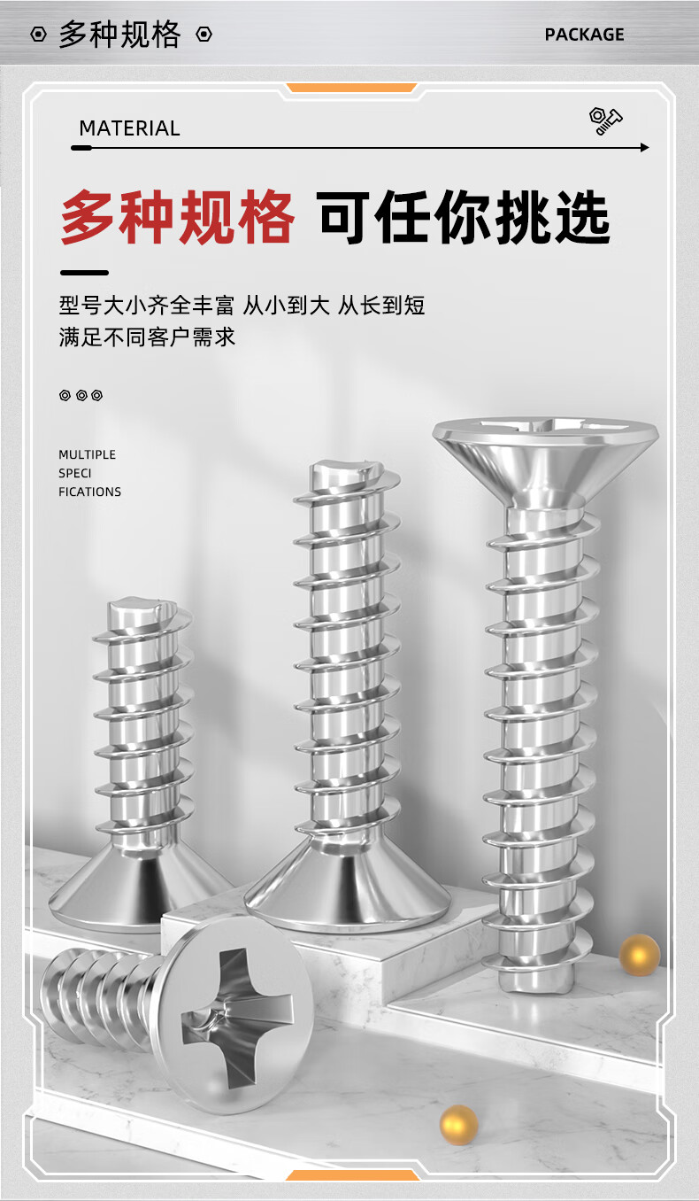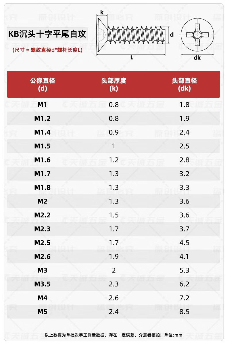 天卓五金KB 304不锈钢十字沉头平尾自攻螺丝平头螺钉M1M1.2M2M2.6M3M4M5mm M1*2-500个