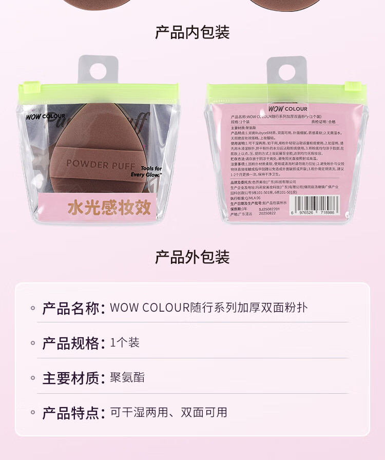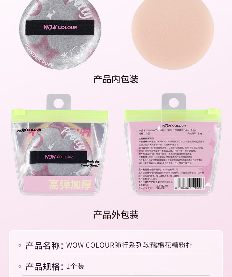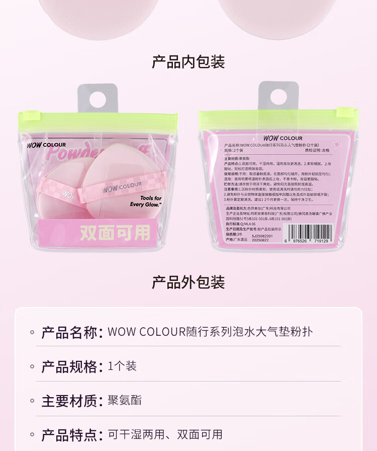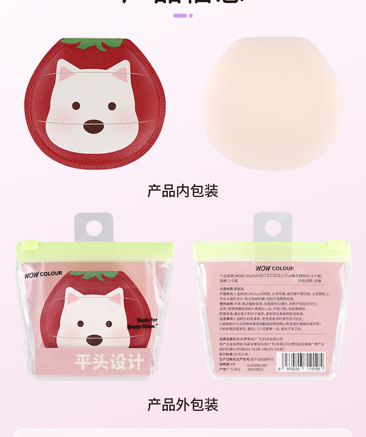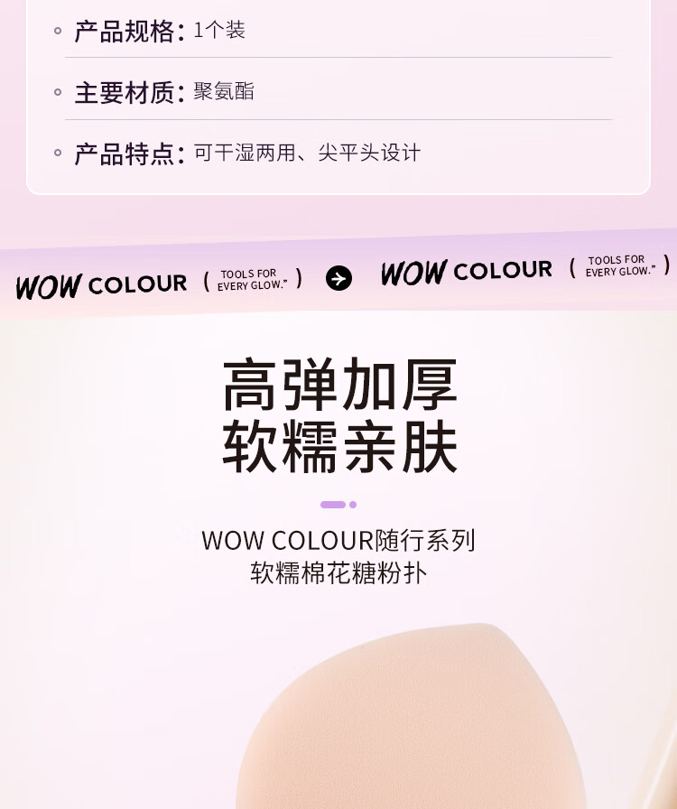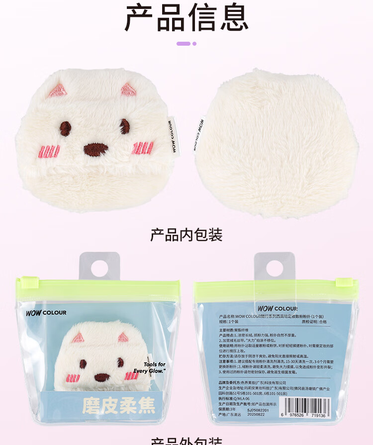 WOWCOLOUR随行系列粉扑气垫粉扑 粉底液上妆工具不易吃粉 干湿两用粉扑 【可干/湿用】西高地平头棉花糖粉扑 1个