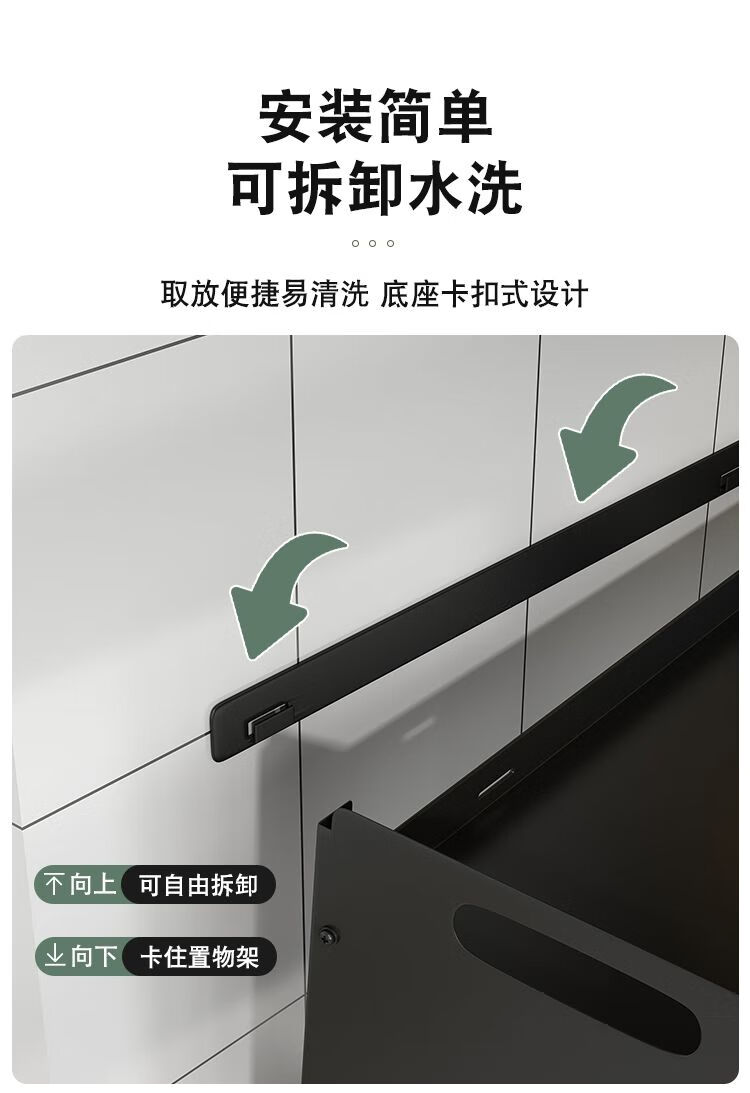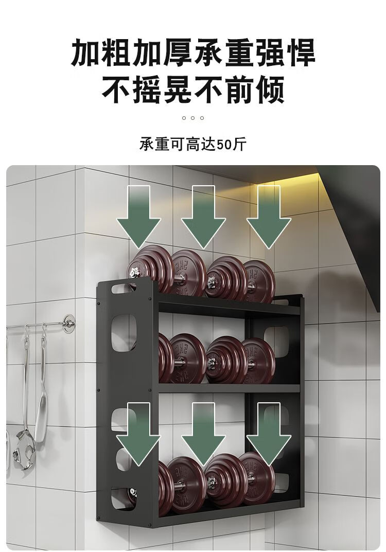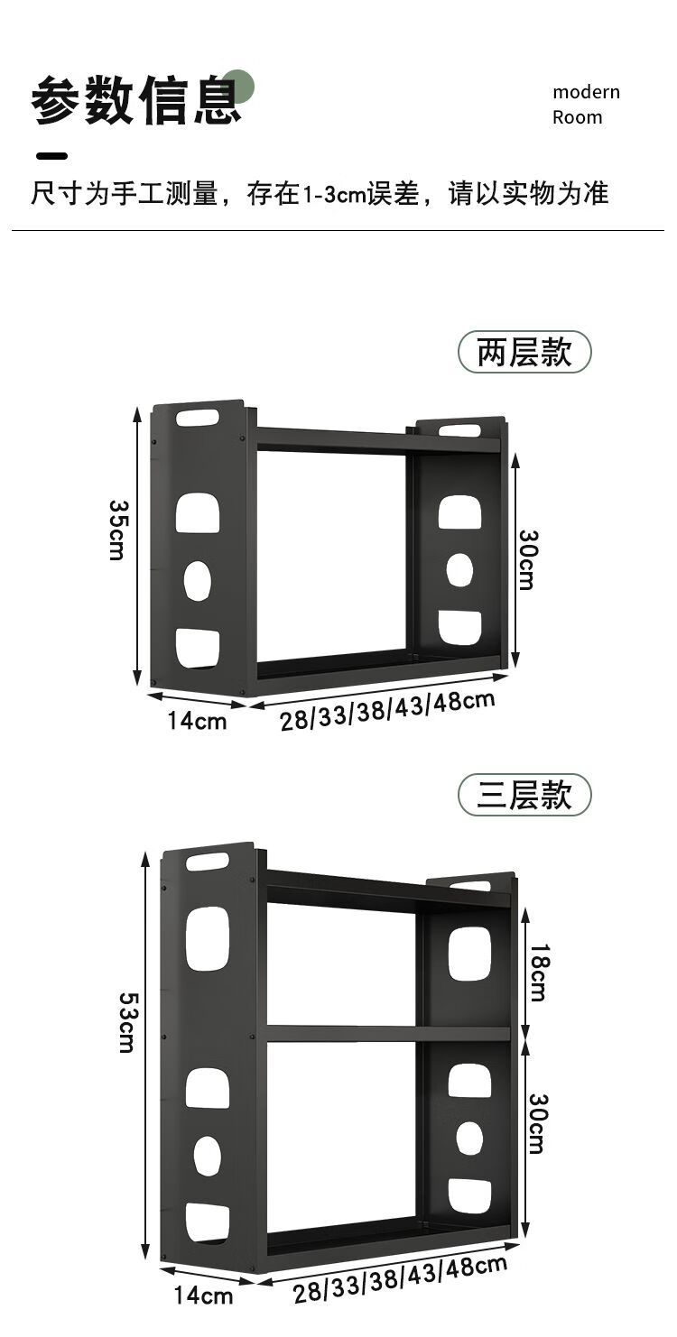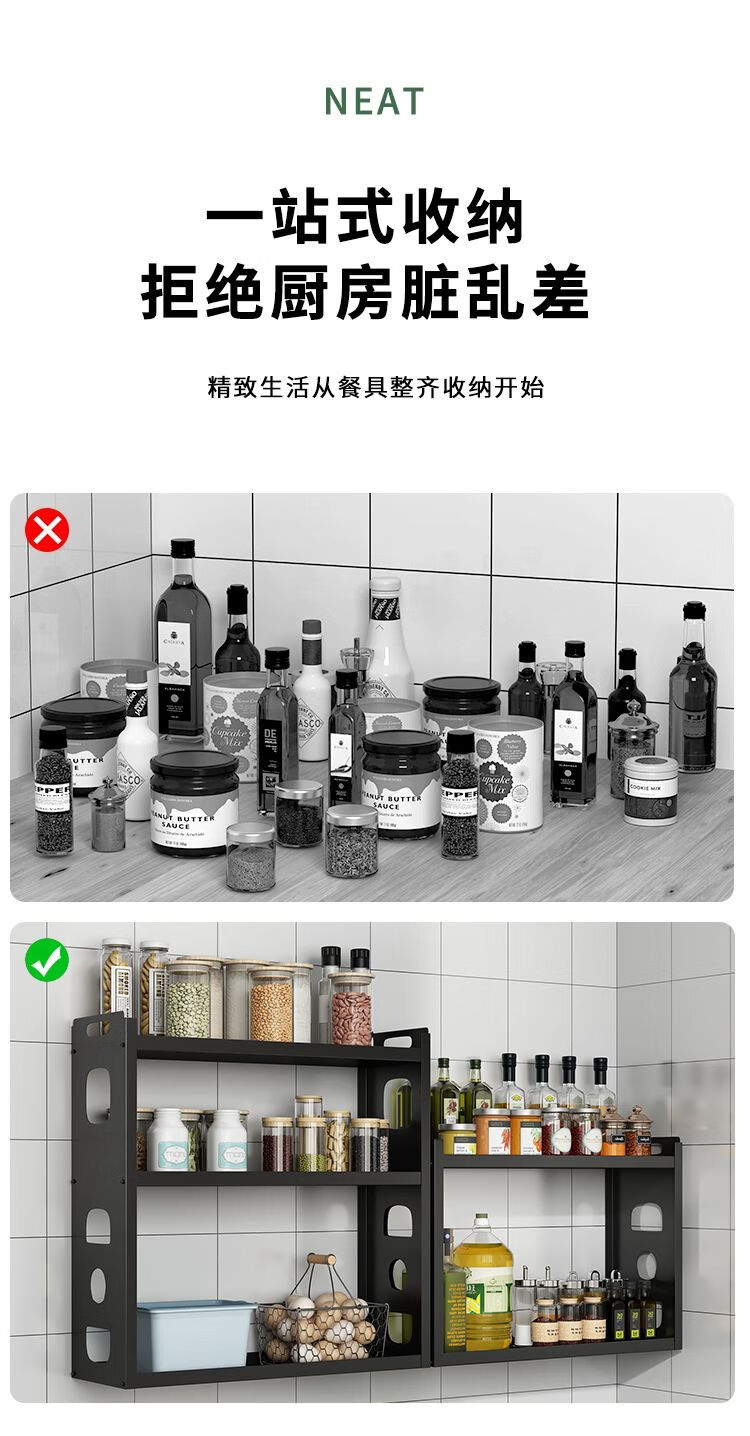 简漾家用厨房置物架壁挂壁挂式多层调料墙上油盐酱醋多功能收纳免打孔 黑色双层【免打孔】 长28【承重40斤】