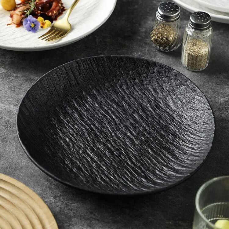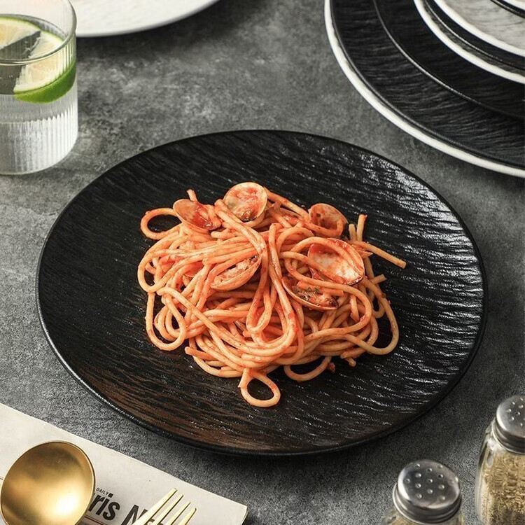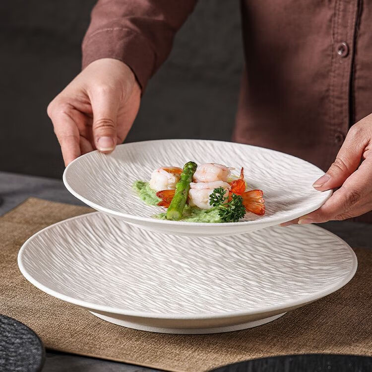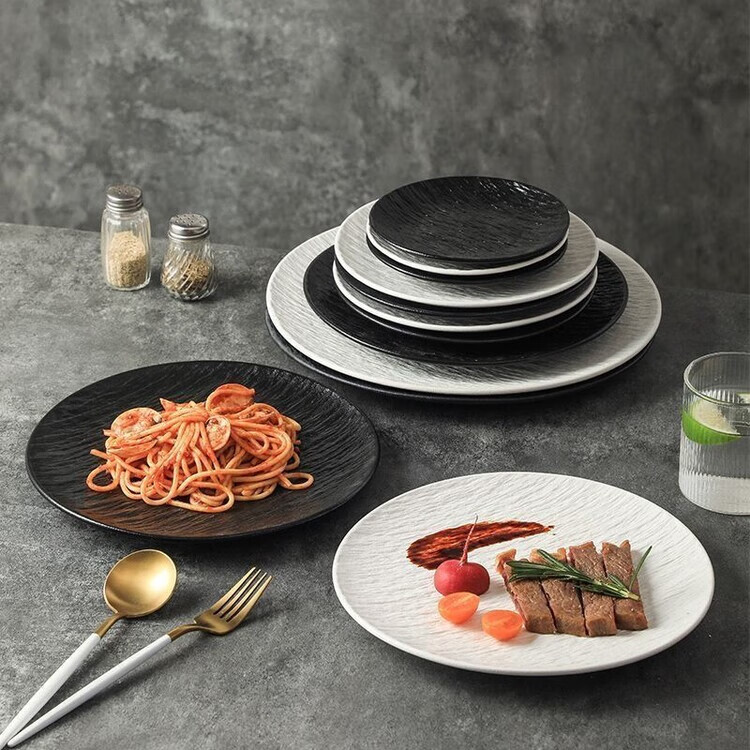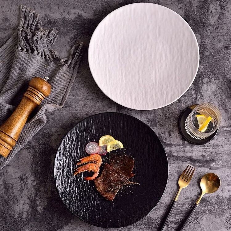 简漾石纹盘食品级PP塑料盘子家用西餐高颜值创意日式餐盘菜盘新款餐具 奶白】1个装 石纹圆盘【19.5CM/PP材质