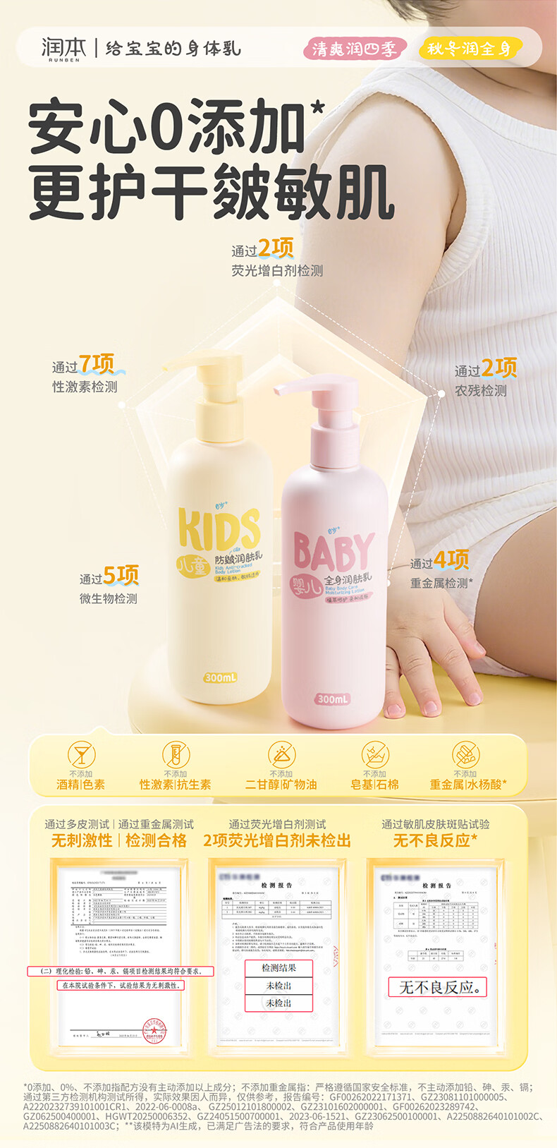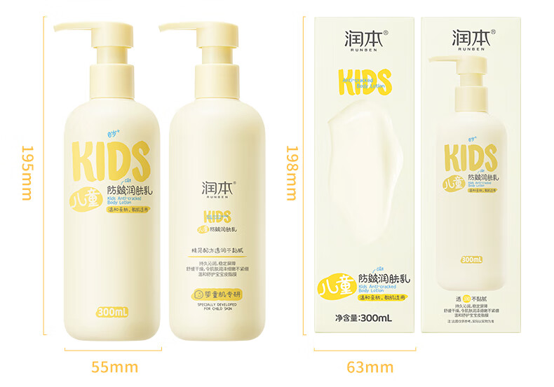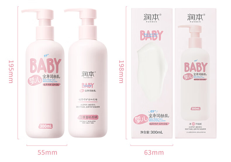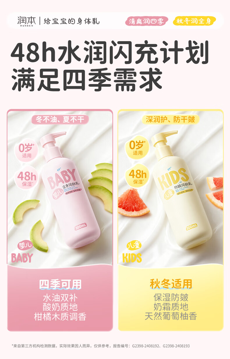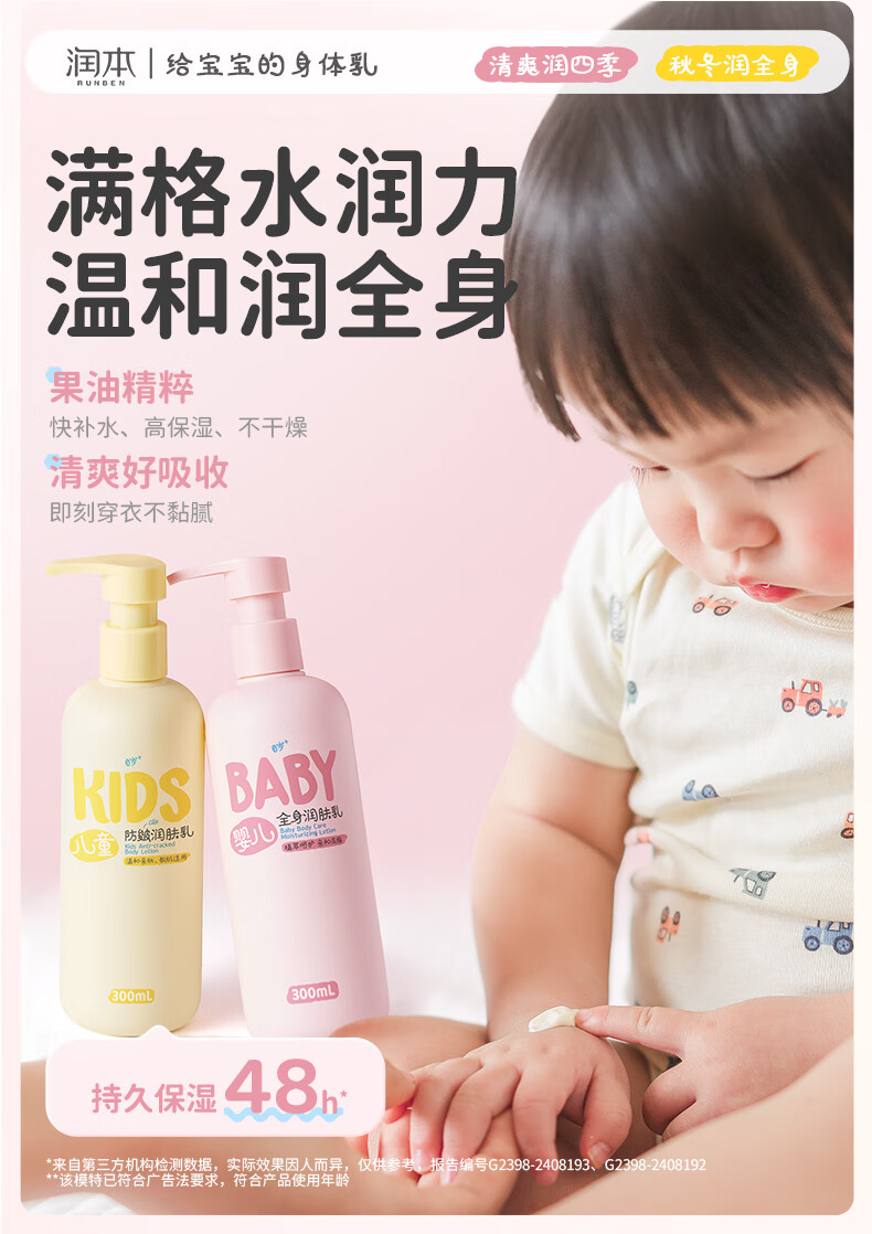 润本(RUNBEN)儿童身体乳婴儿保湿滋润补水专用宝宝秋冬全身润肤乳防干燥护肤霜 300ml 2瓶 【轻润+倍润】换季热销组合