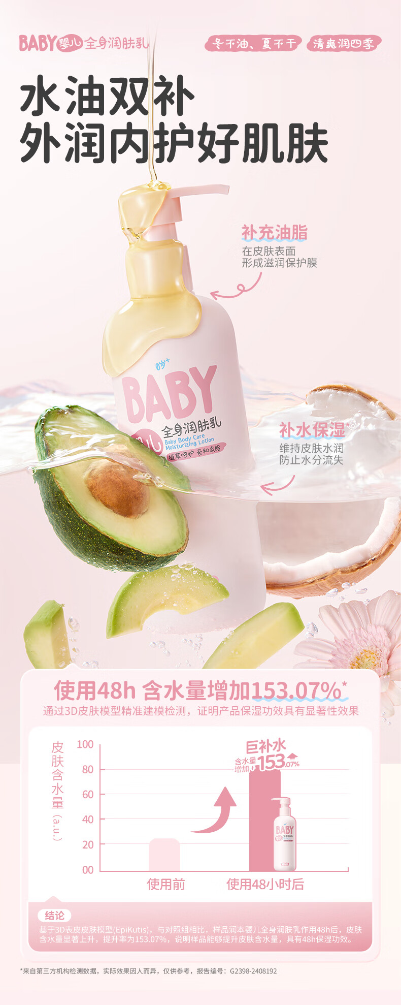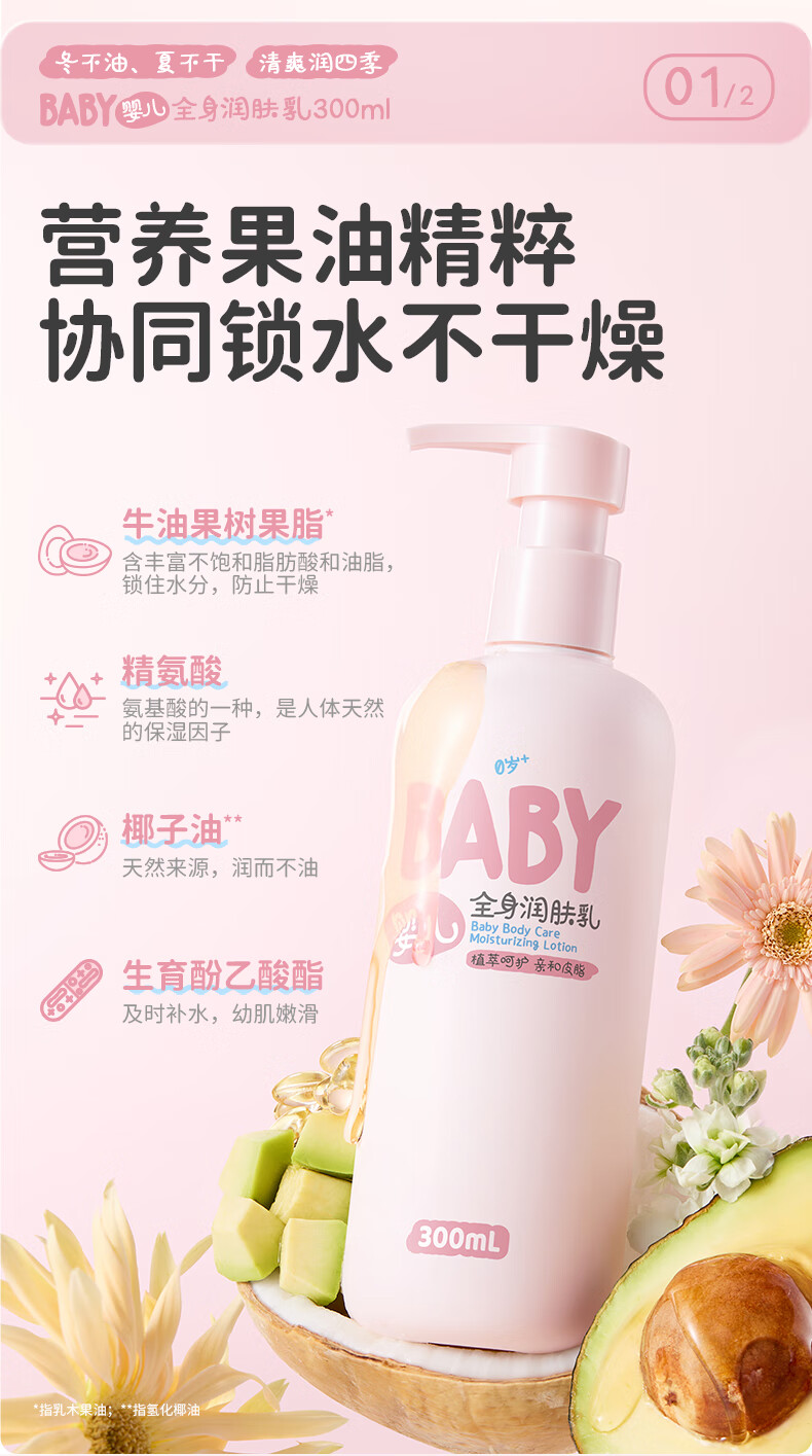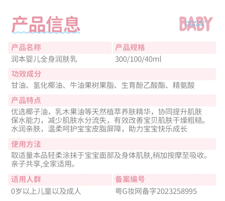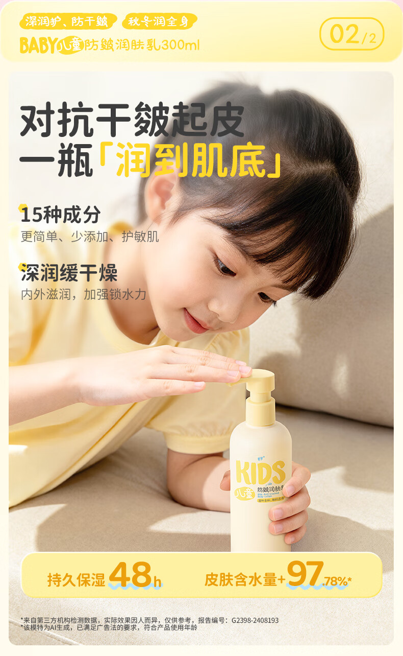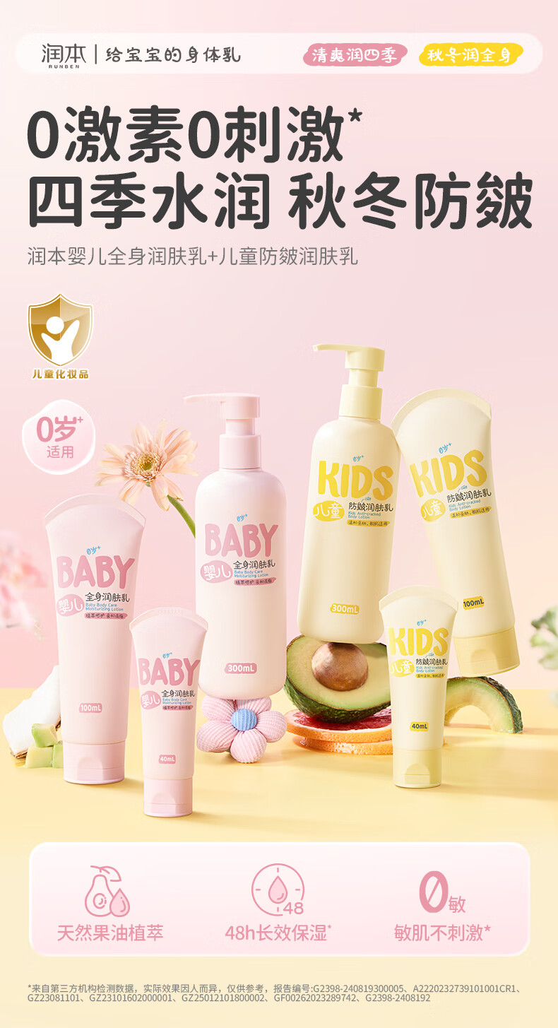 润本(RUNBEN)儿童身体乳婴儿保湿滋润补水专用宝宝秋冬全身润肤乳防干燥护肤霜 300ml 2瓶 【轻润+倍润】换季热销组合