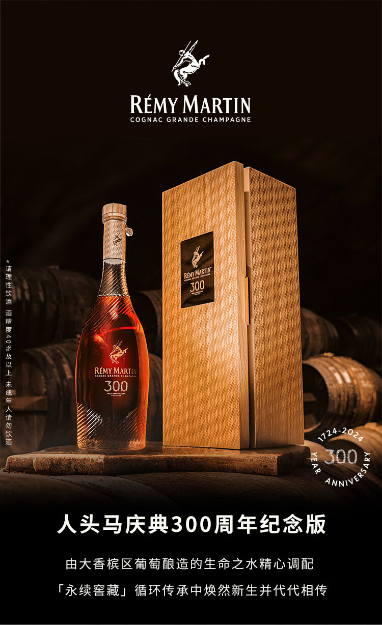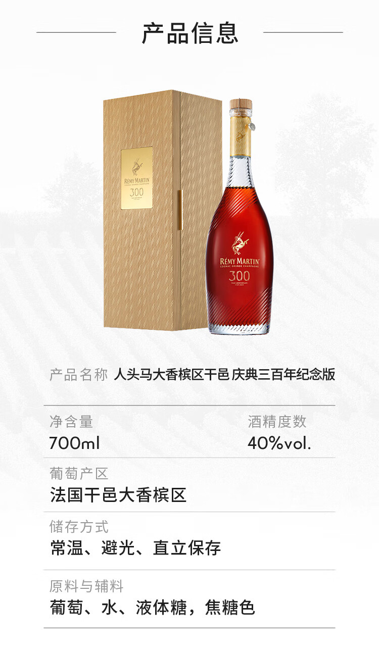 人头马(Remy Martin)300周年纪念版干邑白兰地 庆典300年纪念版 700mL1瓶