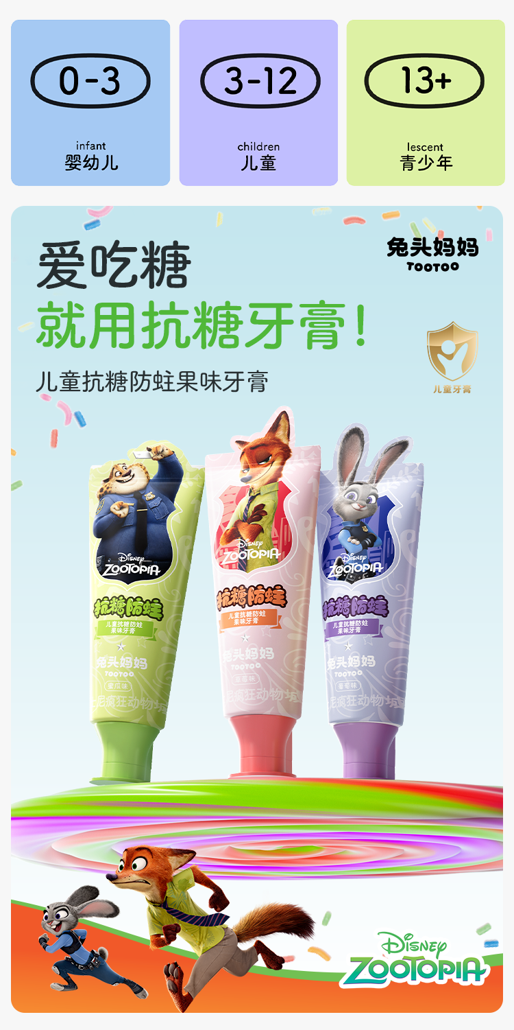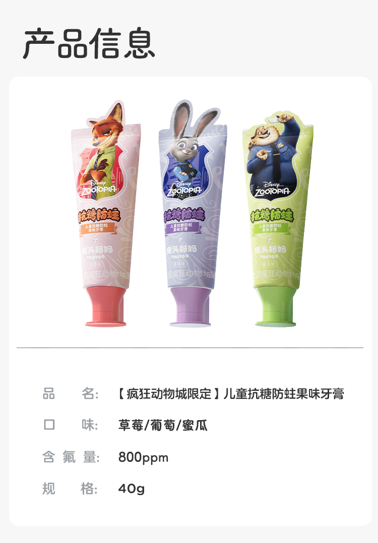 兔头妈妈疯狂动物城抗糖牙膏 抗糖40g草莓味【尼克款】