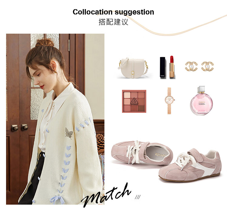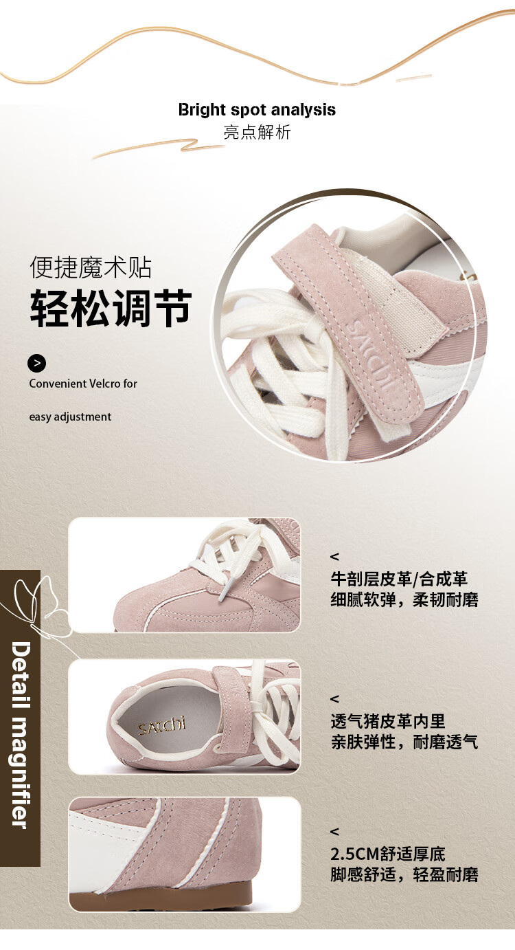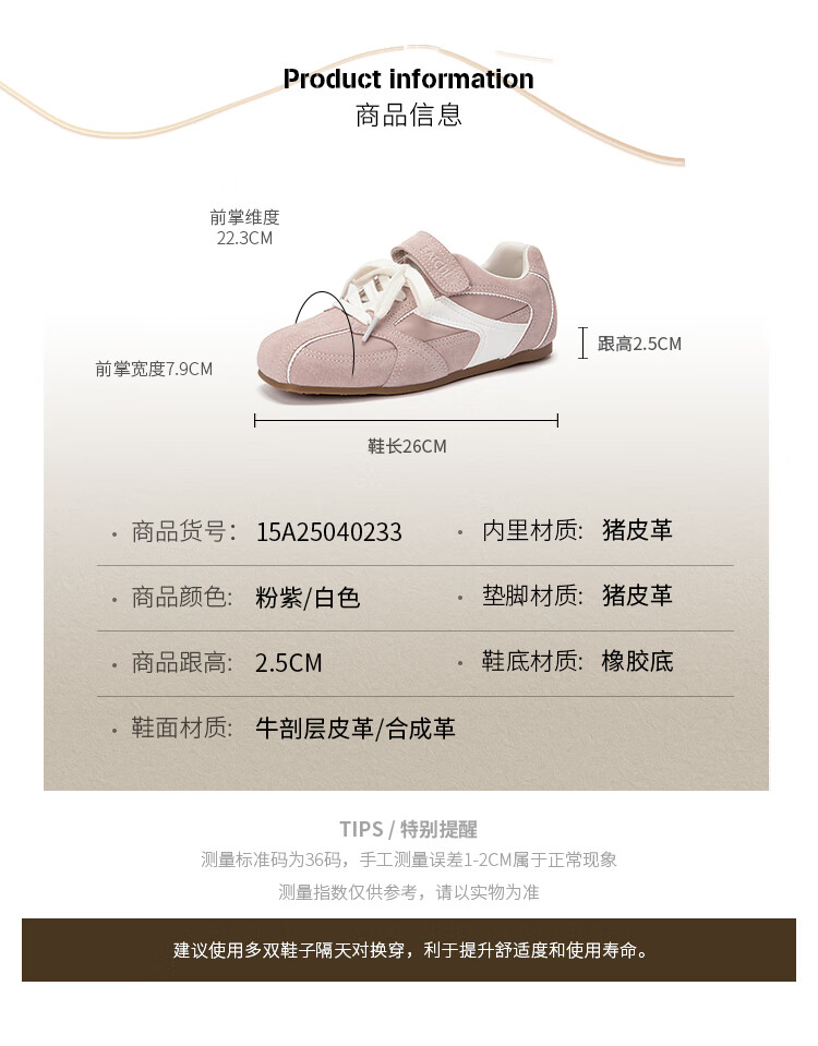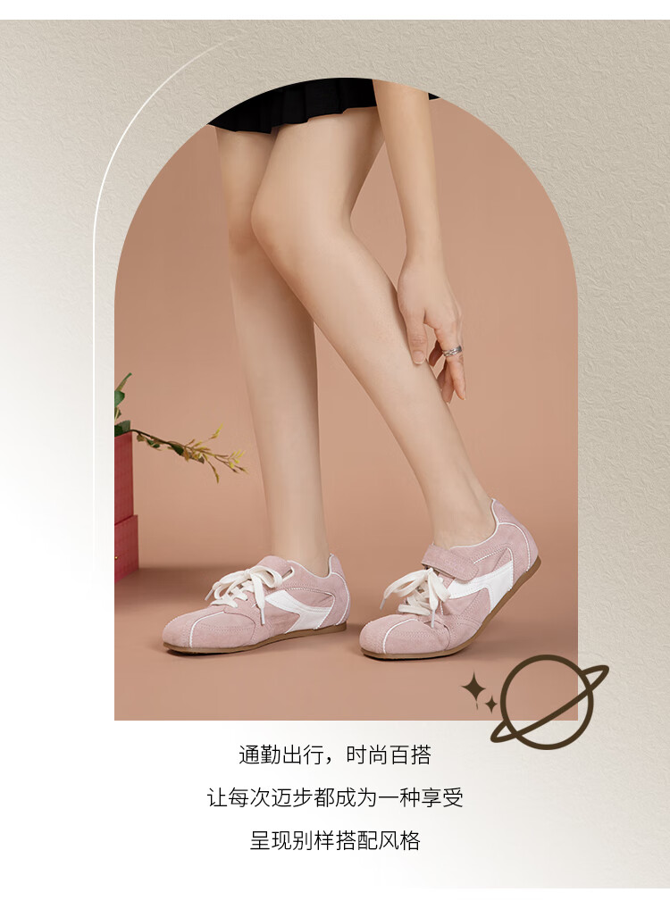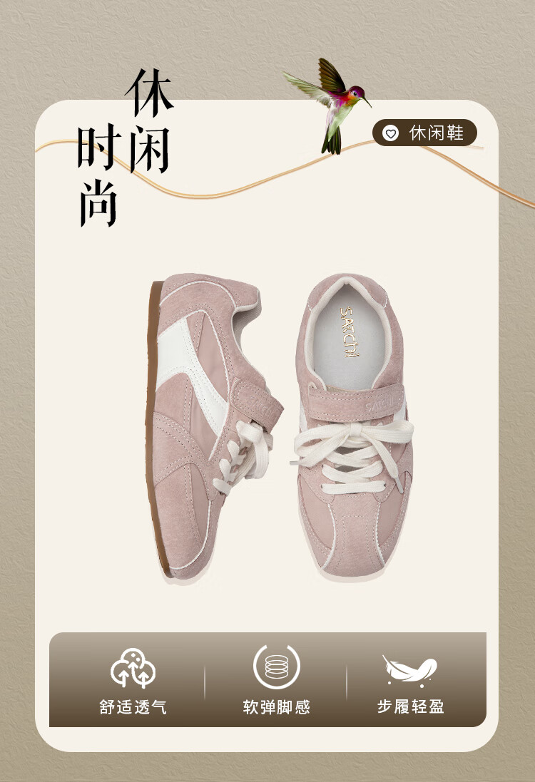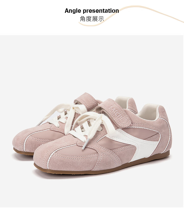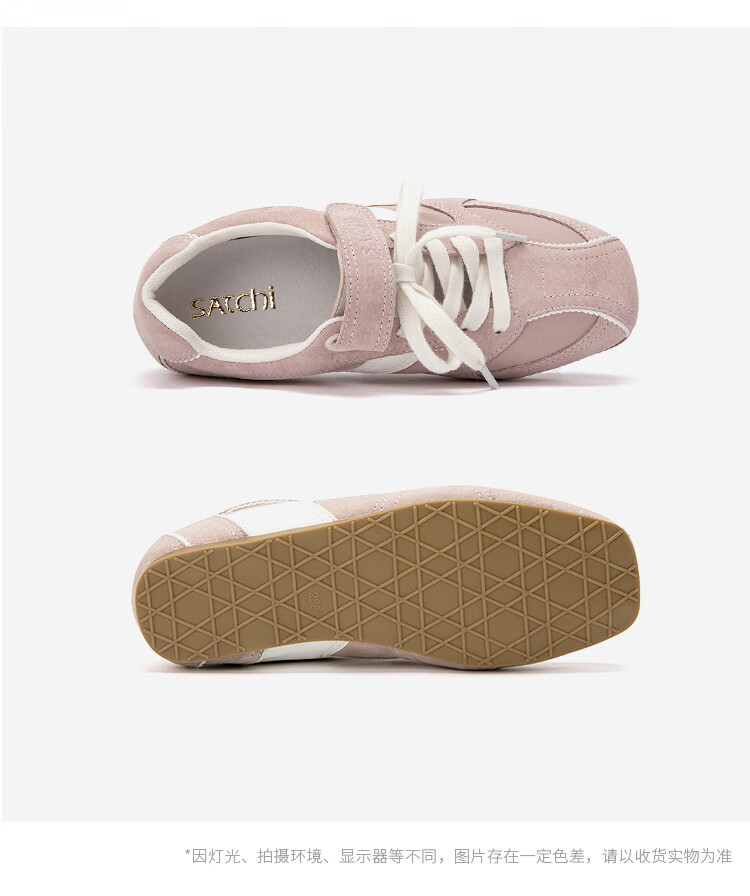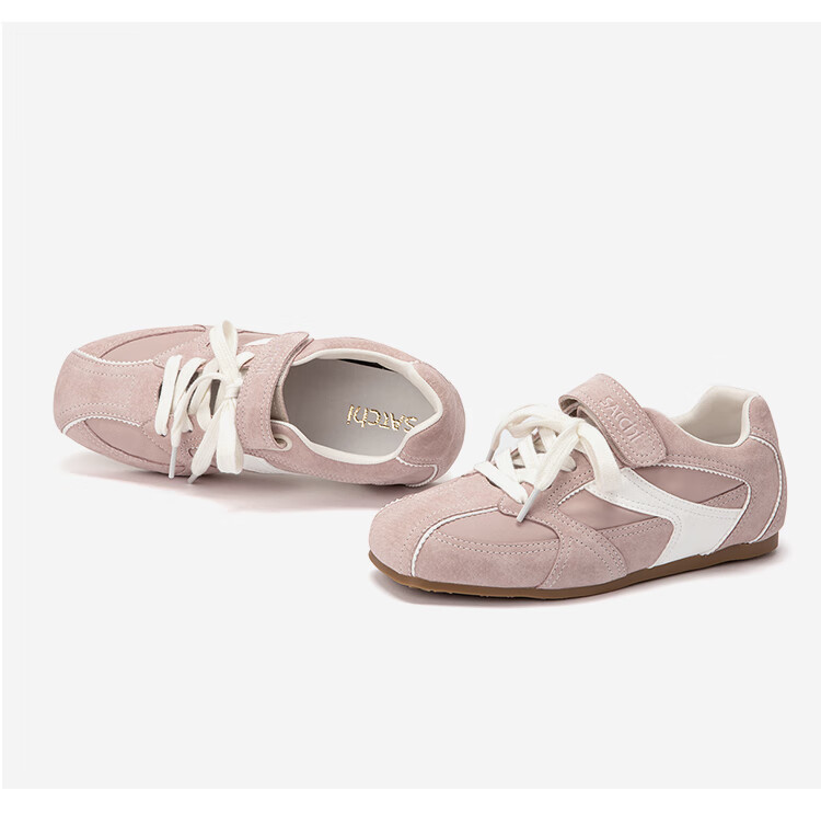 沙驰(SATCHI)女鞋牛剖层皮拼接文艺格调德训鞋平底女休闲运动鞋户外鞋 粉紫/白(15A25040233) 35