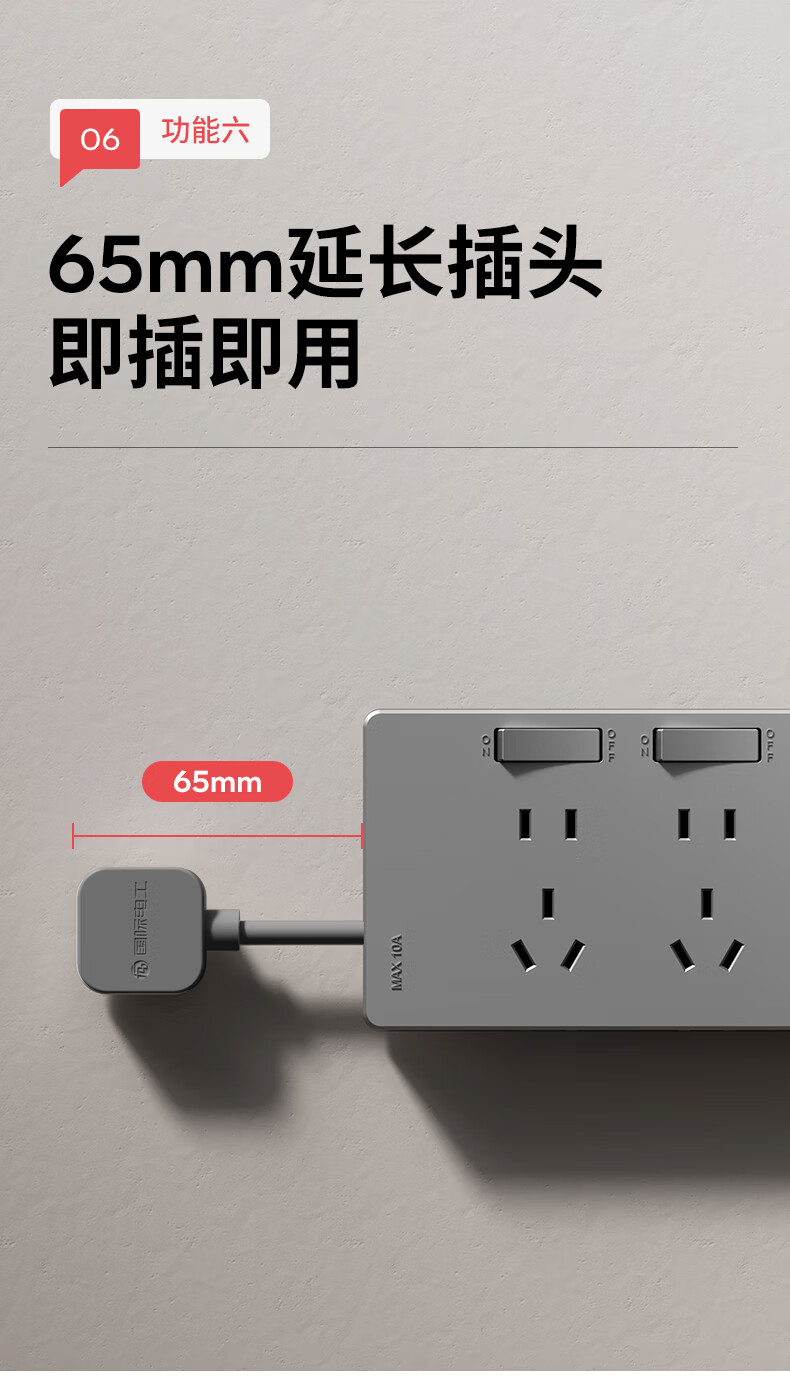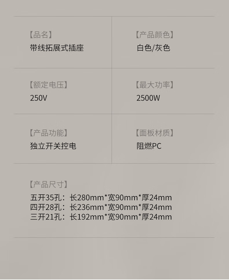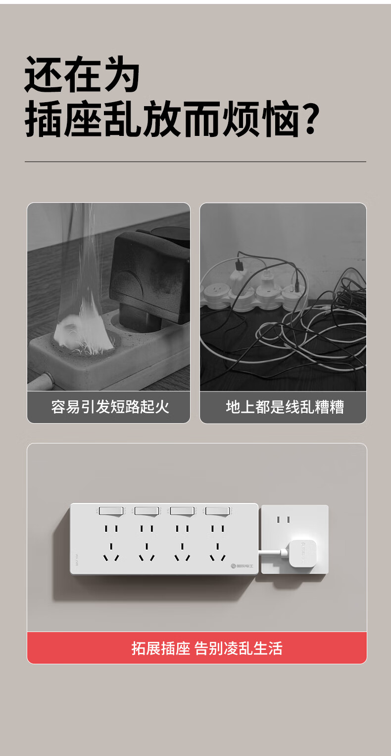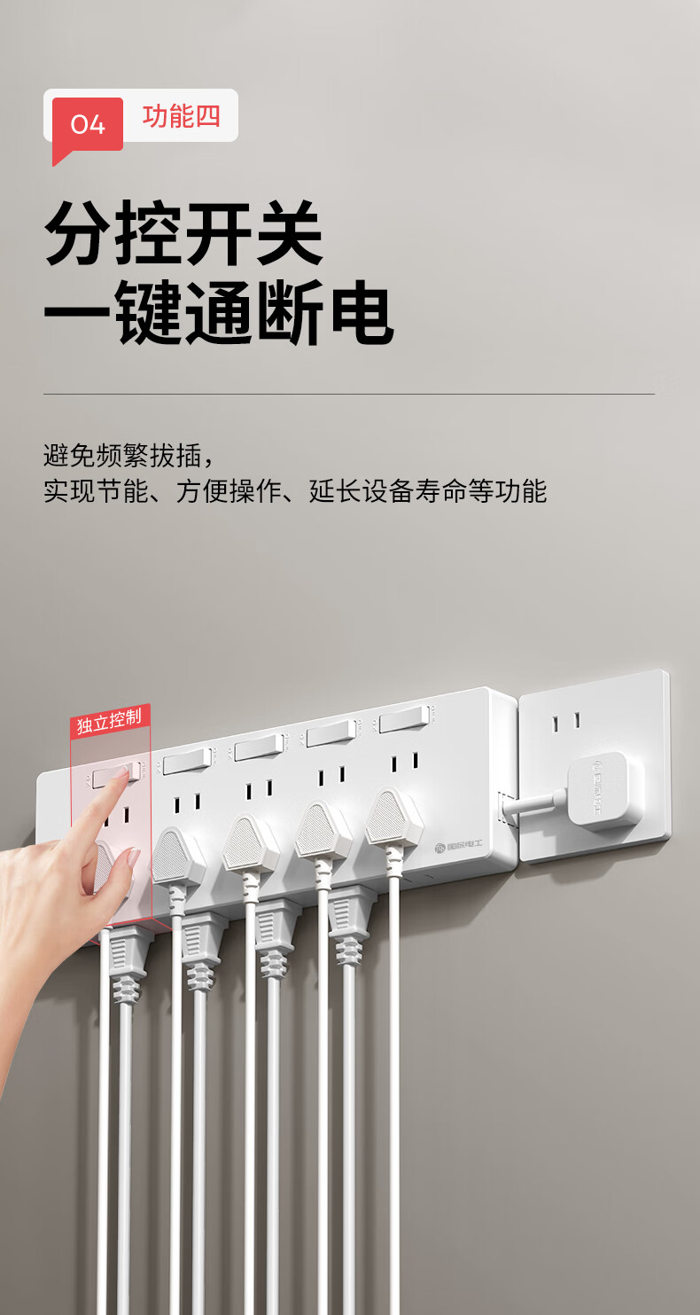 国际电工直插拓展扩展插座独立开关厨房家用排插多功能带线扩展插板插线板 白色短线-三开21孔-向左扩展