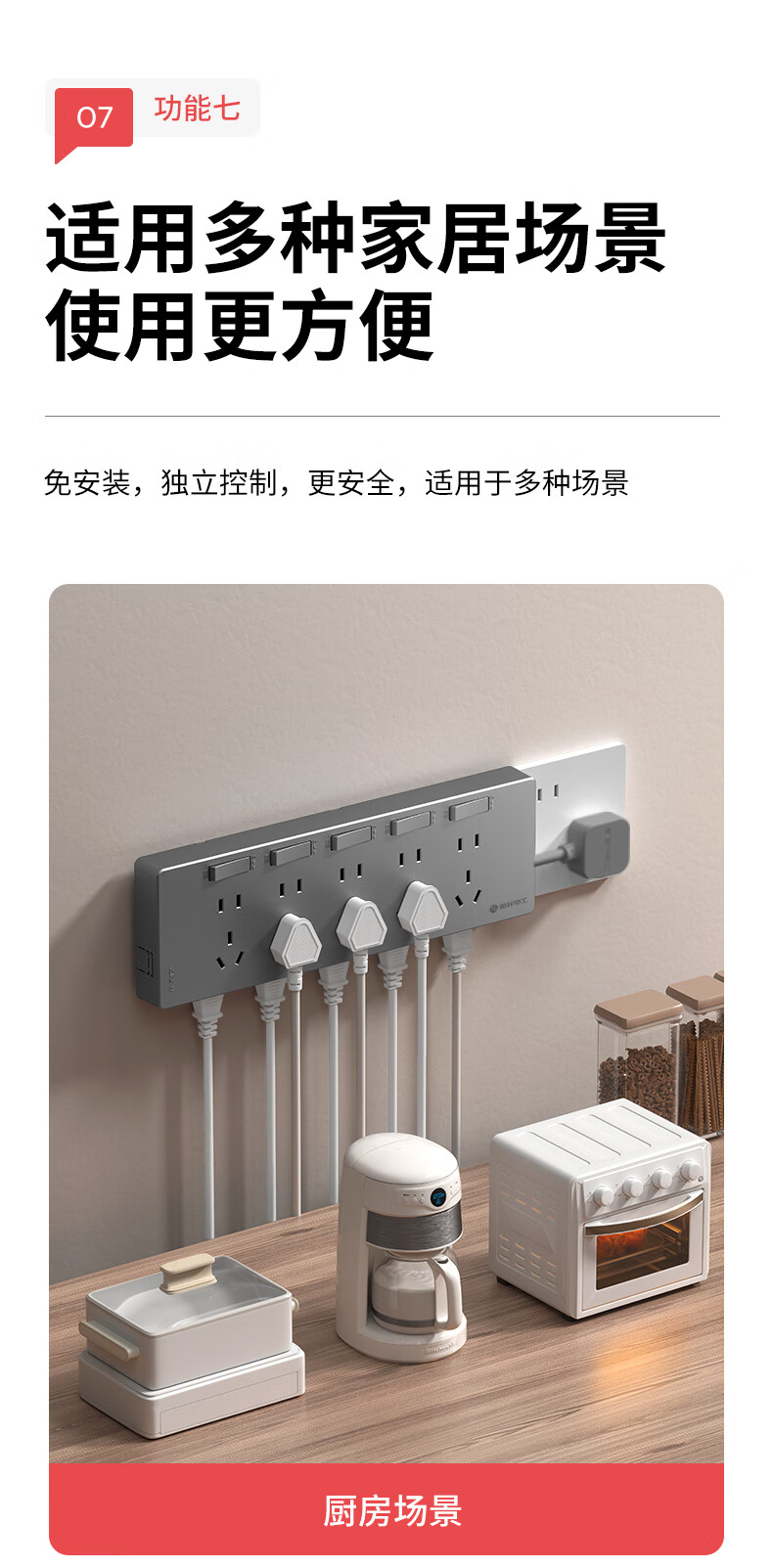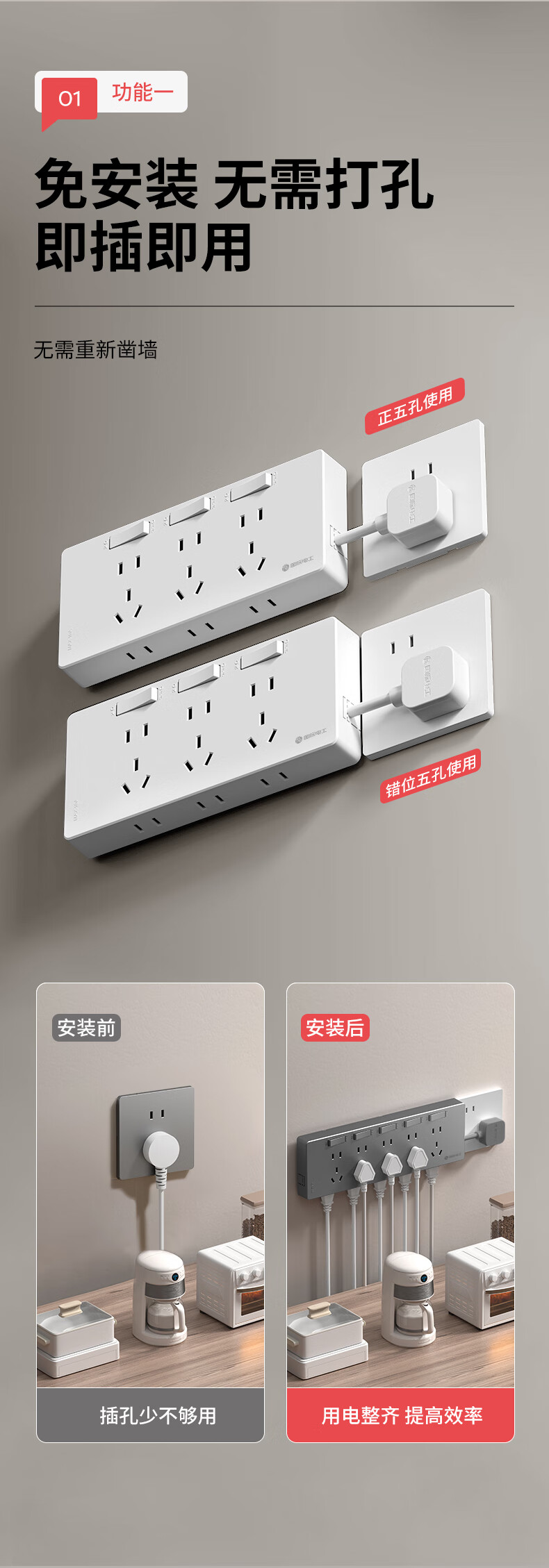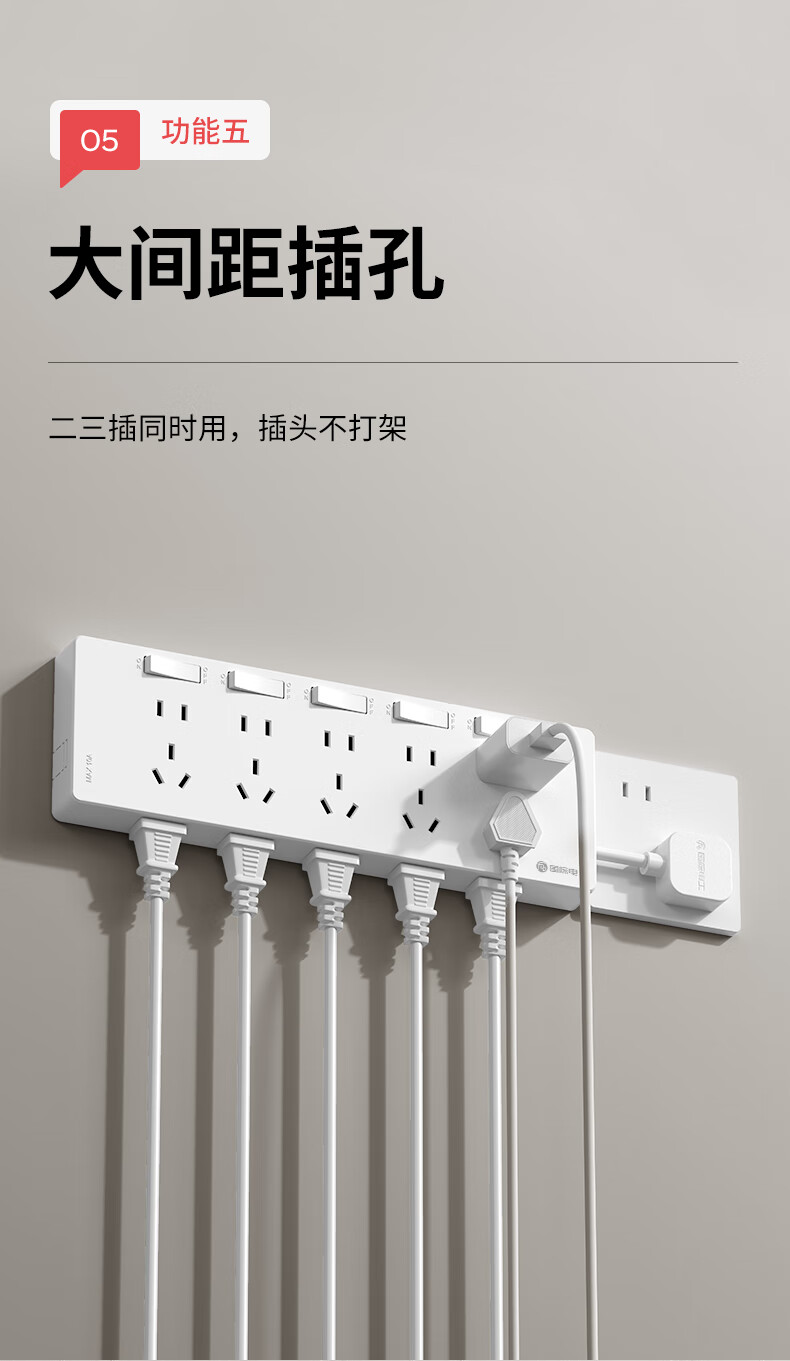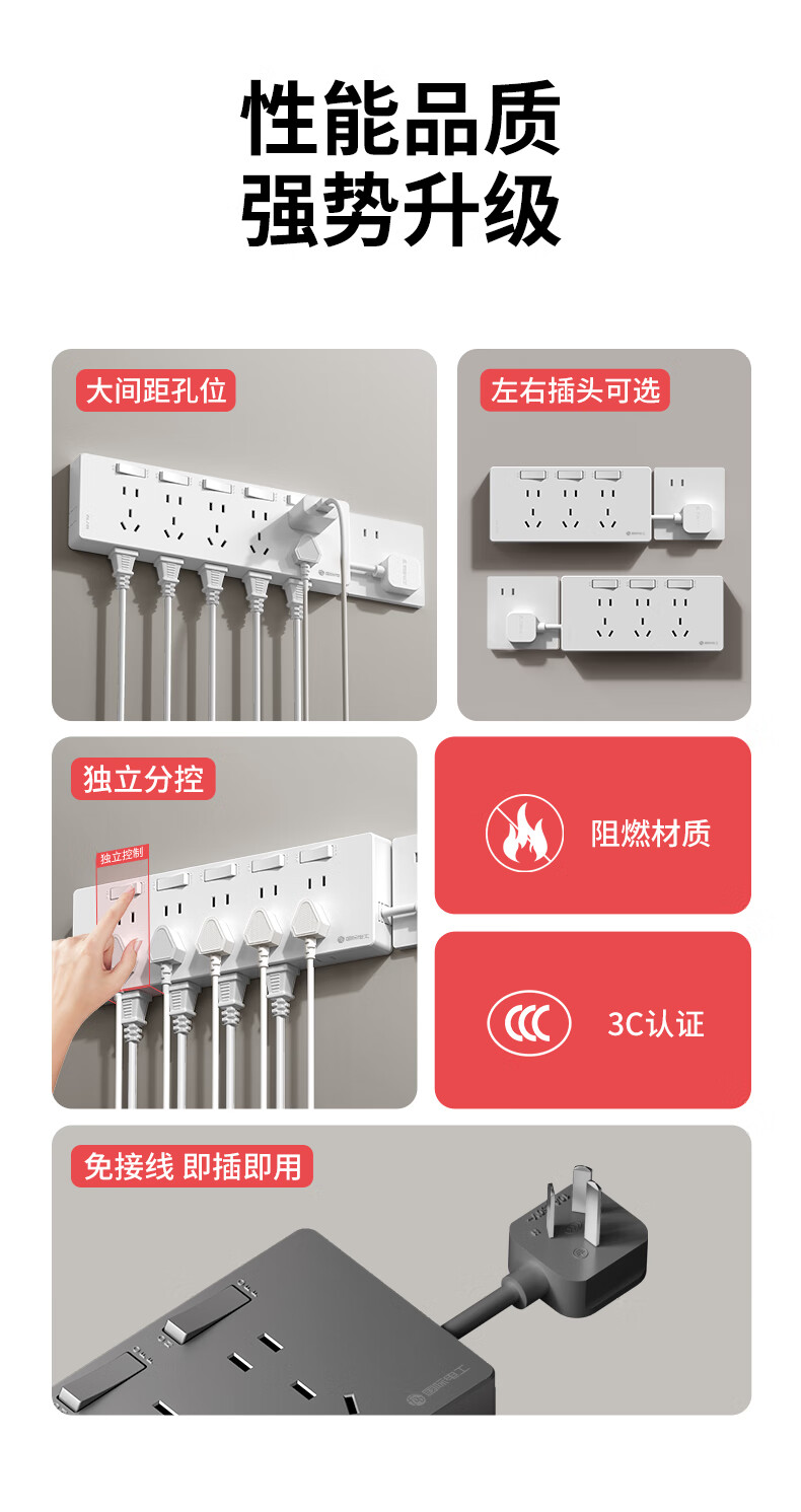 国际电工直插拓展扩展插座独立开关厨房家用排插多功能带线扩展插板插线板 白色短线-三开21孔-向左扩展