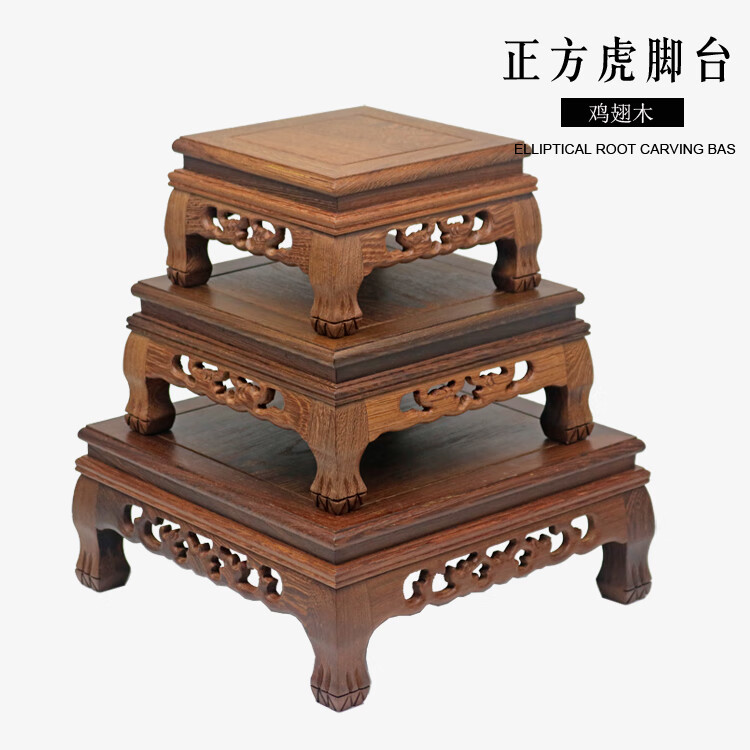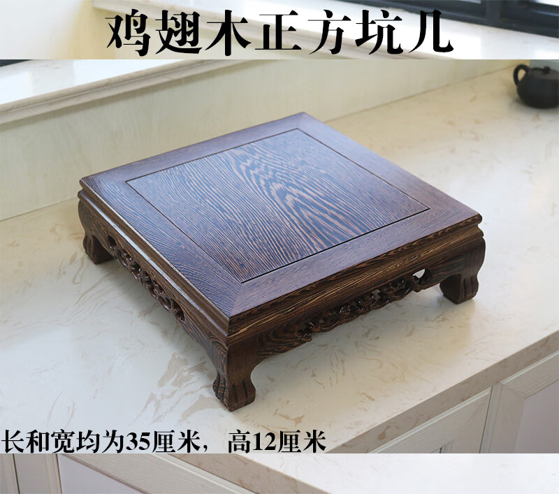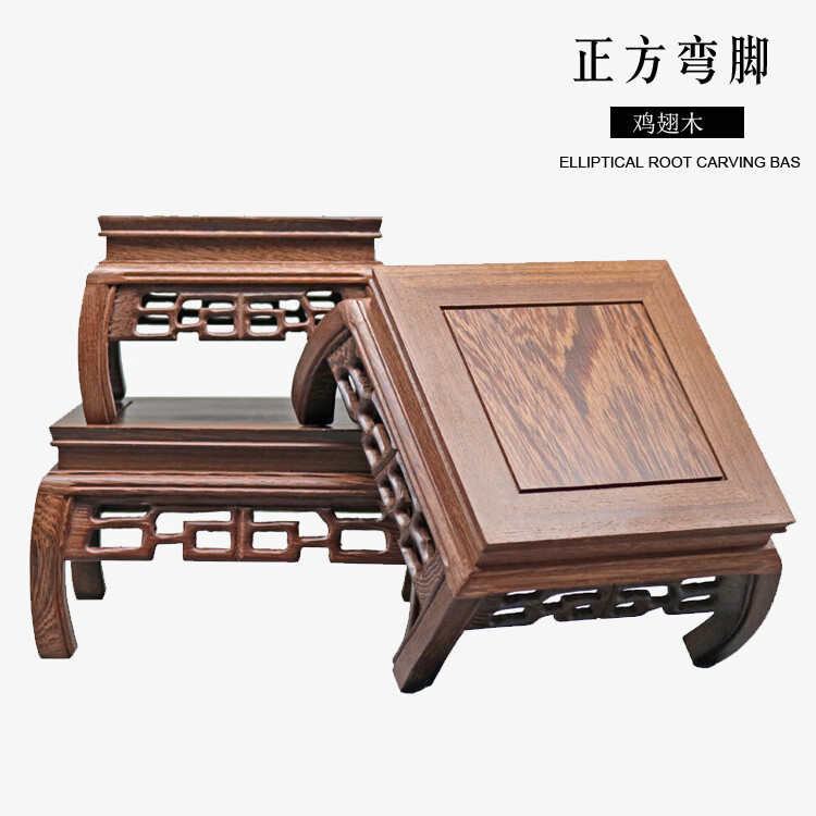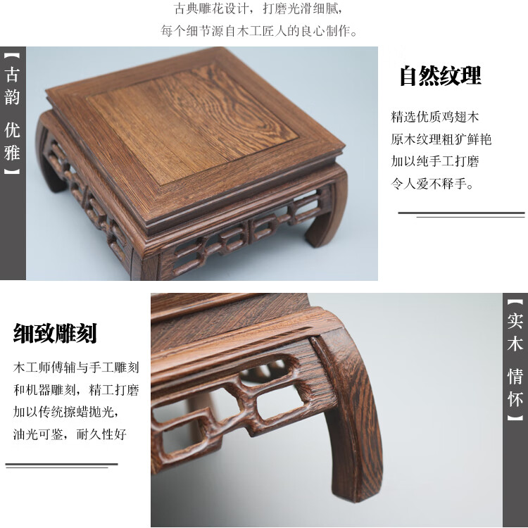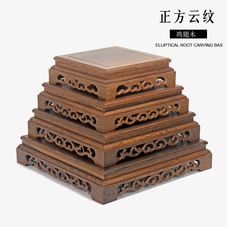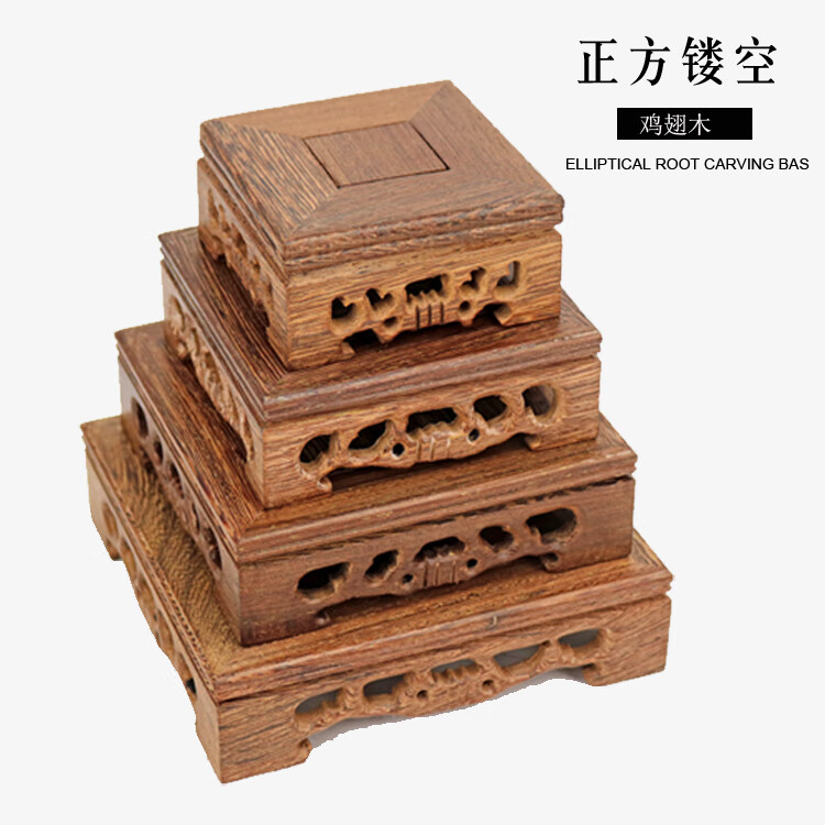 柏帝奇鸡翅木底座家庭工艺品摆件底座实木正方奇石头花盆景佛像茶壶木托 鸡翅木正方镂空8cm