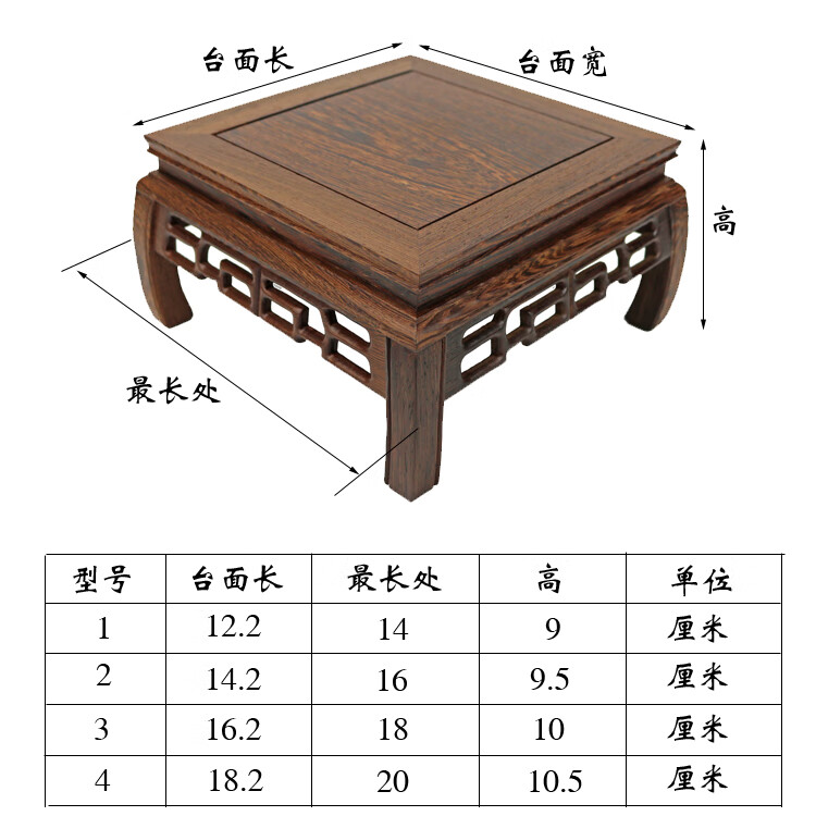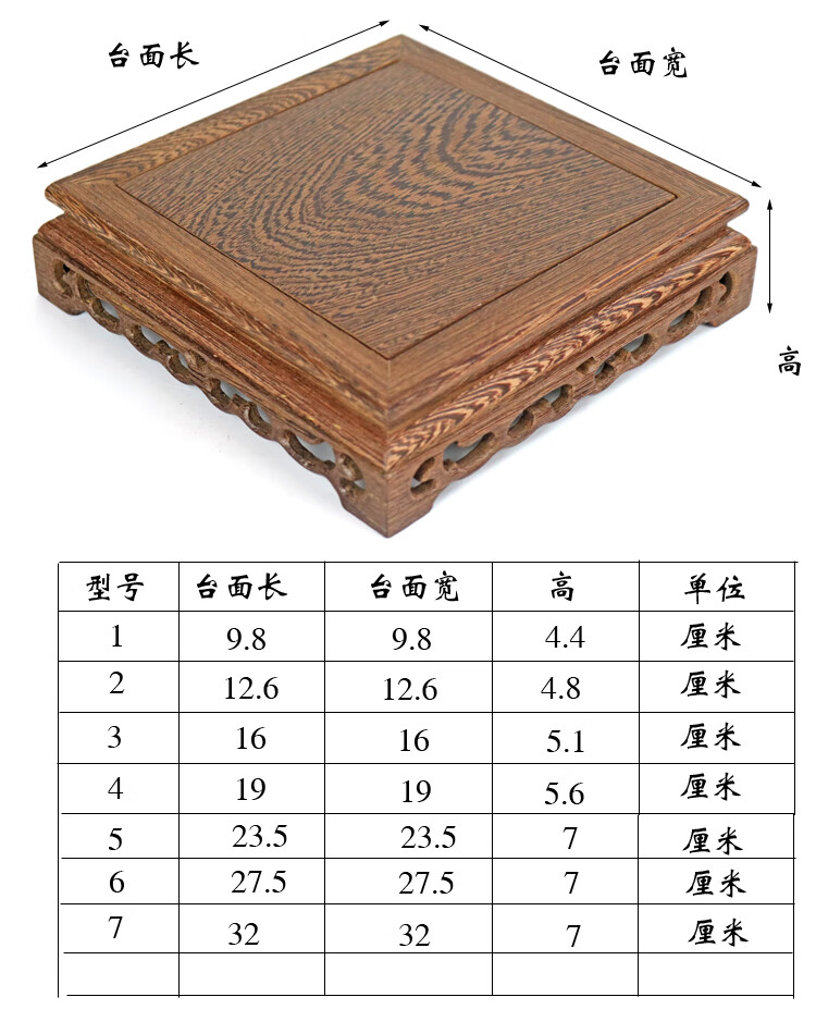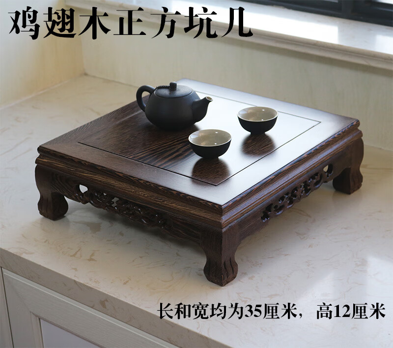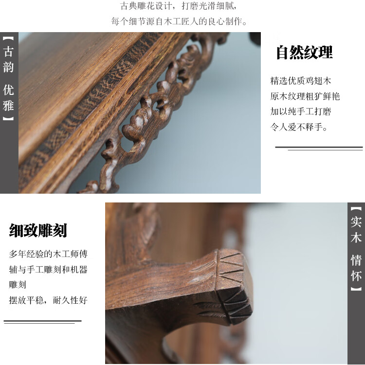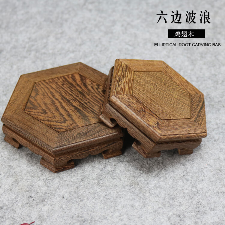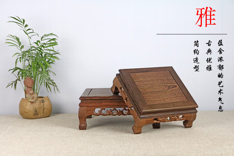 柏帝奇鸡翅木底座家庭工艺品摆件底座实木正方奇石头花盆景佛像茶壶木托 鸡翅木正方镂空8cm