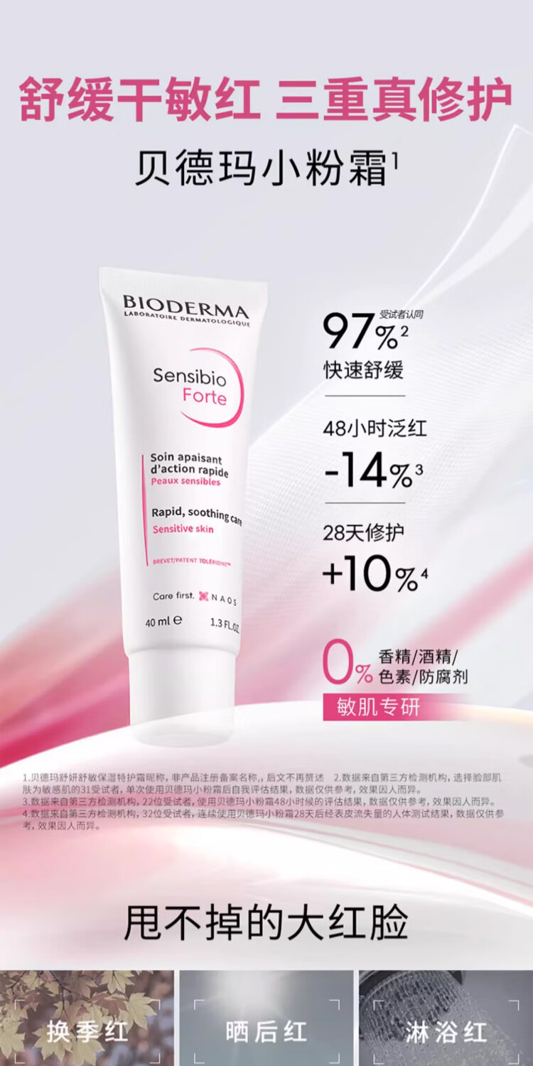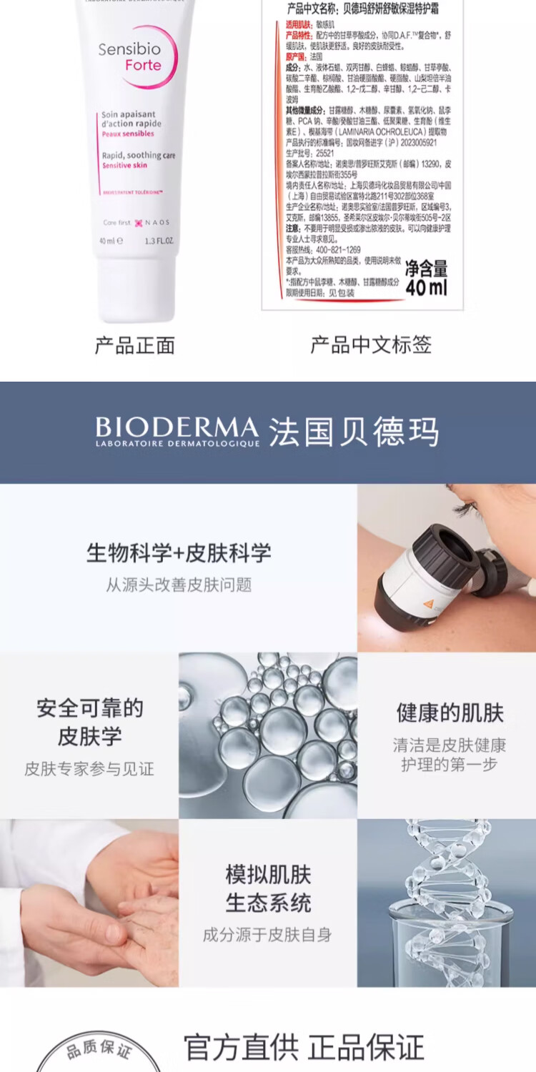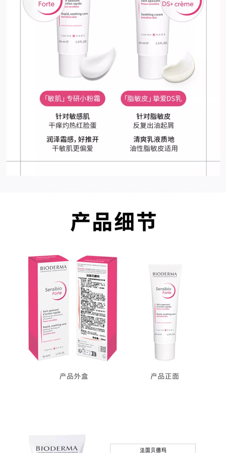 BIODERMA 贝德玛特护小粉霜舒敏保湿特护霜小奶管敏感肌面霜 小奶管40ml