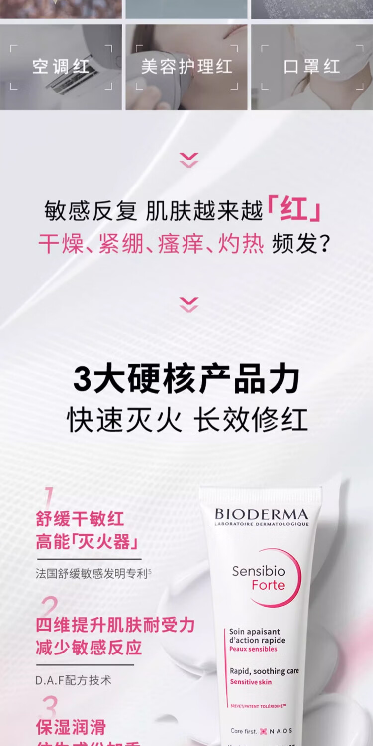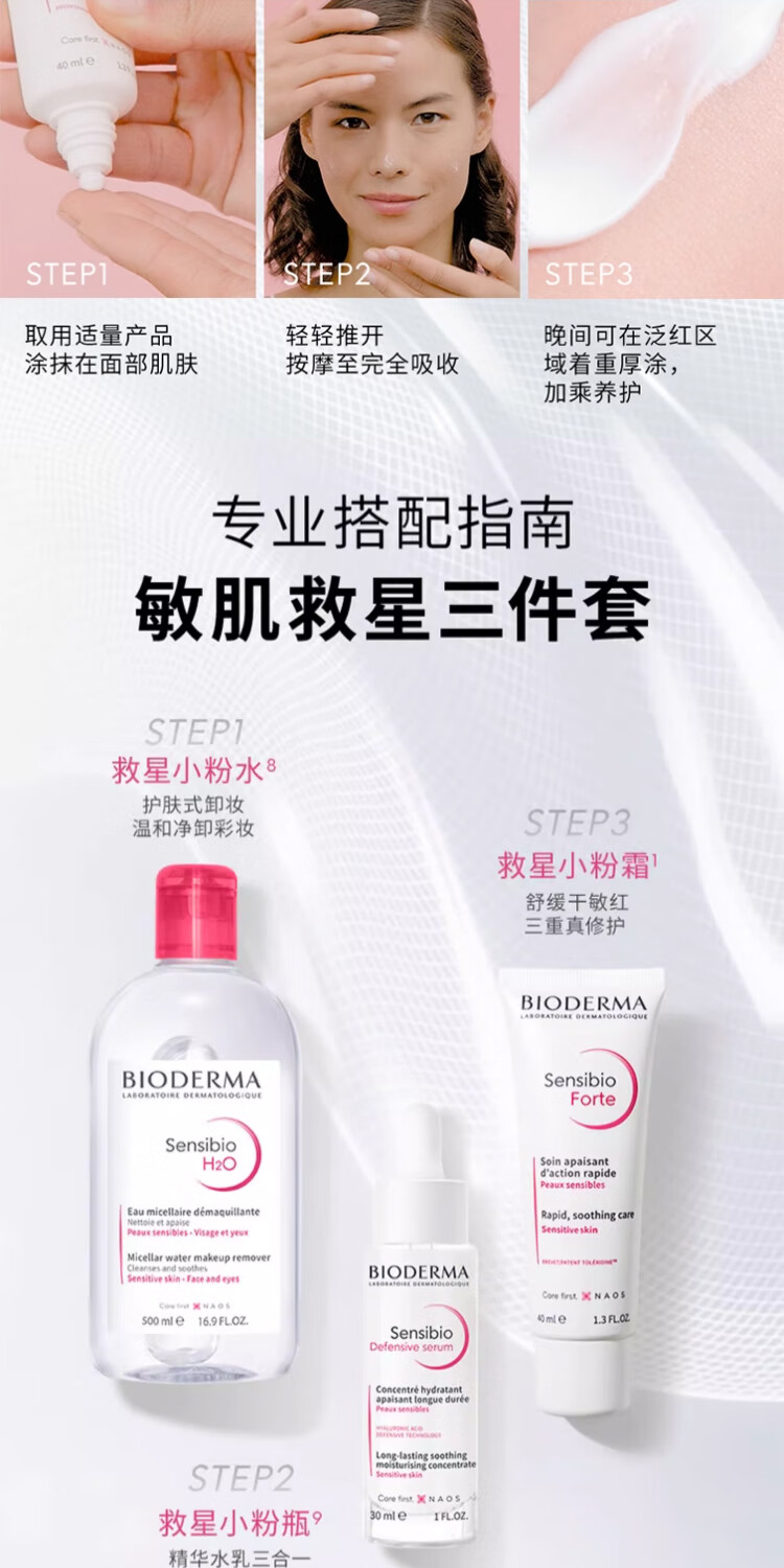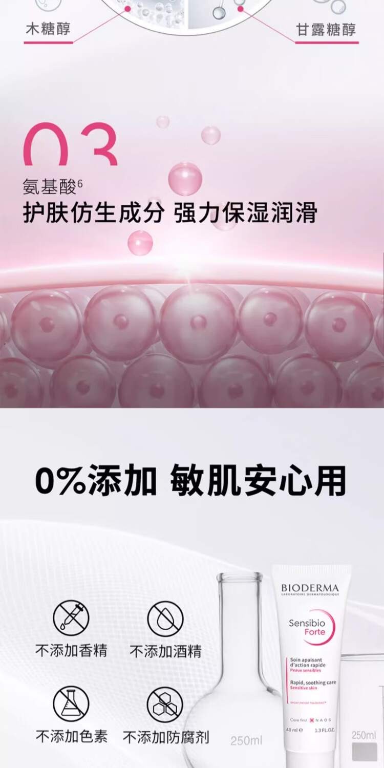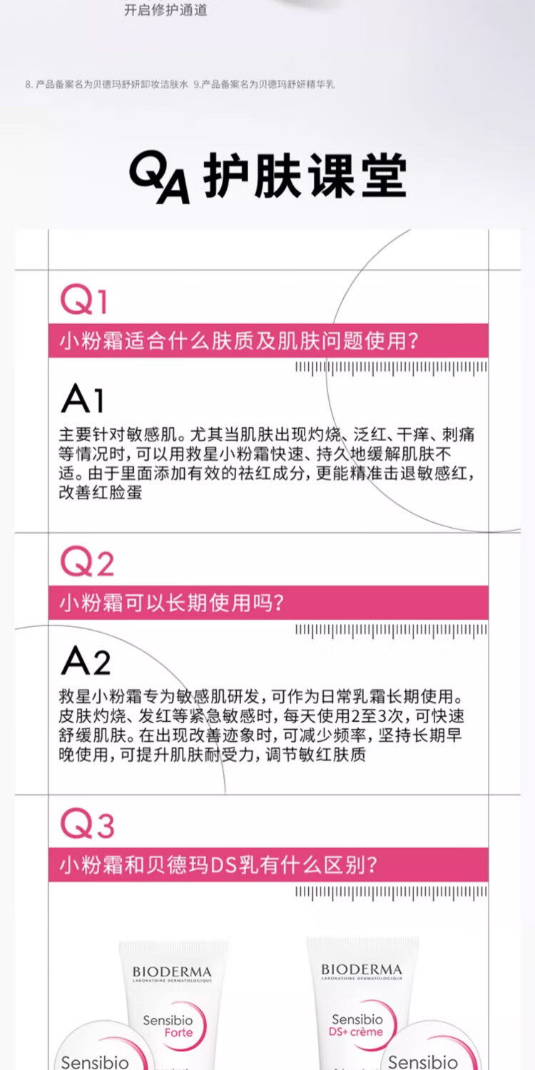 BIODERMA 贝德玛特护小粉霜舒敏保湿特护霜小奶管敏感肌面霜 小奶管40ml