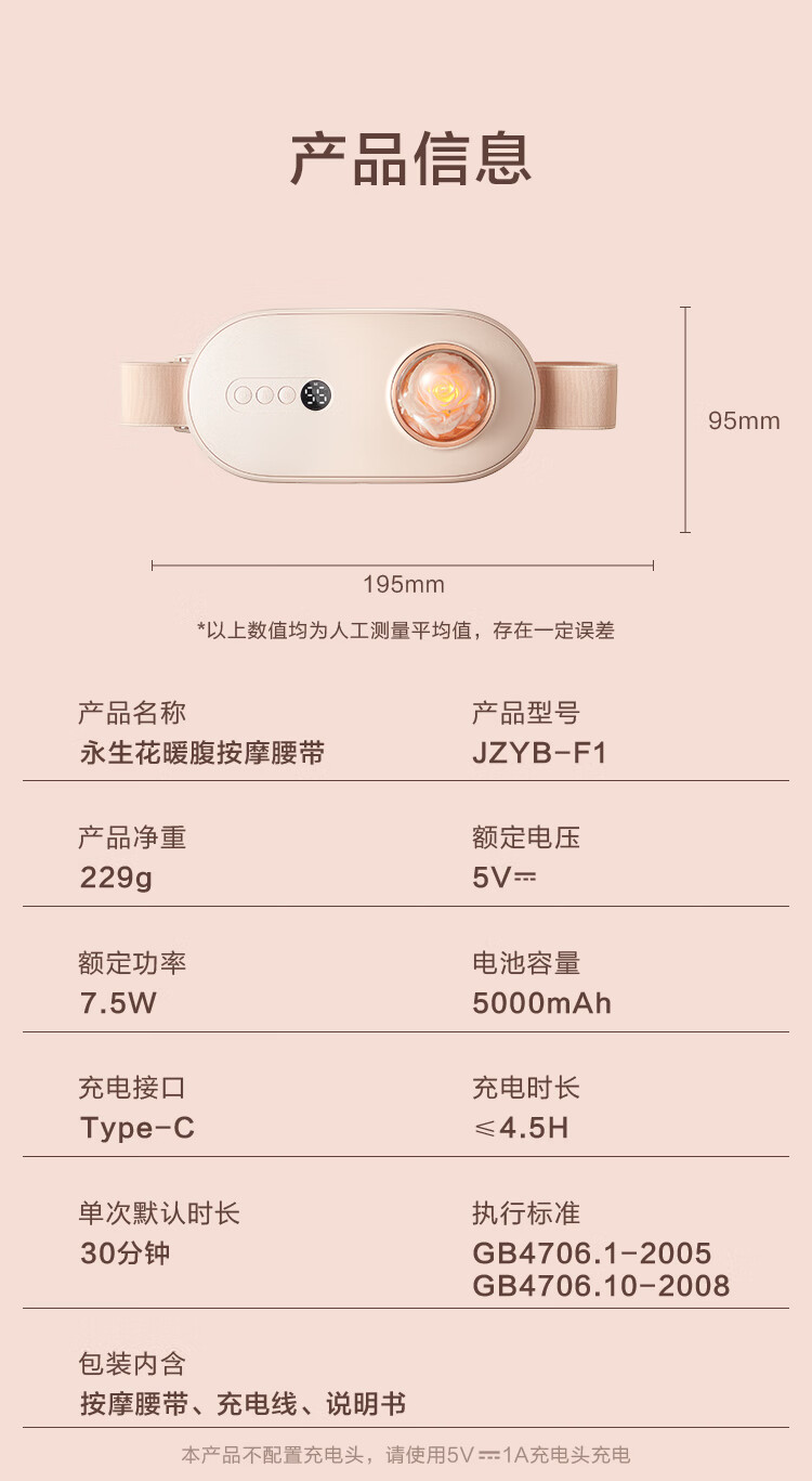 京东京造永生花腰部按摩器暖宫腰带暖宫宝 大姨妈神器痛经热敷缓解神器腰部按摩仪男生生日礼物女士