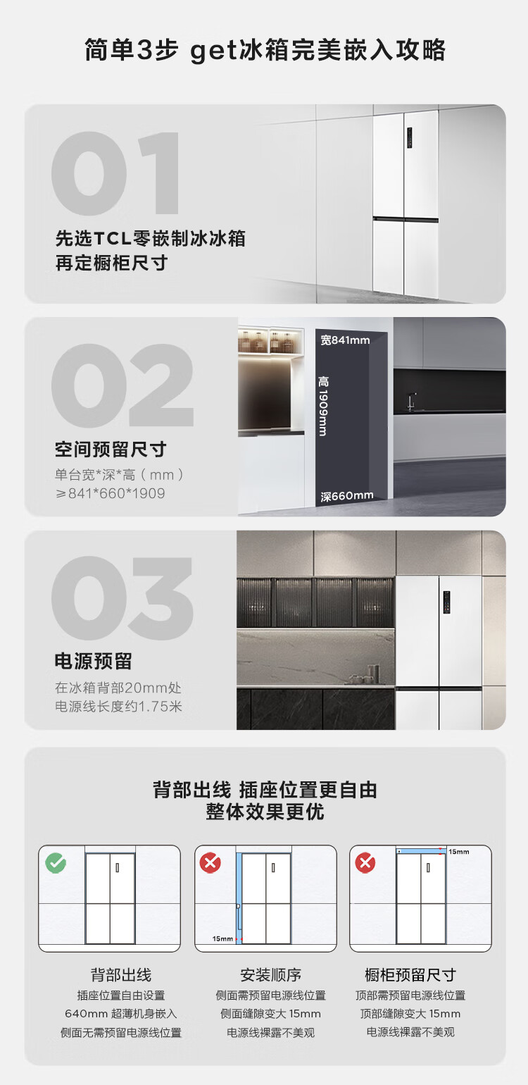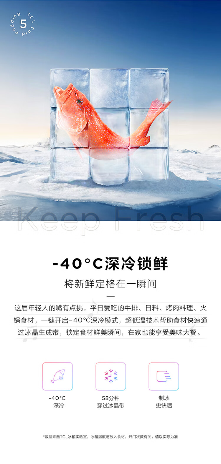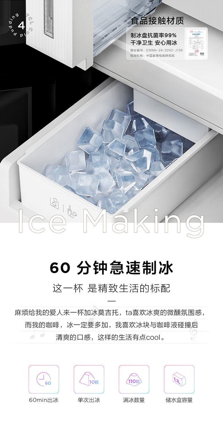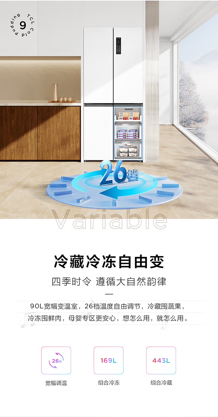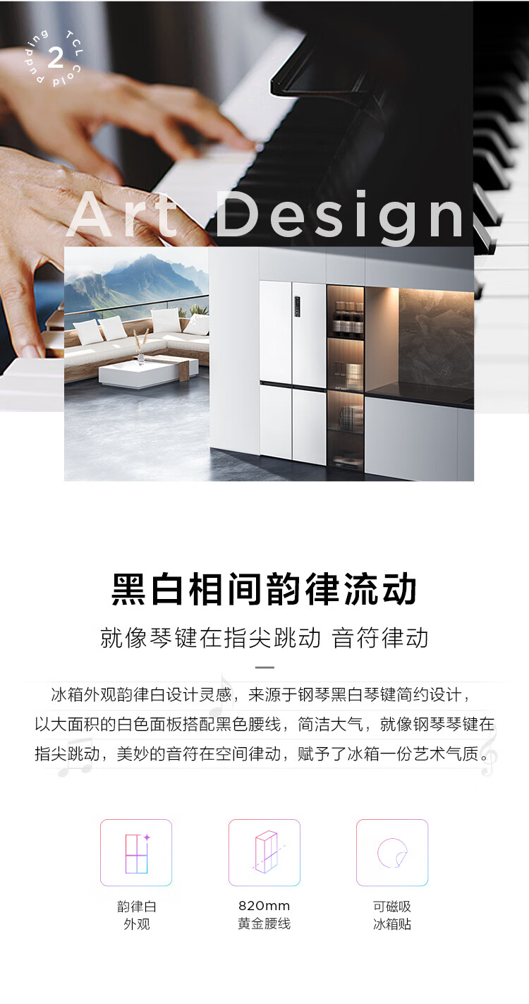 TCL522升十字对开四开门超薄零嵌大容量冰箱 全自动制冰 深冷锁鲜 家用电冰箱 以旧换新 R522T9-UQB 韵律白