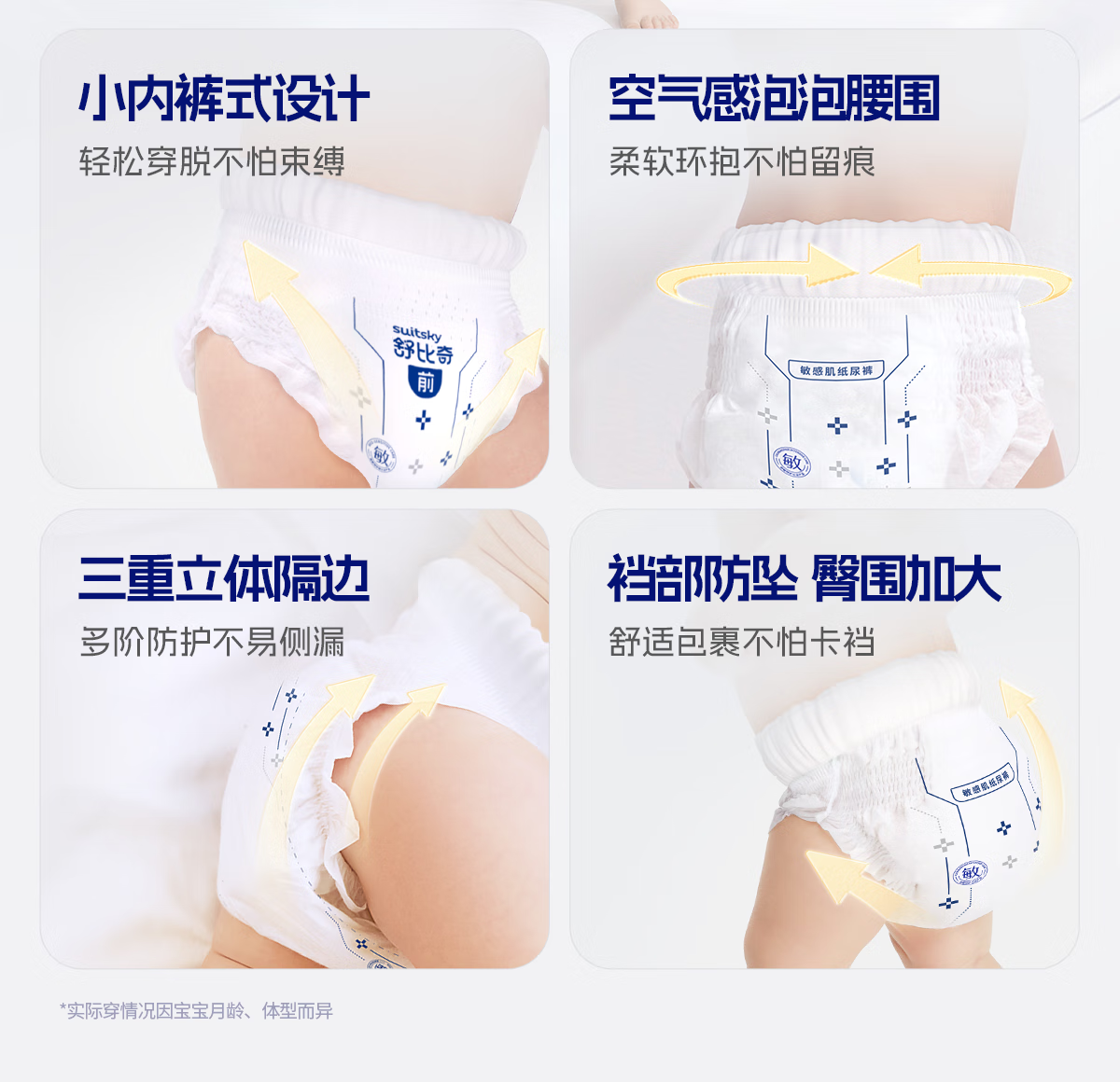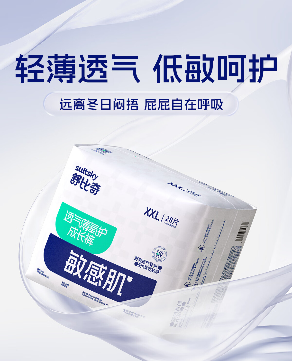 舒比奇(Suitsky)透气薄拉拉裤XXL码28片尿不湿小内裤超薄透气干爽成长裤加加大码