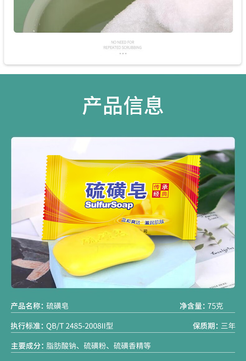 欧舒妃硫磺皂手工皂净螨虫后背长痘洗脸洗澡洗发液体男女通用 硫磺净螨皂*6块