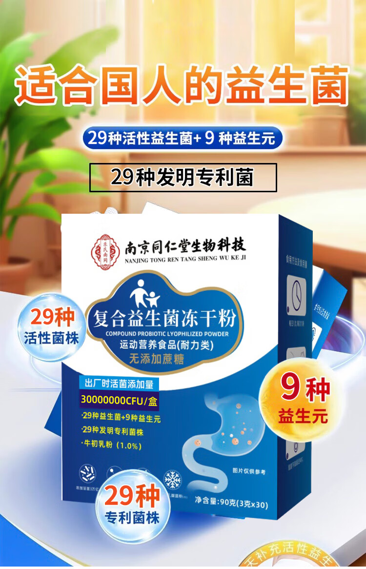 南京同仁堂 益生菌 益生元 活菌型 冻干粉益生菌粉含牛初乳成人儿童肠胃肠道 拍1发2【包含赠送共2盒】 90g*1盒