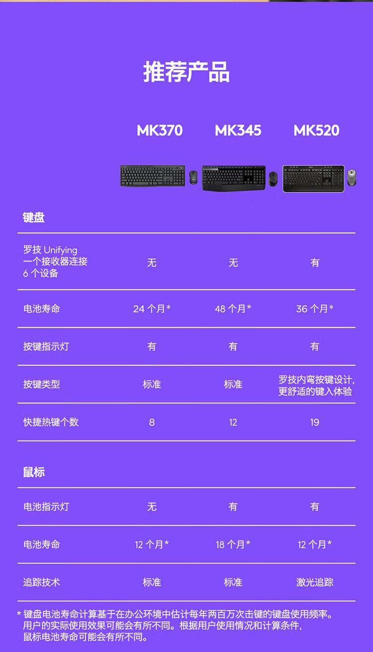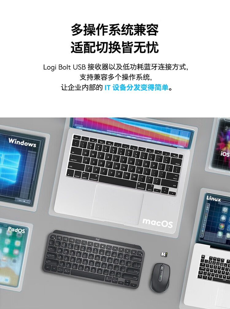 罗技(Logitech)MK370无线蓝牙键鼠套装商务办公无线蓝牙键盘鼠标套装全尺寸带Bolt接收器 MK370 无线 键鼠套装 99成新