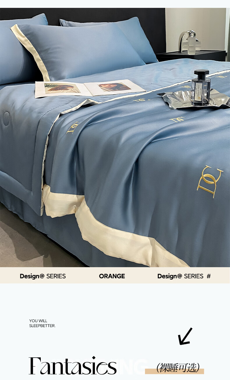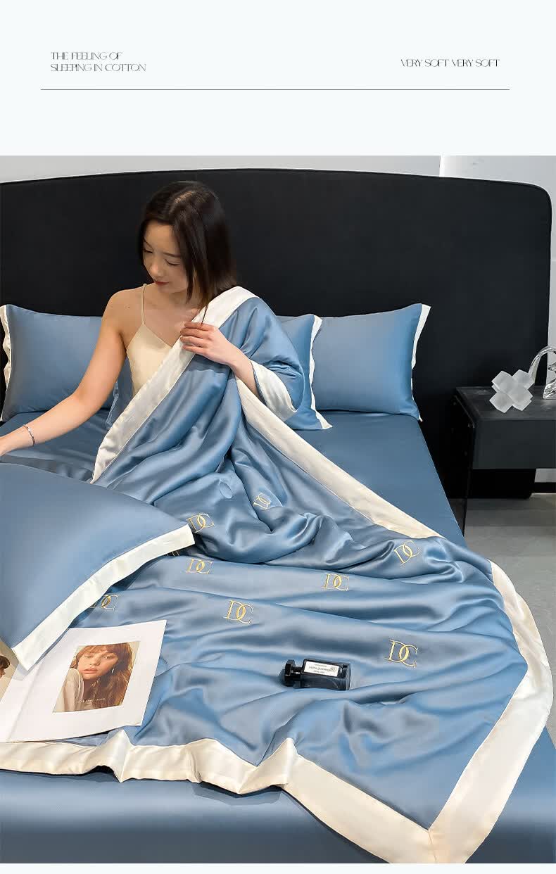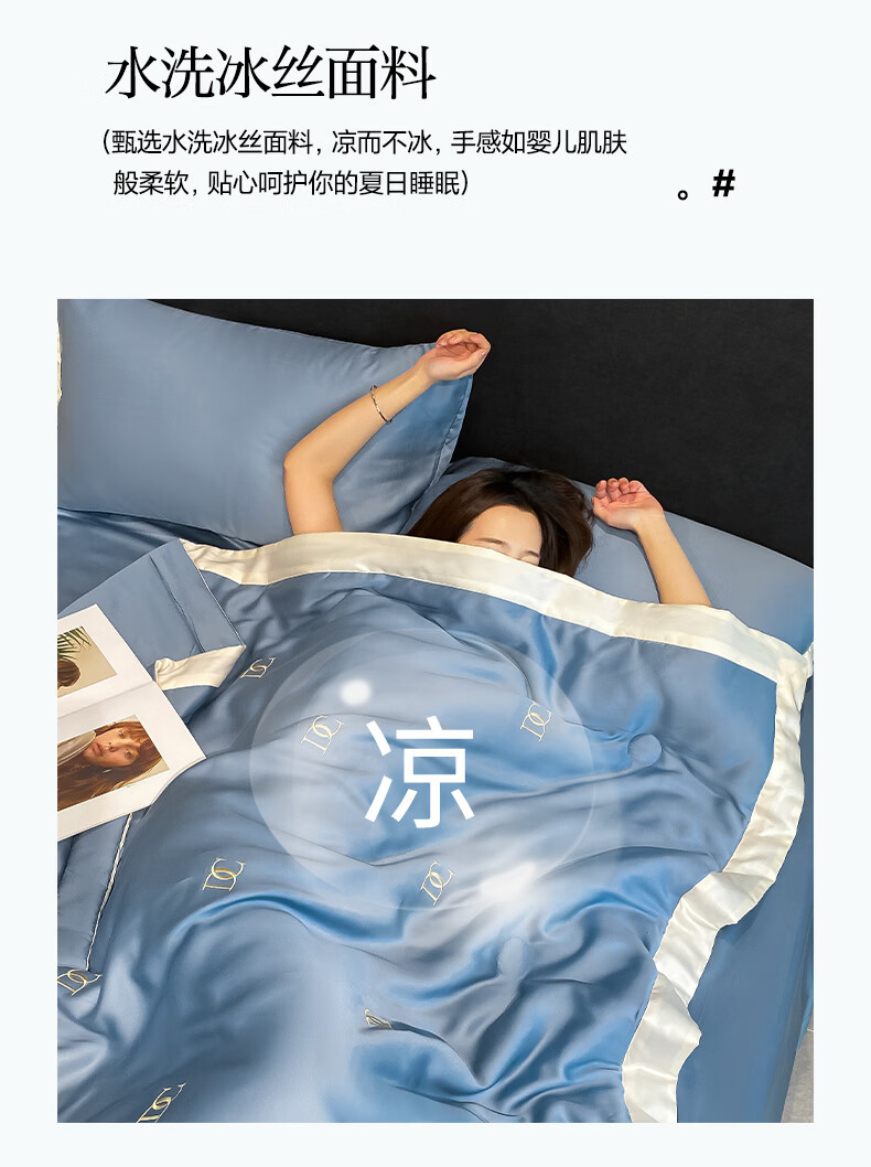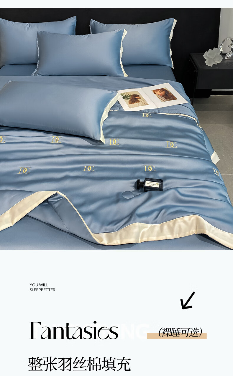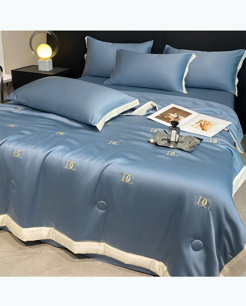 唐纳家纺冰丝凉感夏凉被 可机洗双人空调被夏季超薄家被子四件套用薄被 冰丝夏被-字母DC-宾利蓝【丝滑裸睡】 180cm*220cm加大夏凉被【丝滑裸睡】