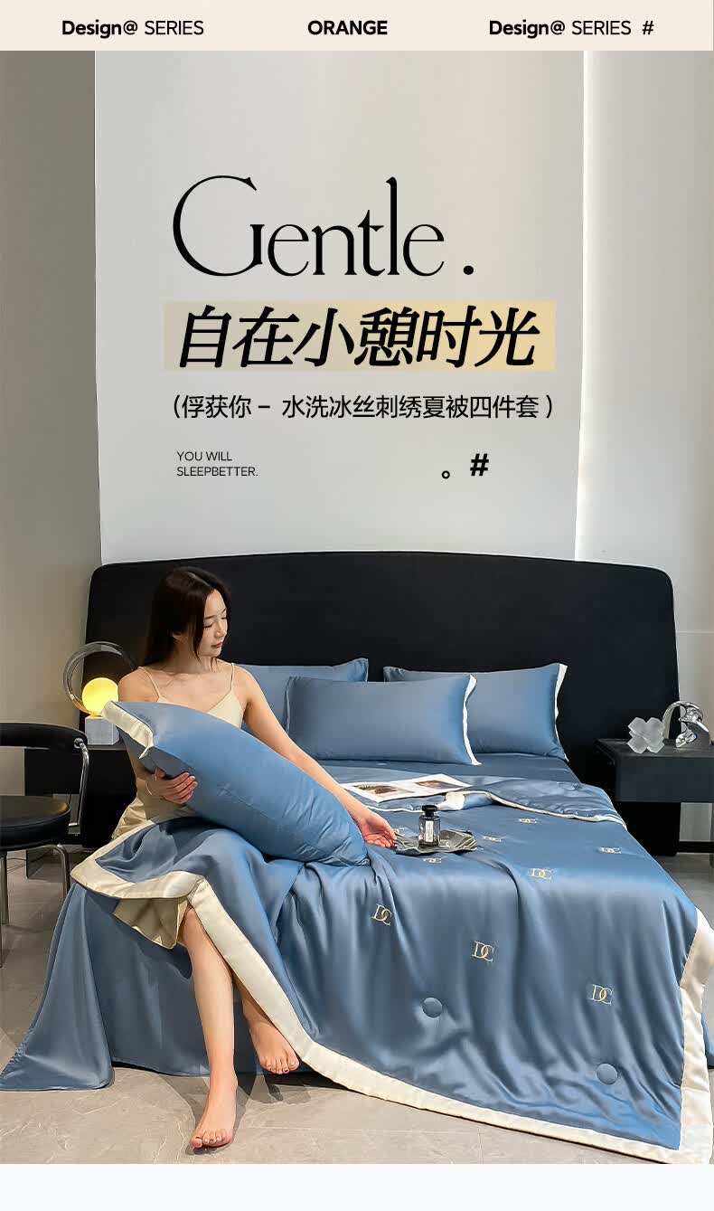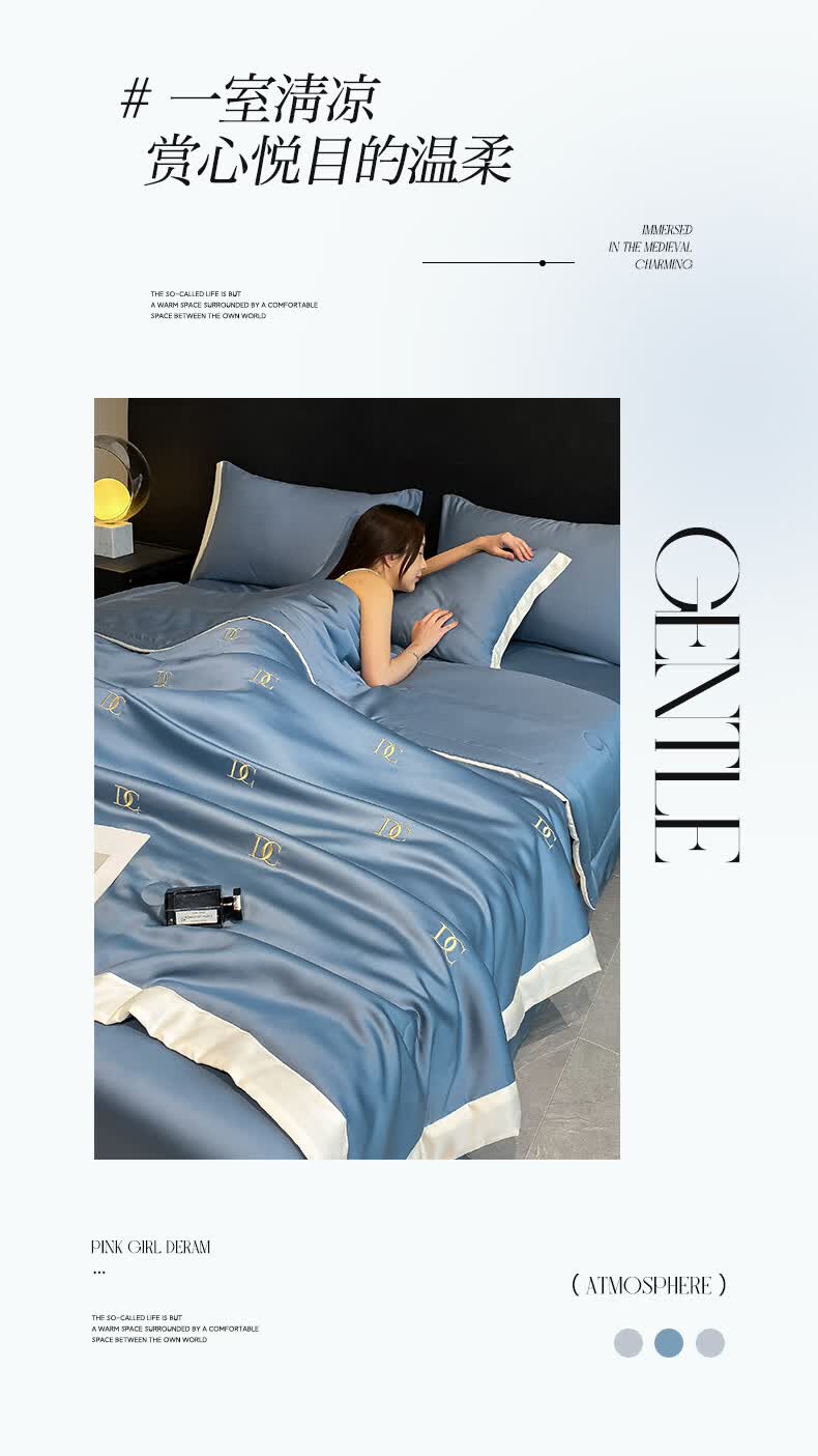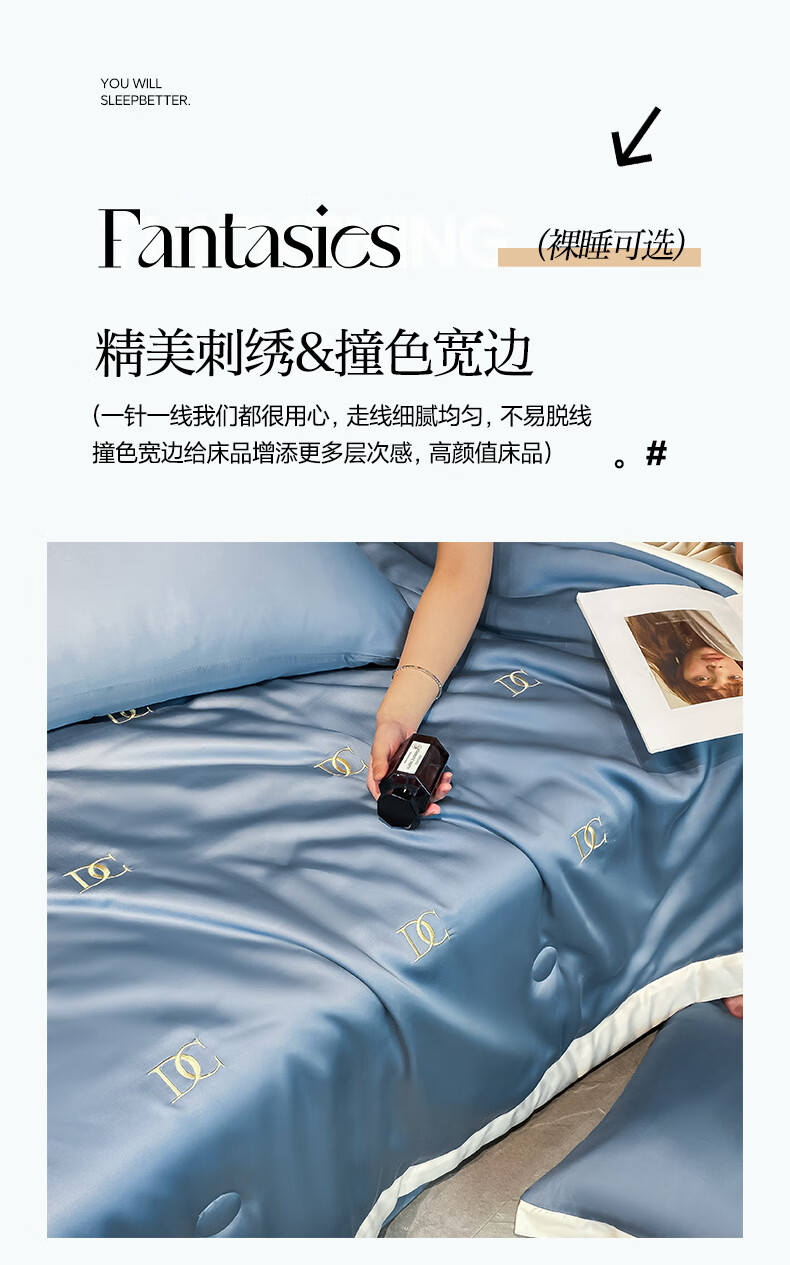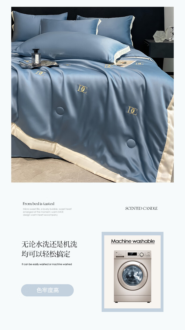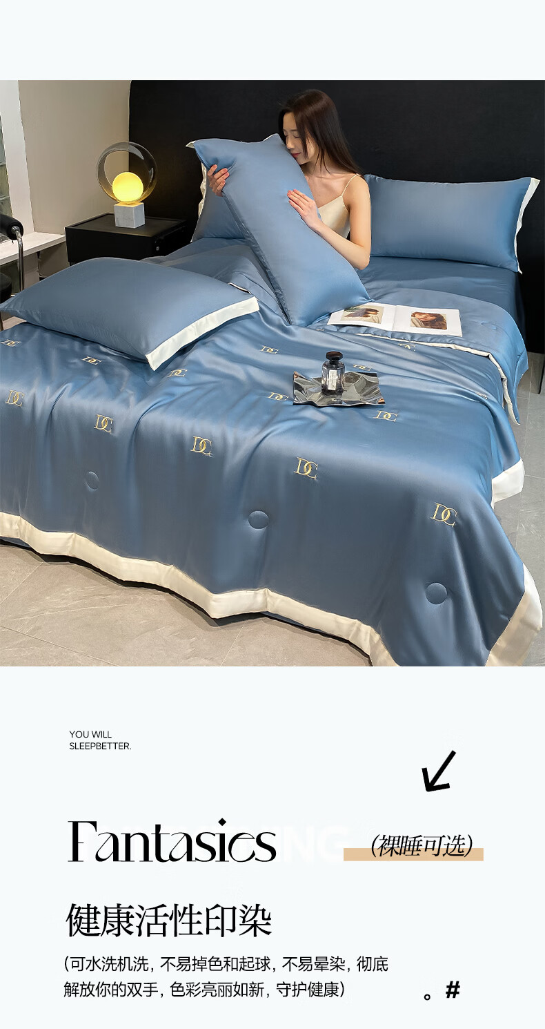 唐纳家纺冰丝凉感夏凉被 可机洗双人空调被夏季超薄家被子四件套用薄被 冰丝夏被-字母DC-宾利蓝【丝滑裸睡】 180cm*220cm加大夏凉被【丝滑裸睡】